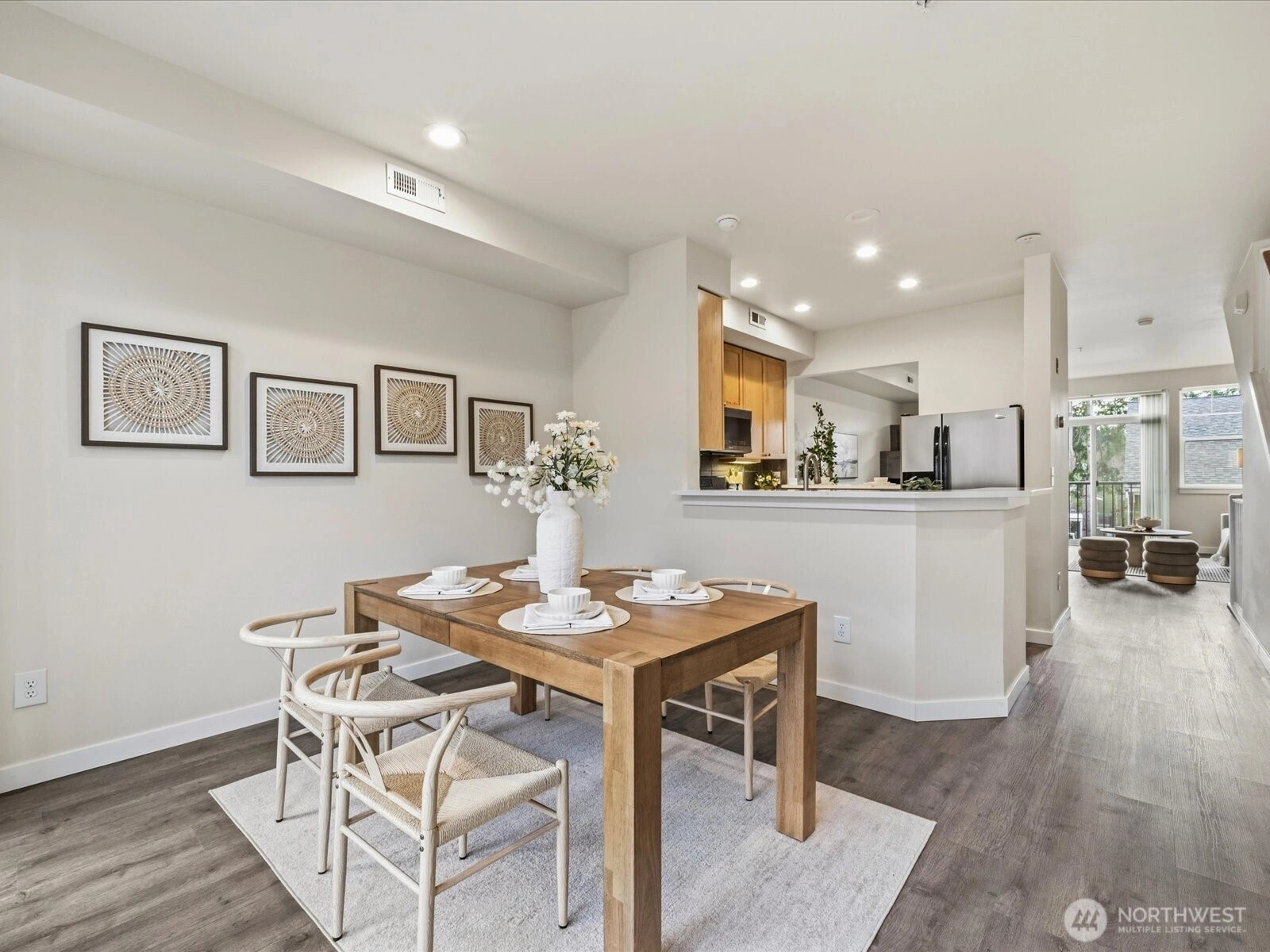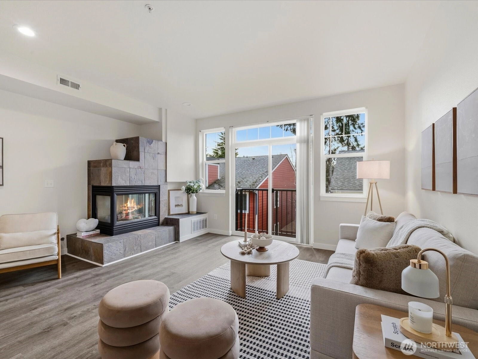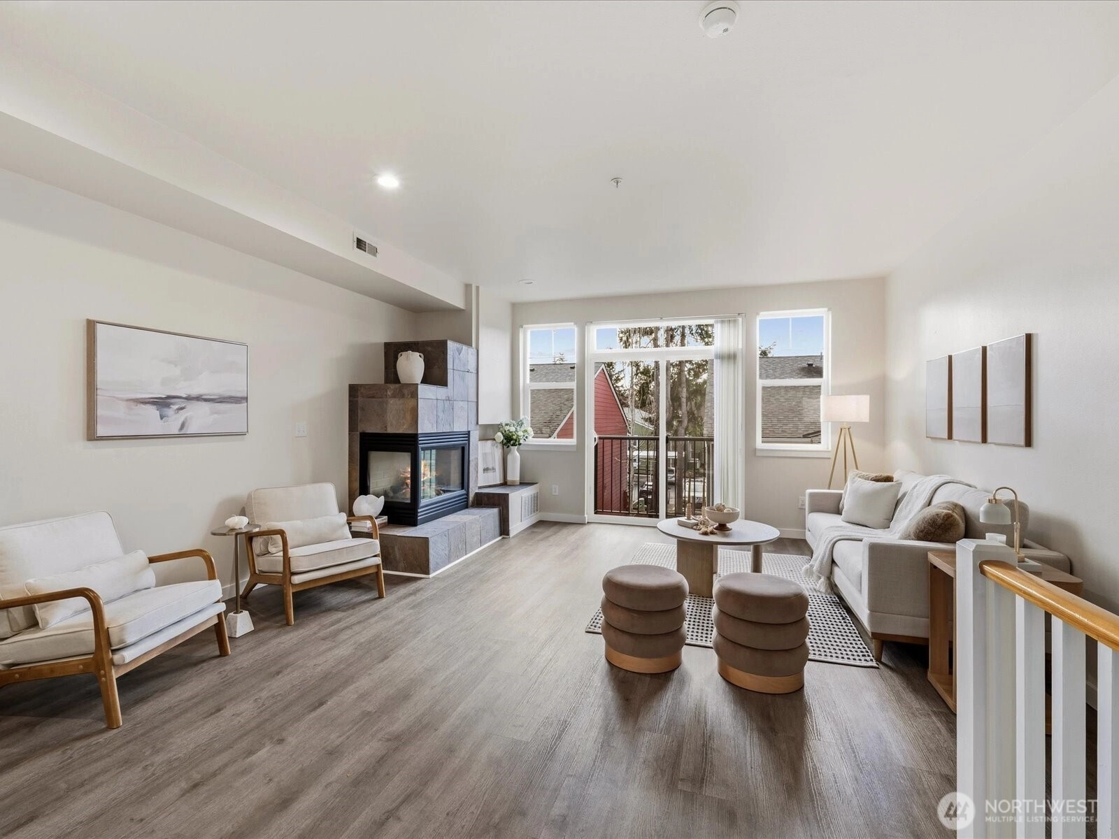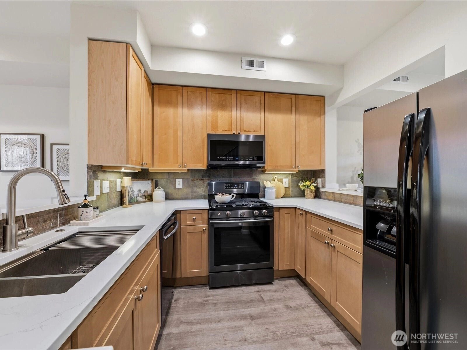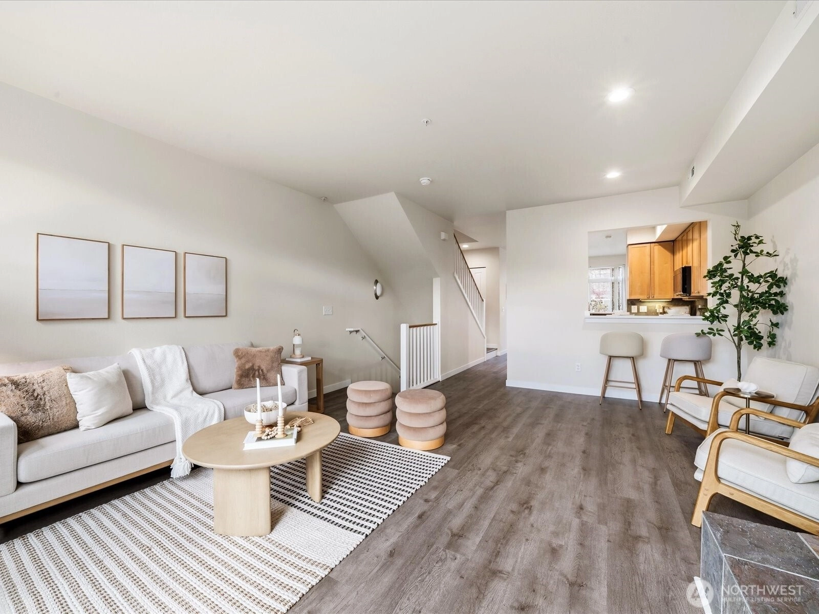 Beautifully updated townhome in a gated community with an unbeatable location! This light-filled home offers 3 bedrooms, 2.25 baths, and a spacious tandem garage with additional W/D hookups. The brand-new kitchen features quartz countertops, stainless steel appliances, and recessed LED lighting unique to this unit. New waterproof vinyl plank flooring and fresh interior paint enhance the bright living spaces, highlighted by vaulted ceilings, large windows, and a skylight. Enjoy breakfast in the sunlit dining area or relax by the gas fireplace. Step out onto the sunny balcony for added outdoor space. Walk to T&T, Target, Factoria Mall, and nearby restaurants, with quick access to I-405, I-90, and transit routes (203, 240) connecting to Bellevue, Kirkland, and the greater Eastside. Close to the 42-mile East Lake Sammamish Trail extending throughout the Lake Washington area. Nearby parks include Newcastle Beach Park and The Golf Club at Newcastle. Located in the award-winning Bellevue School District: Woodridge Elementary, Tyee Middle, and Newport High School.