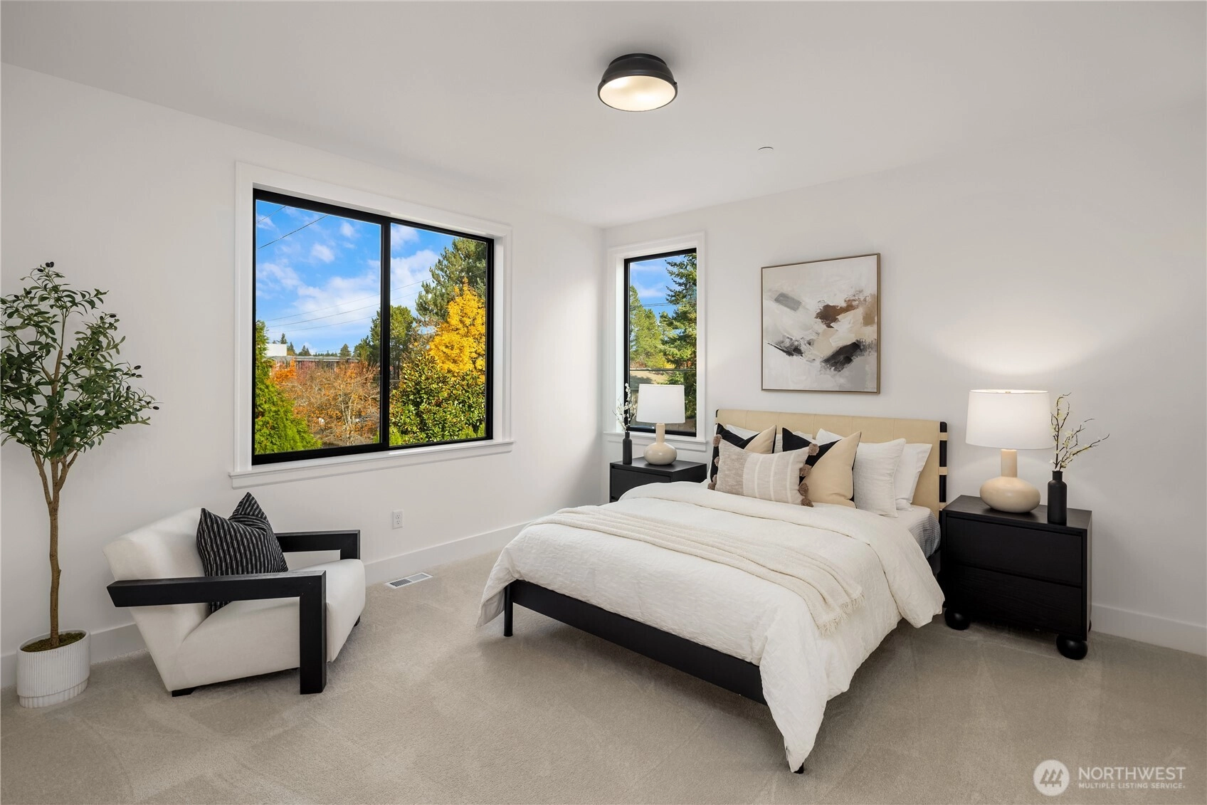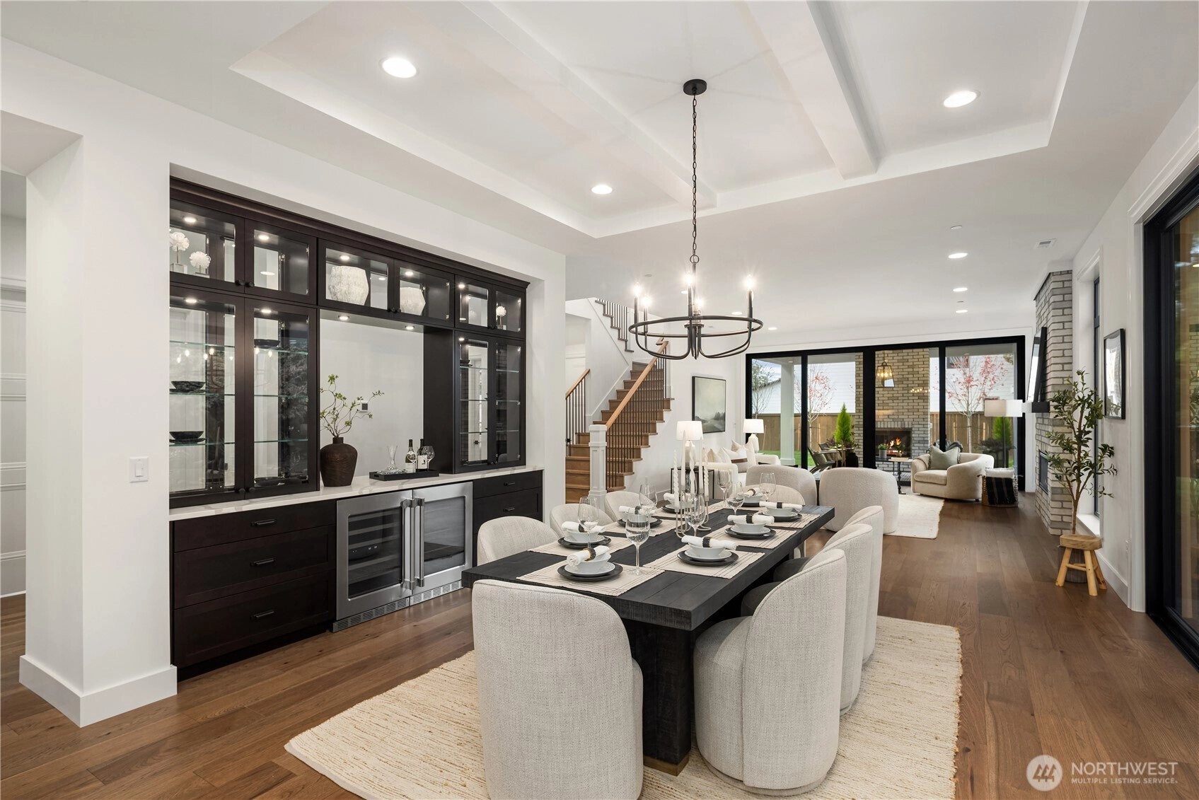 The sought-after Whitteville plan by luxury builder Murray Franklyn, ideally situated in the Glendale neighborhood of central Bellevue. This gated residence offers privacy and sophistication. Boasting 5 bedrooms, 5.5 bathrooms, and 5,174 square feet of living space, the home sits on a 18,202-square-foot lot with a generous yard. Enjoy an unbeatable location just six minutes from Downtown Bellevue, with easy I-90 and I-405 access. The open-concept floor plan showcases a spectacular kitchen that flows into the dining and family rooms—creating an inviting atmosphere for gatherings large and small. The kitchen is appointed with stainless steel appliances, an oversized center island, and a dedicated prep kitchen. Rich hardwood floors extend throughout the home. The main level features a private guest suite complete with en suite bath and walk-in closet, along with a den and versatile flex room—ideal for a second home office. Step outside to the covered patio, where a fireplace and overhead heaters provide year-round comfort for outdoor living and entertaining. Upstairs, the luxurious primary suite serves as a serene retreat, offering a spa-inspired five-piece bath and a spacious walk-in closet. Three additional bedrooms—each with its own en suite bath—ensure comfort and privacy for all. A study loft, recreation room, and generously sized laundry room complete the upper level. An oversized three-car, side-by-side garage provides ample space for vehicles. $50,000 Buyer Credit!