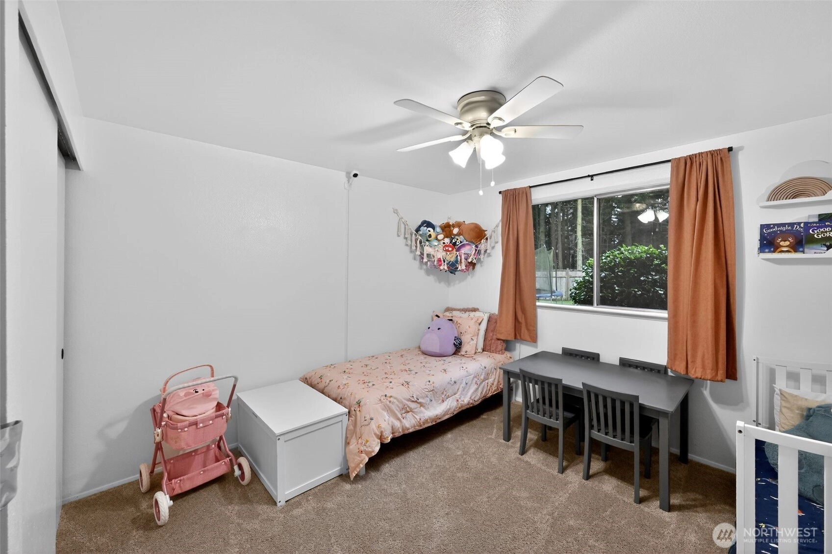 Welcome to this beautifully maintained single-level home tucked away on a dead end road in Oak Harbor. Situated on a spacious, wooded lot, this 3-bedroom, 2-bath home offers 1,638 square feet of comfortable living with a layout designed for both everyday living and entertaining. Step inside to a bright and open living space featuring rich flooring, a stunning stone fireplace, and large windows that bring in natural light while showcasing the peaceful surroundings. The spacious kitchen offers abundant counter space, ample cabinetry, and a generous breakfast bar that flows seamlessly into the dining and living areas—perfect for gatherings. The primary suite provides a relaxing retreat with an ensuite bath and generous closet space. Two additional bedrooms offer flexibility for guests, hobbies, or a home office. Outside, enjoy the serenity of the partially fenced yard surrounded by mature trees, offering privacy, room to garden, play, or simply relax. A detached shed provides extra storage, and the dead end road location adds to the quiet, neighborhood feel. Conveniently located near NAS Whidbey, schools, shopping, and parks, this move-in ready home offers the perfect blend of comfort, space, and island living.