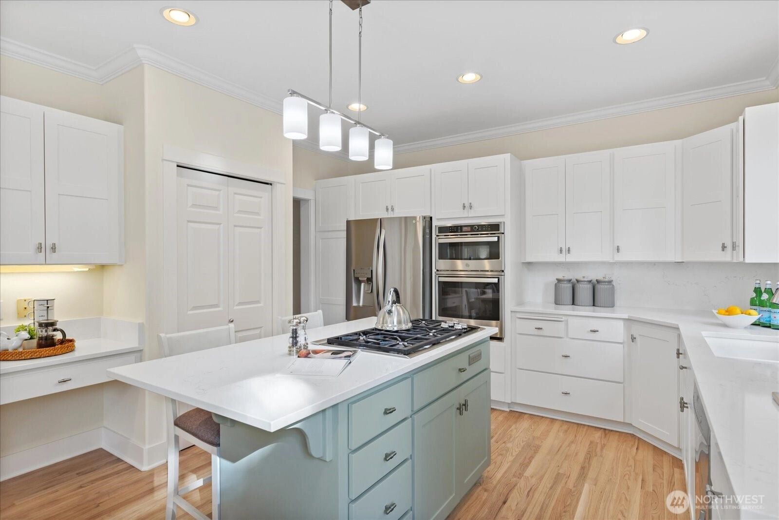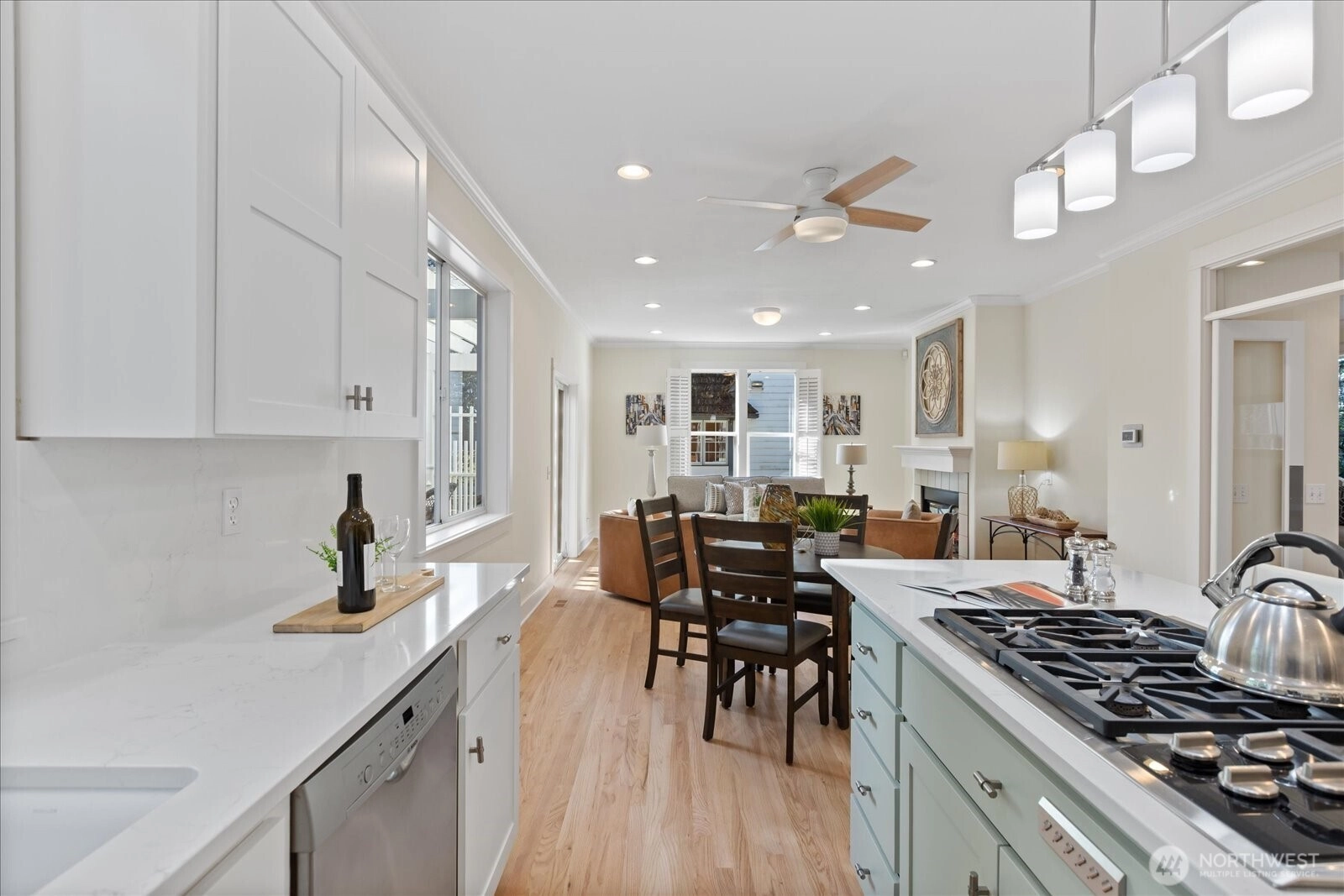 First time on the market, this 1995-built home is truly not the usual find in Broadview. Thoughtfully designed with a circular flow that supports both everyday living and effortless entertaining, the spacious living and dining rooms welcome you into the heart of the home. Newly refinished hardwood floors, fresh paint, and updated trim create a crisp, modern feel throughout, while freshly painted cabinets in the kitchen, bathrooms, and laundry room add a cohesive touch. The open-concept kitchen connects seamlessly to the eat-in area and inviting family room, all opening to a two-level entertainment deck and sun-drenched, south-facing yard—perfect for gatherings or quiet afternoons at home. Upstairs, the expansive primary suite offers a private retreat, complete with a luxurious bath featuring a double vanity, soaking tub, and separate shower for a spa-like experience. A generous walk-in closet with built-in organization and storage. Three additional bedrooms—each with built-in closet organization and storage—share a full bath, and a separate laundry room for everyday convenience. A large bonus room offers incredible versatility and flexibility to suit your lifestyle, whether for work, play, or relaxation. Two car garage with more storage and a ½ bath conveniently located on the lower level. Exceptional schools nearby and mins to Carkeek park and more, pre-inspected and sewer scope for your convenience.