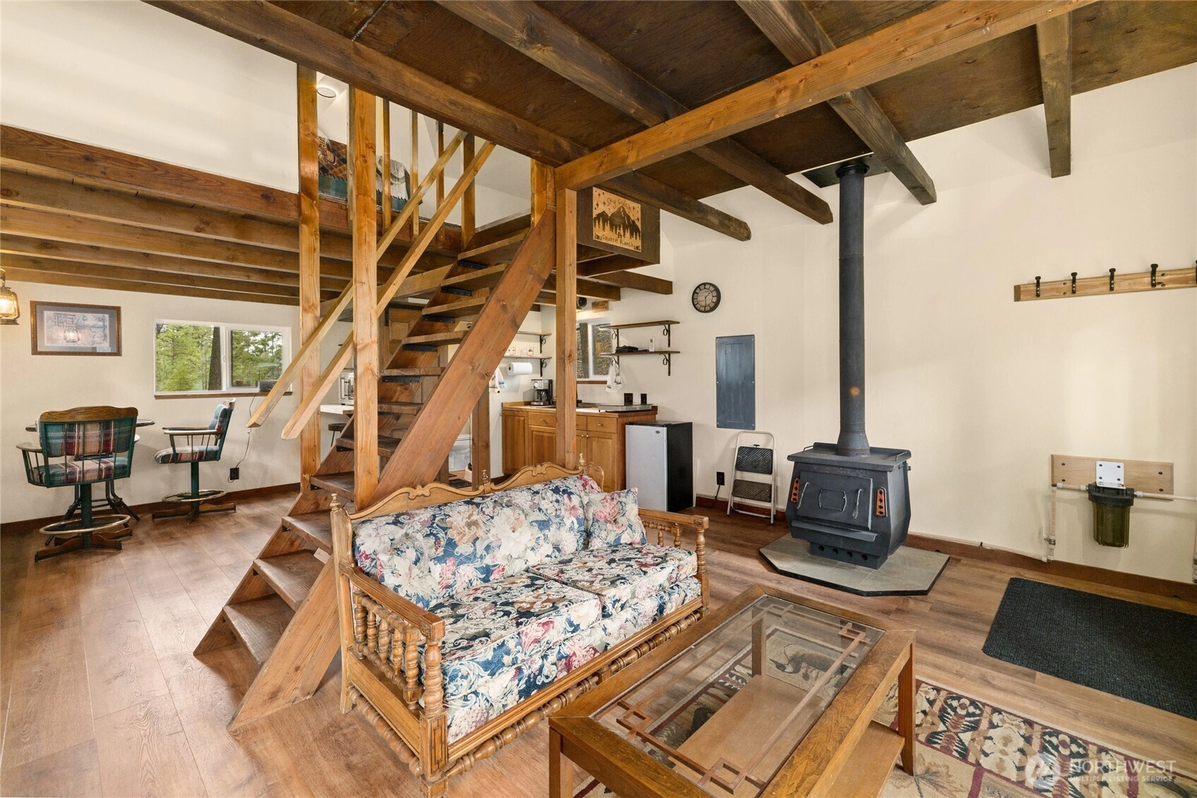 Cle Elum Cabin with ALL utilities in place, plus creek & canal, on 2+ acres! Everything is permitted - well & 2 bed septic recently installed. This 1984 cabin is nearly brand new. Exposed beams, natural light & rustic charm welcomes you into this lovely cabin! Lower level has everything you need, kitchen, living room, dining area + bar nook & bathroom. 50-amp avl in kitchen wall. Upstairs has a comfy carpeted bedroom with extra spaces for reading nook, home office, etc. Large loft off the bedroom (not included in sqft) is a great space for storage, extra living space, or remove it to really open things up! Mini split provides cool AC and energy efficient heat. Or let the logs pop & crackle in your wood burning stove. Yes please. Large deck overlooking ravine with babbling seasonal creek and views of the canal. Extra storage area under cabin. Watch the stars and tell stories by the fire pit. Explore the undulations of the property and add to the trails already roughed in. Driveway continues down ravine for access to well head and potential area for shop. Lots of extra parking up by the road (please park here for tours), with walking path. Best of both worlds - far enough from town for peace & privacy, yet close enough to enjoy shops, restaurants, outdoor recreation, & Suncadia within 10-20 minutes! Just 90 minutes to Seattle. Potential Airbnb (buyer to verify), strong rental potential. Year round access. Perfect for a weekend retreat or full time living. Don’t miss this place!