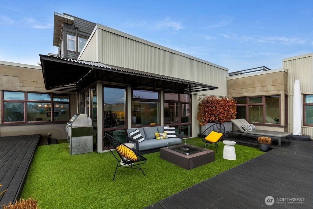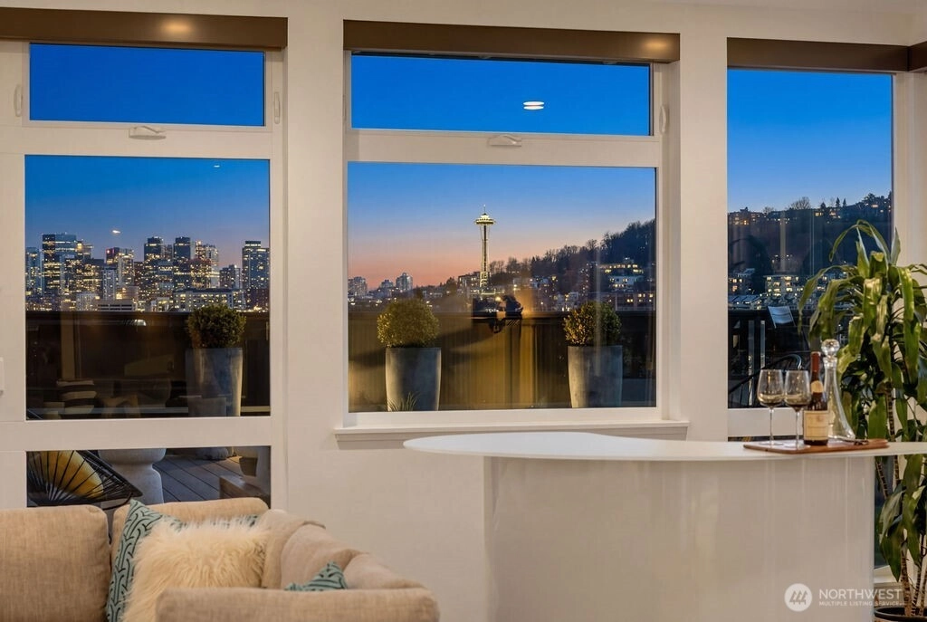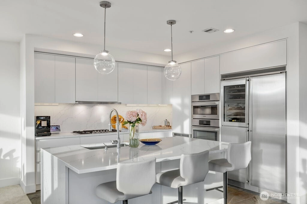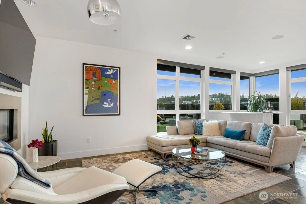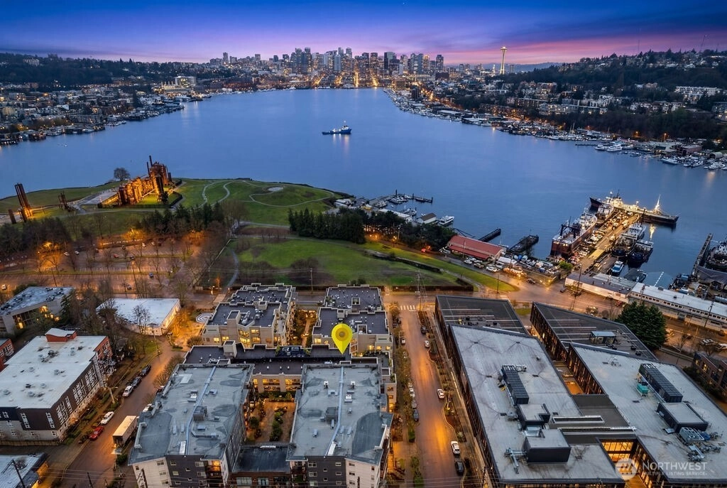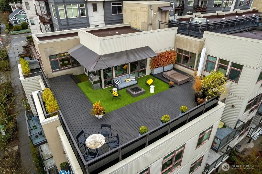 Experience elevated living in this stunning 2-bedroom + den Penthouse at Lake Union’s premier Regata community. Designed for both luxury and functionality with Radiant in-floor heat throughout, Air conditioning for warm summer months, Dedicated den ideal for working from home and Open-concept living, dining, and kitchen areas. The chef’s kitchen impresses with a Bosch 5-burner gas range, Liebherr refrigerator, wine cooler/freezer combo, and sleek, timeless Quartz countertops.Step outside to your private 1,000 asf deck, an entertainer’s dream featuring professional landscape design, and effortless irrigation system for the potted plants. Cozy gas fire feature, Built-in gas line for grilling, Outdoor speakers and Sweeping views of the Seattle skyline and Lake Union. Enjoy secure gated parking with two deeded spaces, private storage, and bicycle storage. Residents of The Regata enjoy the Community room with TV theater, Fitness center and a Business center. Beautifully gated tranquil courtyard with fountains and landscaping. Located moments from Gas Works Park, the Burke-Gilman Trail, and some of Seattle’s best dining — this is luxury redefined. Easy assess to all.