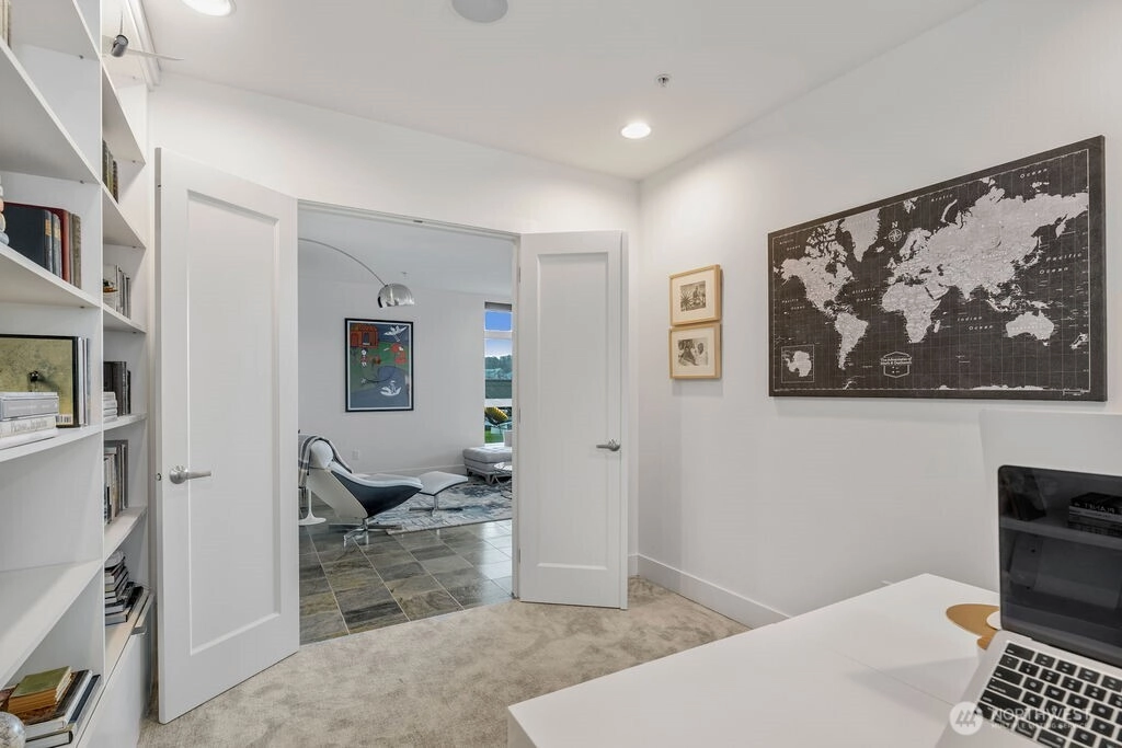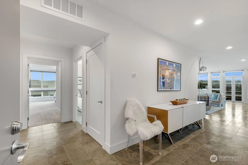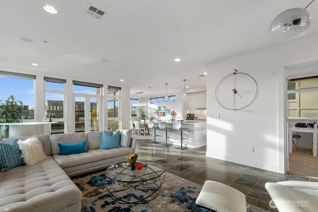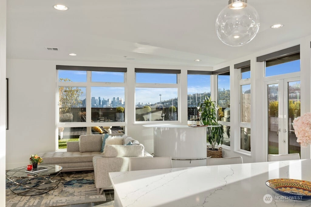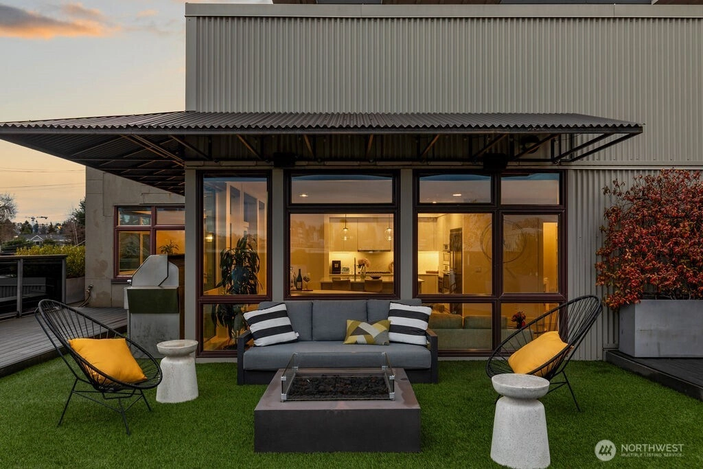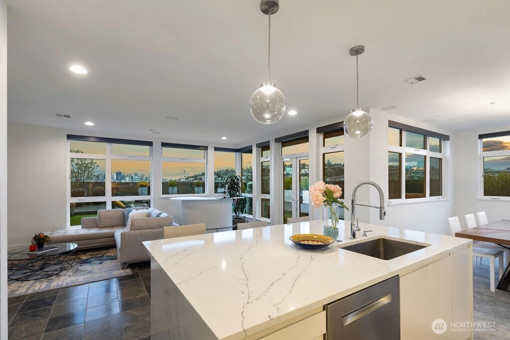 Experience elevated living in this stunning 2-bedroom + den Penthouse at Lake Union’s premier Regata community. Designed for both luxury and functionality with Radiant in-floor heat throughout, Air conditioning for warm summer months, Dedicated den ideal for working from home and Open-concept living, dining, and kitchen areas. The chef’s kitchen impresses with a Bosch 5-burner gas range, Liebherr refrigerator, wine cooler/freezer combo, and sleek, timeless Quartz countertops.Step outside to your private 1,000 asf deck, an entertainer’s dream featuring professional landscape design, and effortless irrigation system for the potted plants. Cozy gas fire feature, Built-in gas line for grilling, Outdoor speakers and Sweeping views of the Seattle skyline and Lake Union. Enjoy secure gated parking with two deeded spaces, private storage, and bicycle storage. Residents of The Regata enjoy the Community room with TV theater, Fitness center and a Business center. Beautifully gated tranquil courtyard with fountains and landscaping. Located moments from Gas Works Park, the Burke-Gilman Trail, and some of Seattle’s best dining — this is luxury redefined. Easy assess to all.