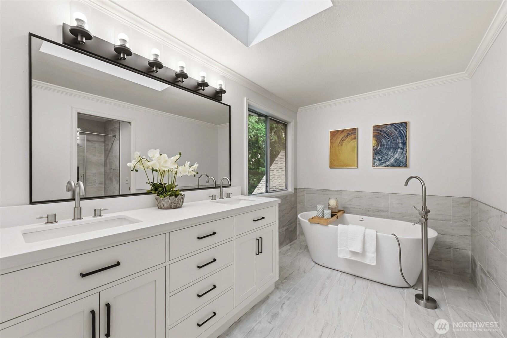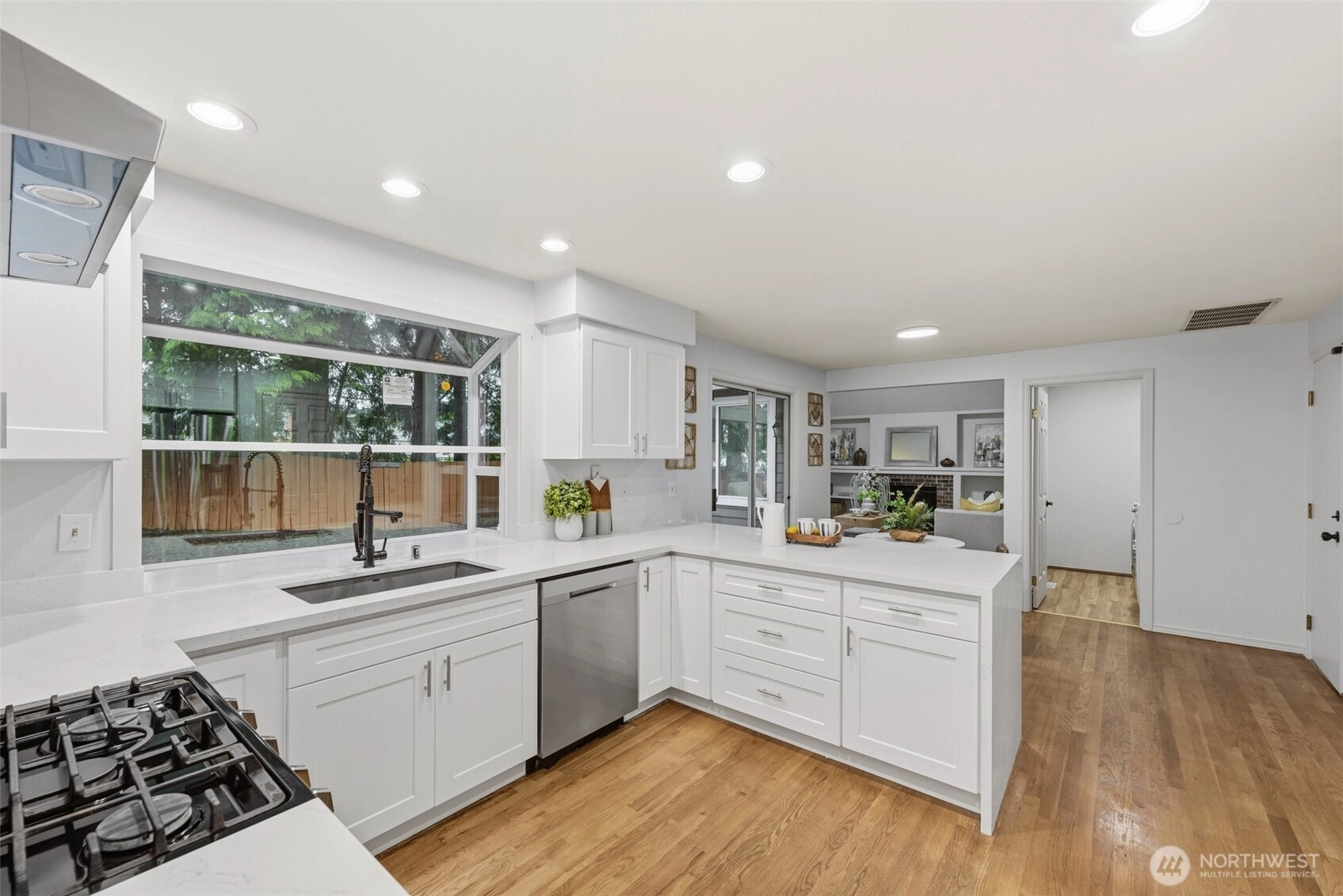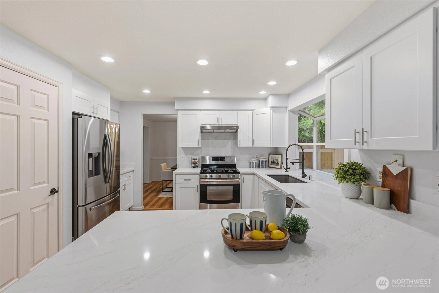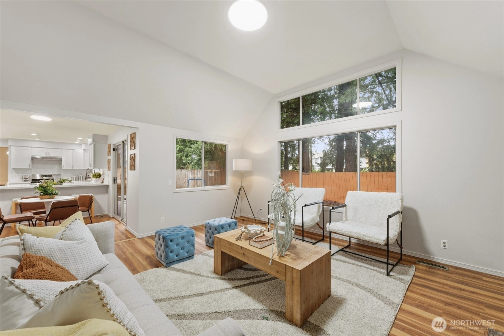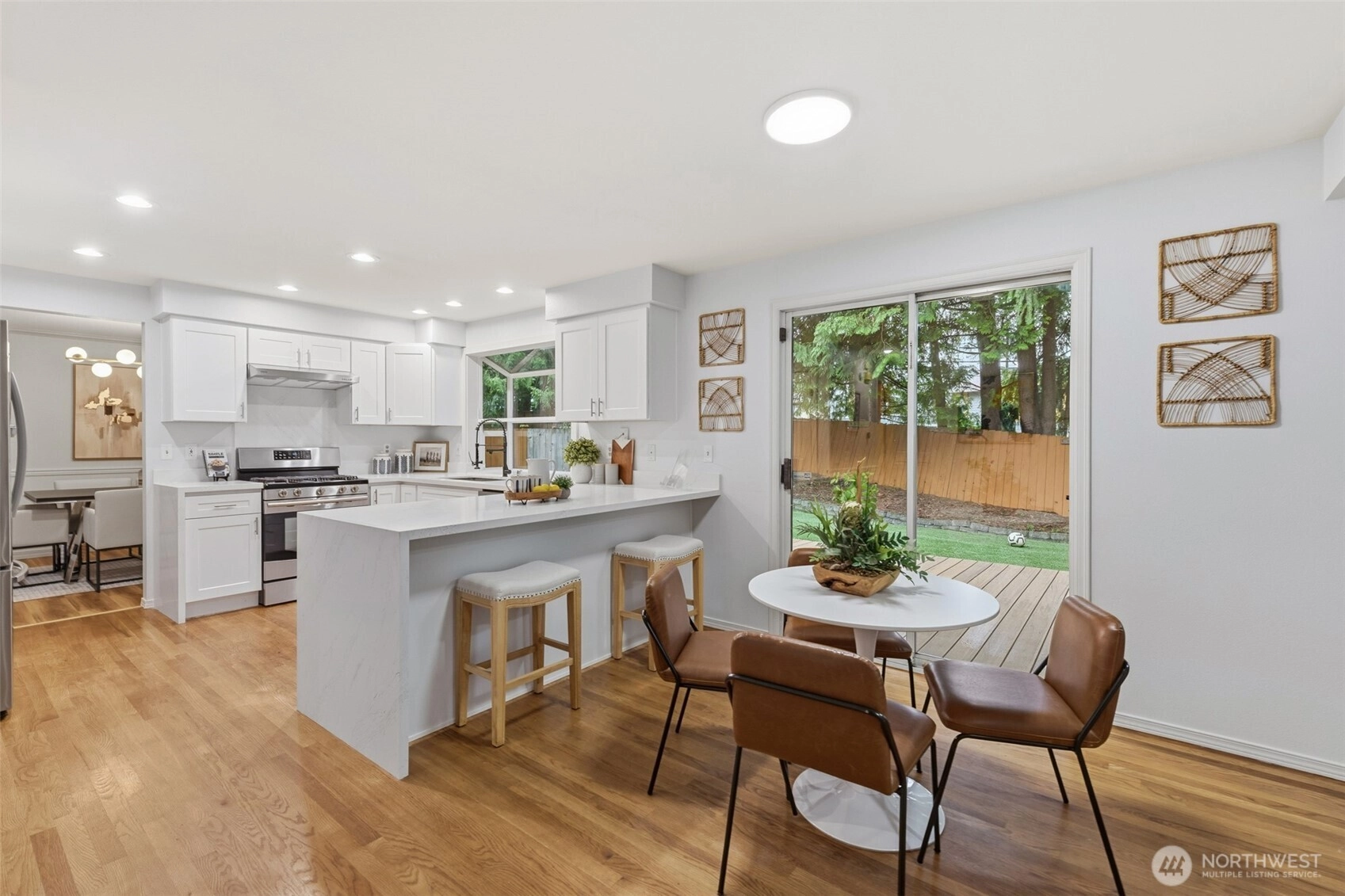 Beautifully updated 4 bed, 2.5 bath Chaffey-built home blending timeless craftsmanship with modern upgrades. Refinished hardwood floors, classic millwork, and abundant natural light create a warm and inviting atmosphere throughout.The fully remodeled kitchen features crisp white cabinetry, quartz countertops, stainless steel appliances, and generous prep space with peninsula seating. The adjacent dining area opens directly to the deck and private, fully fenced backyard, creating seamless indoor-outdoor living ideal for everyday living and entertaining.All bathrooms have been completely renovated with stylish finishes. The spacious primary suite offers a spa-like retreat with dual vanities, a freestanding soaking tub, walk-in shower, and vaulted ceiling with skylight for beautiful natural light.Additional highlights include a bright living area, main-floor laundry room, and a versatile bonus space connected to the fourth bedroom — perfect for a home office, guest suite, or media room.Set on a quiet lot with mature landscaping and located within the highly sought-after Issaquah School District, this home offers quality construction, thoughtful updates, and true move-in ready comfort.