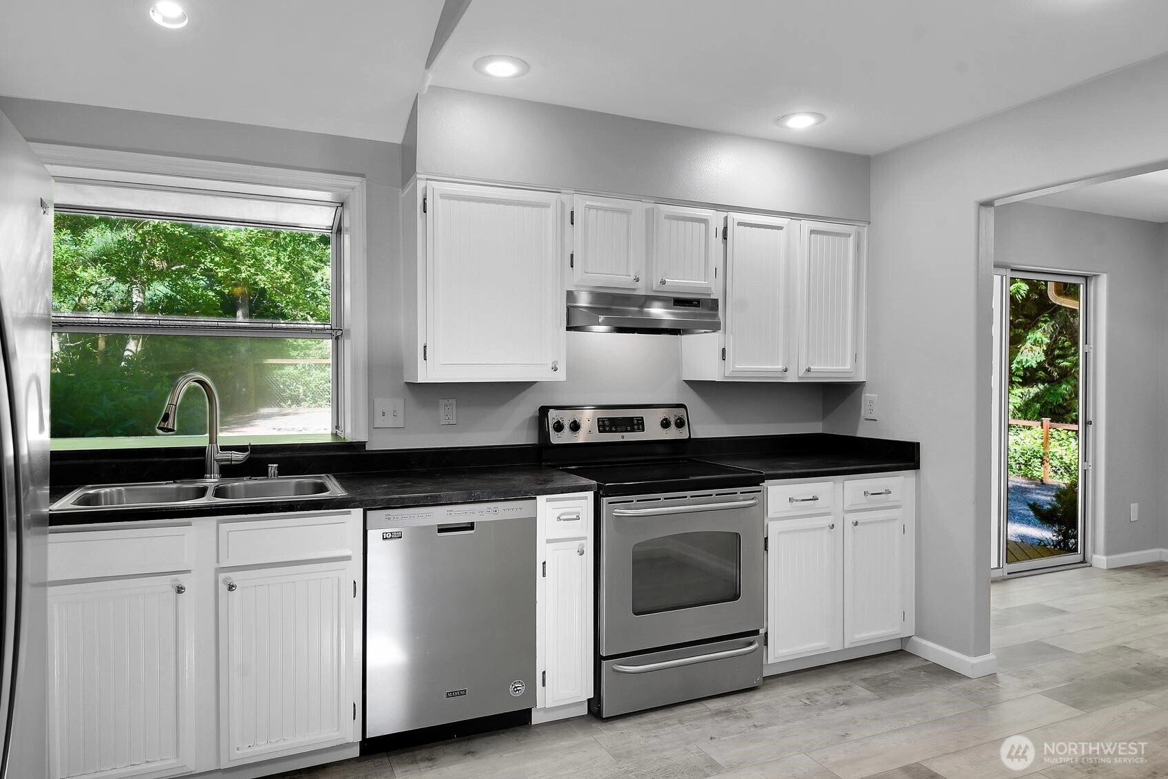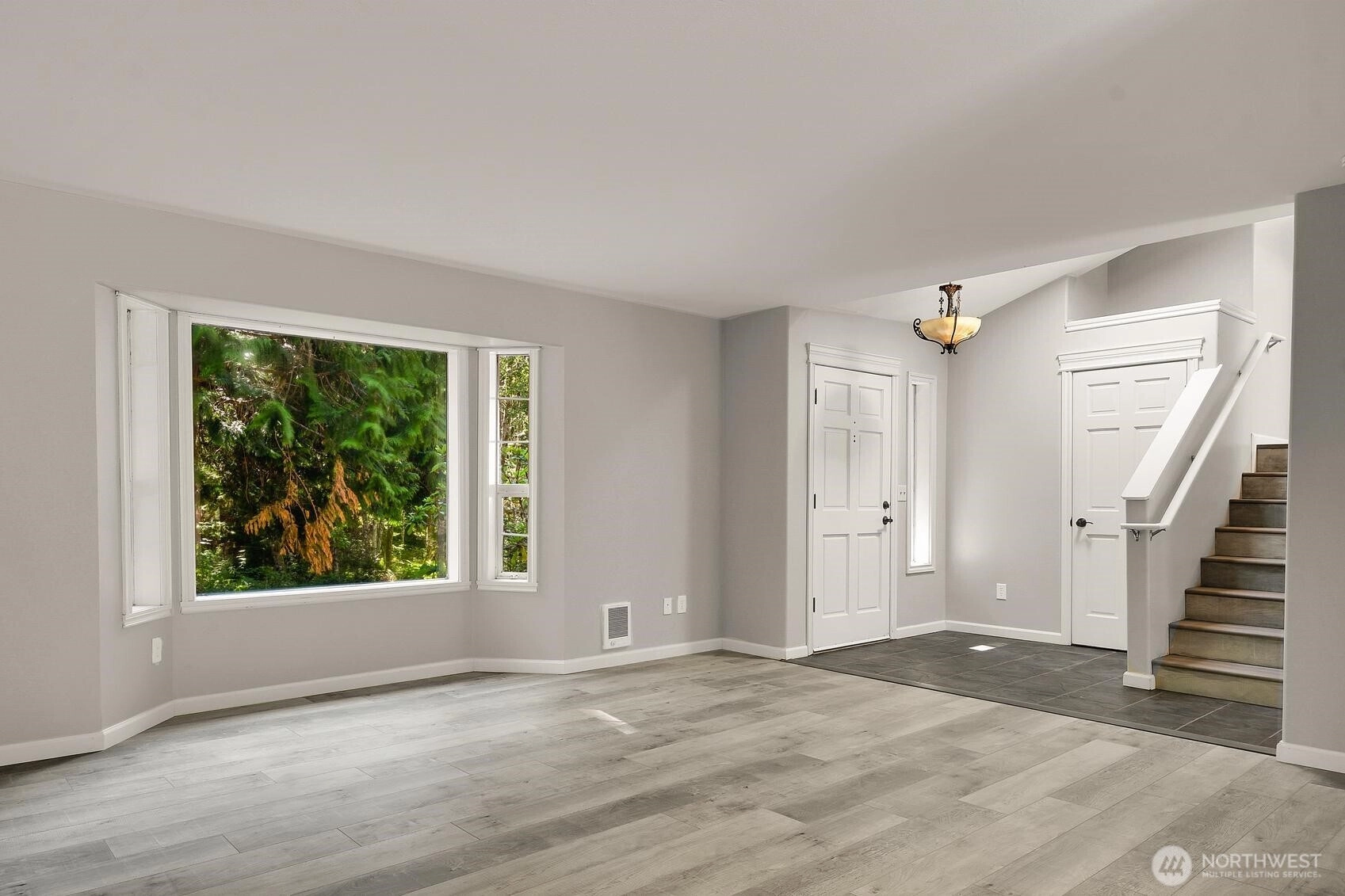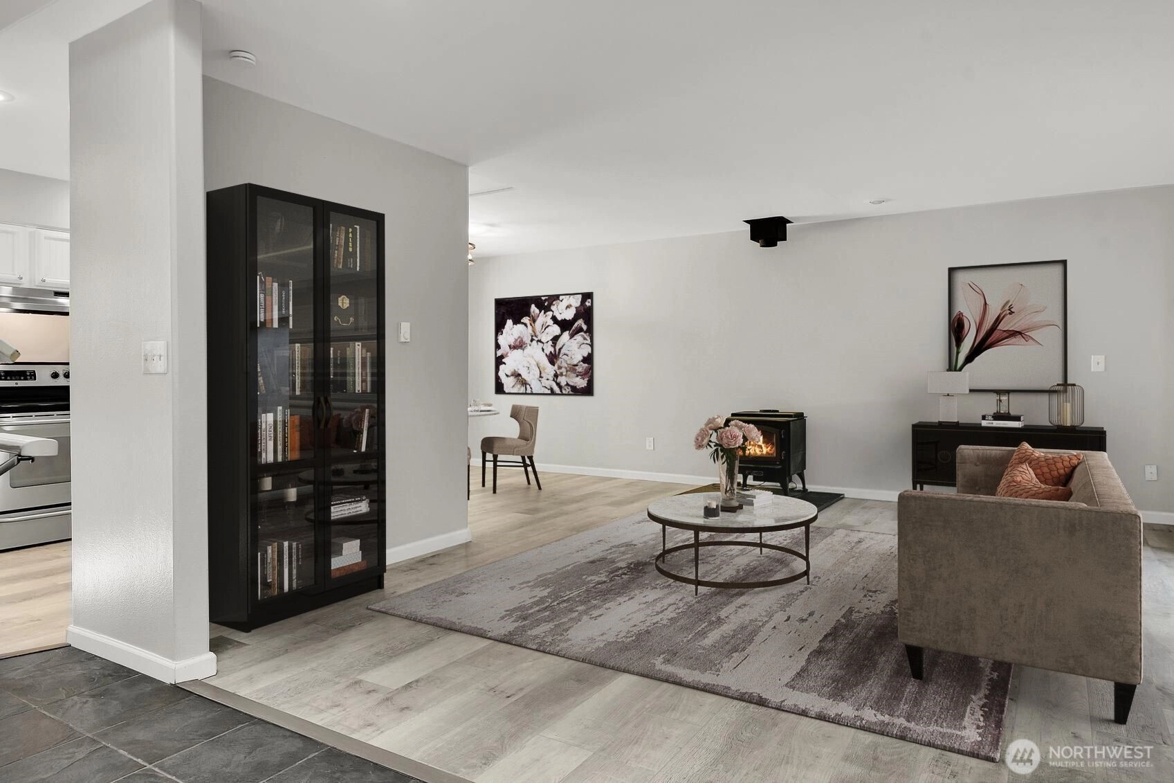 Welcome to this beautifully updated 3-bedroom, 2.5-bath tri-level home in the sought-after Brendenwoods community, just 2.9 miles from the Clinton–Mukilteo ferry. With 1,541 sq. ft. of thoughtfully designed living space, this home blends comfort, and functionality. Wood and propane fireplaces, a living room, and a family room. Step inside to find new vinyl plank and waterproof laminate wood flooring, fresh interior paint, and new carpet. New roof and skylights (2020)—help create a warm, inviting atmosphere. Primary bedroom with en suite bathroom.The spacious kitchen and dining area open to a cozy living room, perfect for gatherings. Outside is a beautiful backyard, RV parking, and access to a shared grassy area and nearby trail.