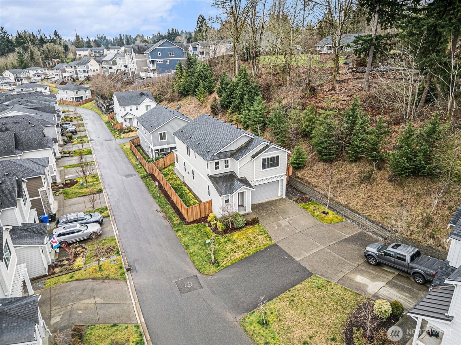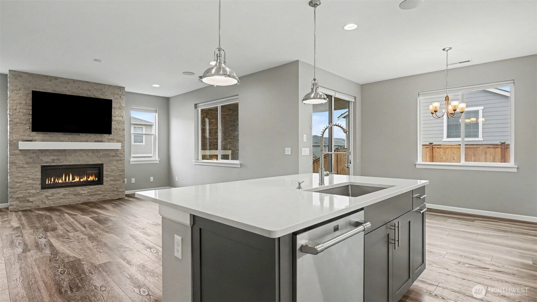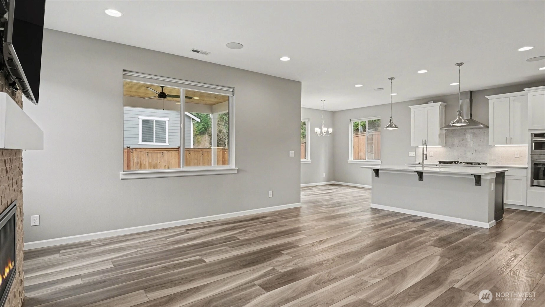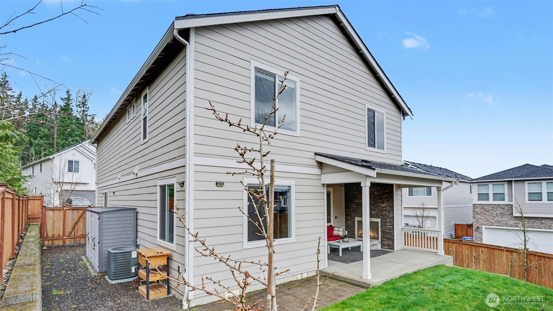Welcome to this stunning 4 bedroom Richmond American home, ideally situated on a premium lot in a quiet Renton community - offering rare privacy, Mt. Rainier views, and luxury upgrades throughout. Step inside to high end flooring, designer fixtures, and an open-concept layout perfect for modern living. The chef's kitchen boasts quartz counters, custom soft-close cabinetry, Carrara marble backsplash, GE Cafe appliances, double ovens, a 5 burner cooktop, and a floor-to-ceiling pantry, flowing seamlessly into the spacious living room with a stone gas fireplace and whole home audio. Upstairs, the primary suite is a true retreat featuring a spa-inspired custom tile shower, and a beautifully designed walk in closet with illuminated builtins. 4 true bedrooms. Comfort is elevated with a high efficiency furnace, 15 SEER AC, LED lighting, and smart home upgrades including smart switches, WiFi garage door, soffit wired holiday lights, finished garage and EV charger plug. Outdoor living shines with an extended covered patio featuring a stacked stone gas fireplace, natural gas BBQ hookup, pine bead board ceiling, plus a paver patio, fully fenced and irrigated yard, and two storage sheds. Convenient to Soos Creek Trail and major freeways, this home blends privacy, luxury, and effortless living.