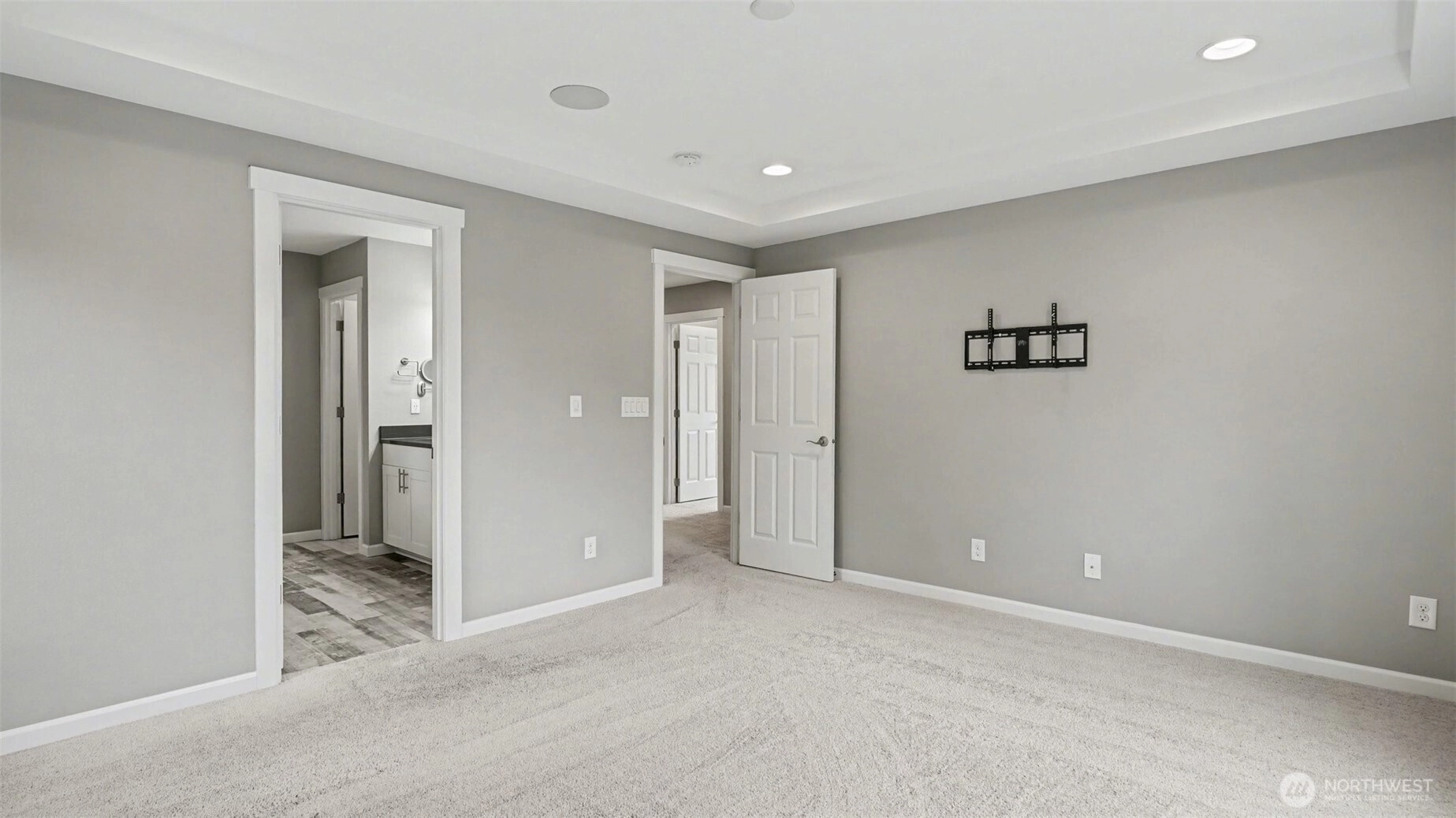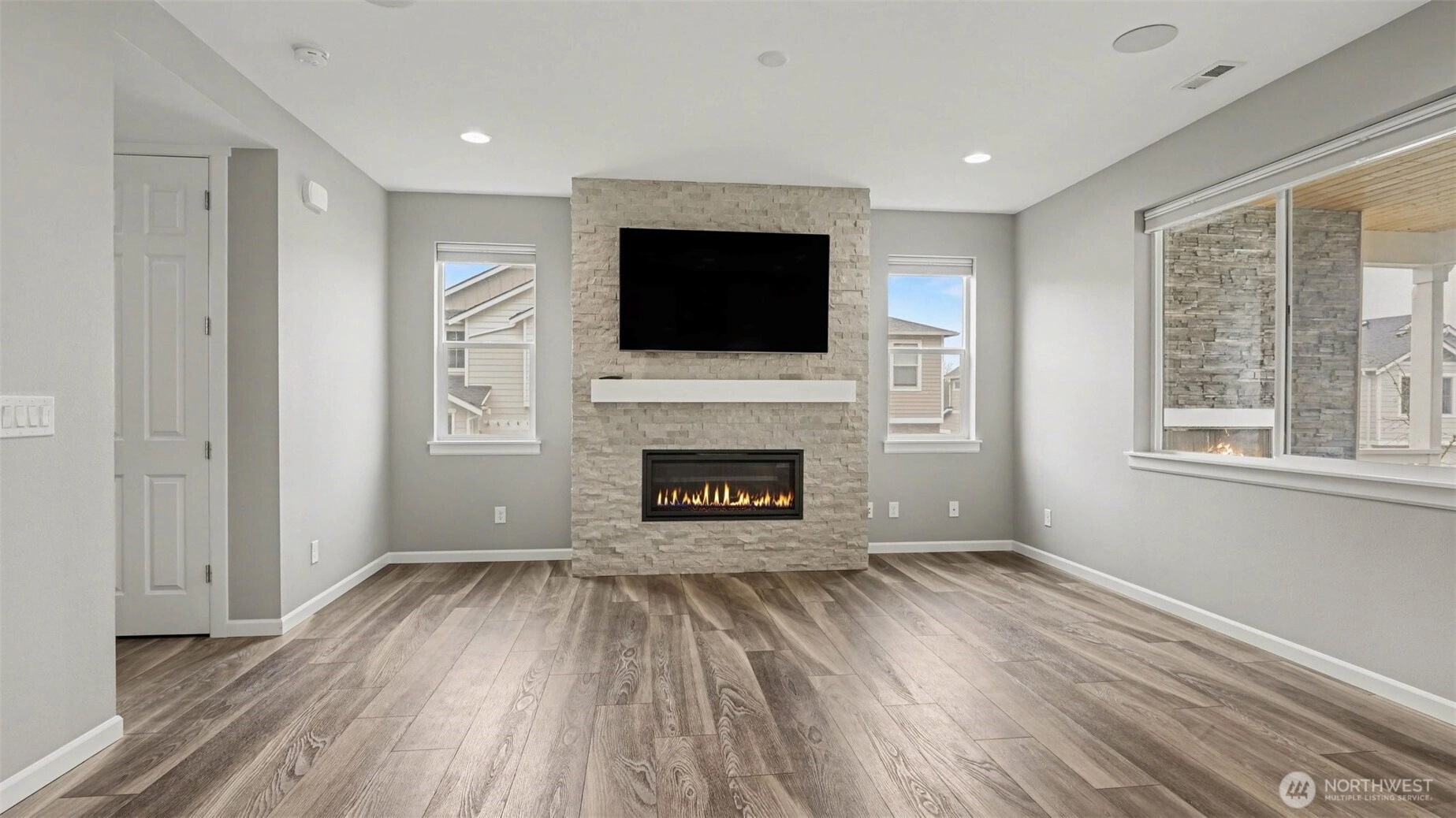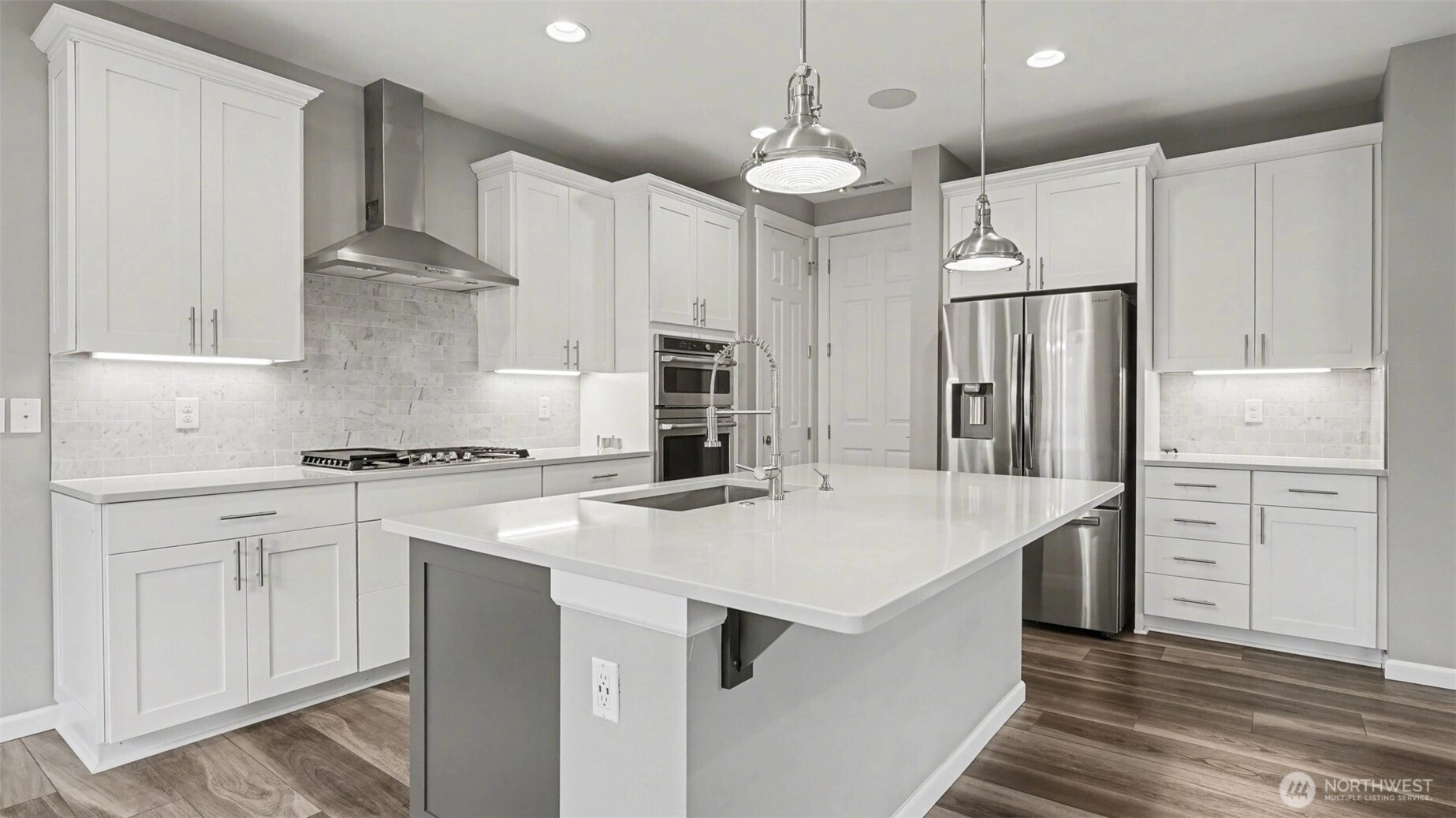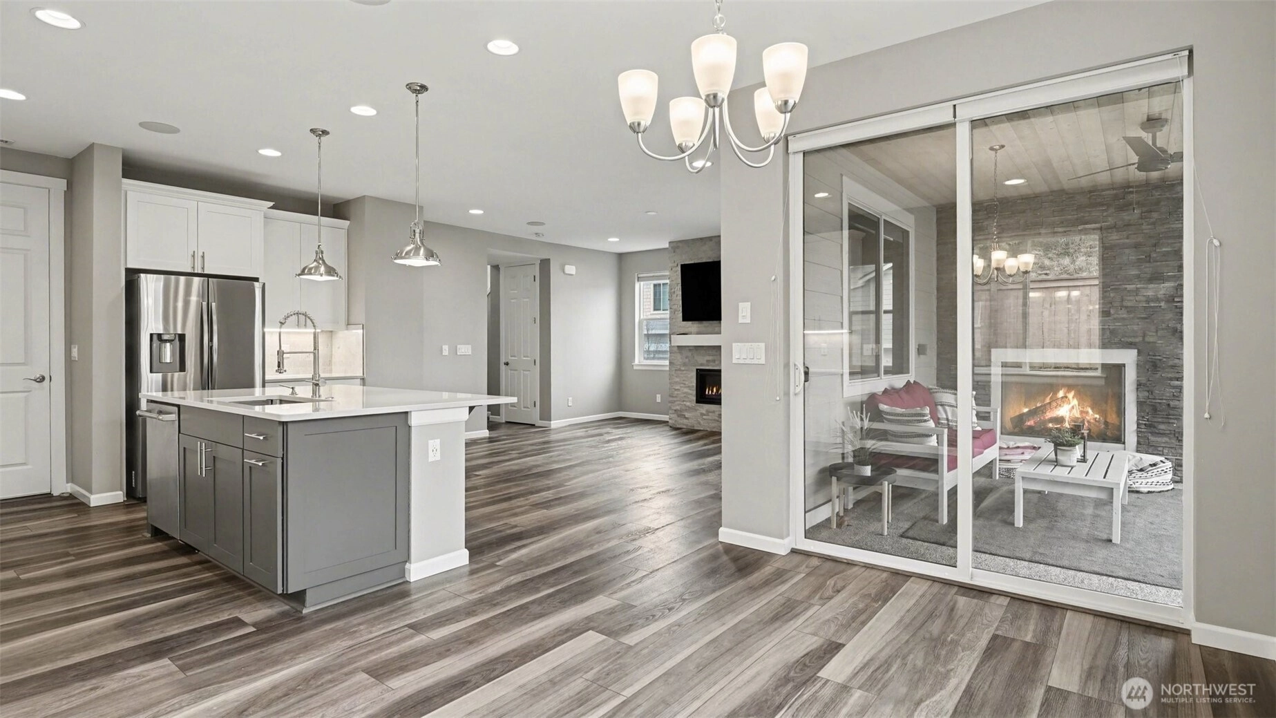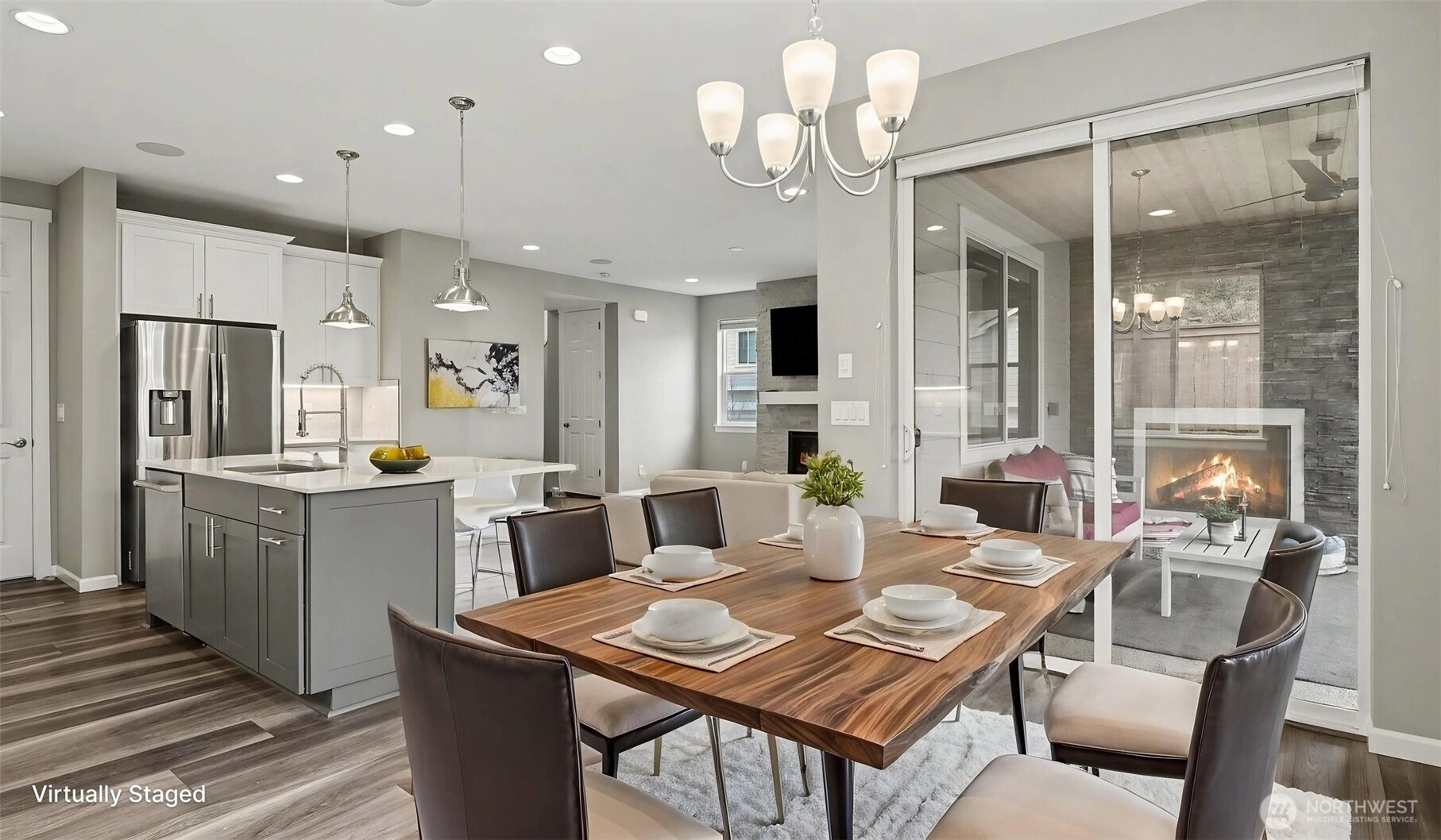 Welcome to this stunning 4 bedroom Richmond American home, ideally situated on a premium lot in a quiet Renton community - offering rare privacy, Mt. Rainier views, and luxury upgrades throughout. Step inside to high end flooring, designer fixtures, and an open-concept layout perfect for modern living. The chef's kitchen boasts quartz counters, custom soft-close cabinetry, Carrara marble backsplash, GE Cafe appliances, double ovens, a 5 burner cooktop, and a floor-to-ceiling pantry, flowing seamlessly into the spacious living room with a stone gas fireplace and whole home audio. Upstairs, the primary suite is a true retreat featuring a spa-inspired custom tile shower, and a beautifully designed walk in closet with illuminated builtins. 4 true bedrooms. Comfort is elevated with a high efficiency furnace, 15 SEER AC, LED lighting, and smart home upgrades including smart switches, WiFi garage door, soffit wired holiday lights, finished garage and EV charger plug. Outdoor living shines with an extended covered patio featuring a stacked stone gas fireplace, natural gas BBQ hookup, pine bead board ceiling, plus a paver patio, fully fenced and irrigated yard, and two storage sheds. Convenient to Soos Creek Trail and major freeways, this home blends privacy, luxury, and effortless living.