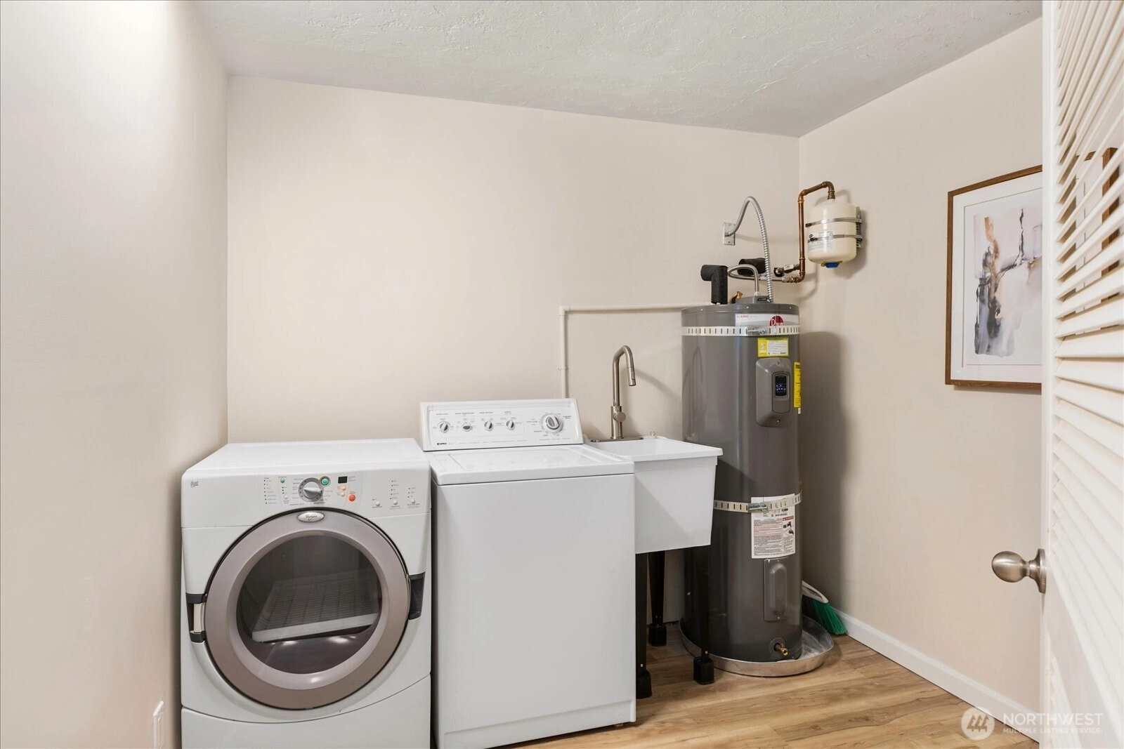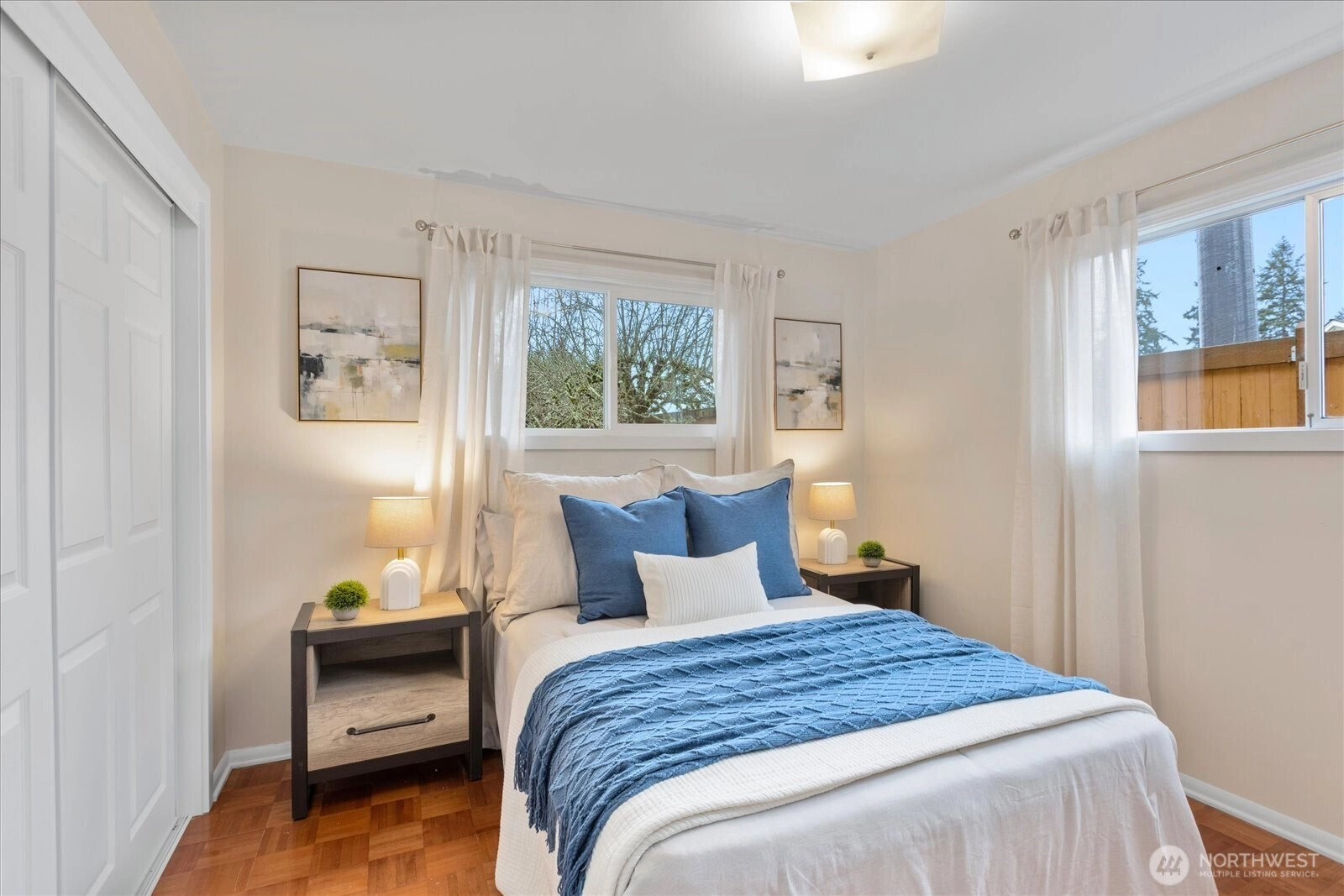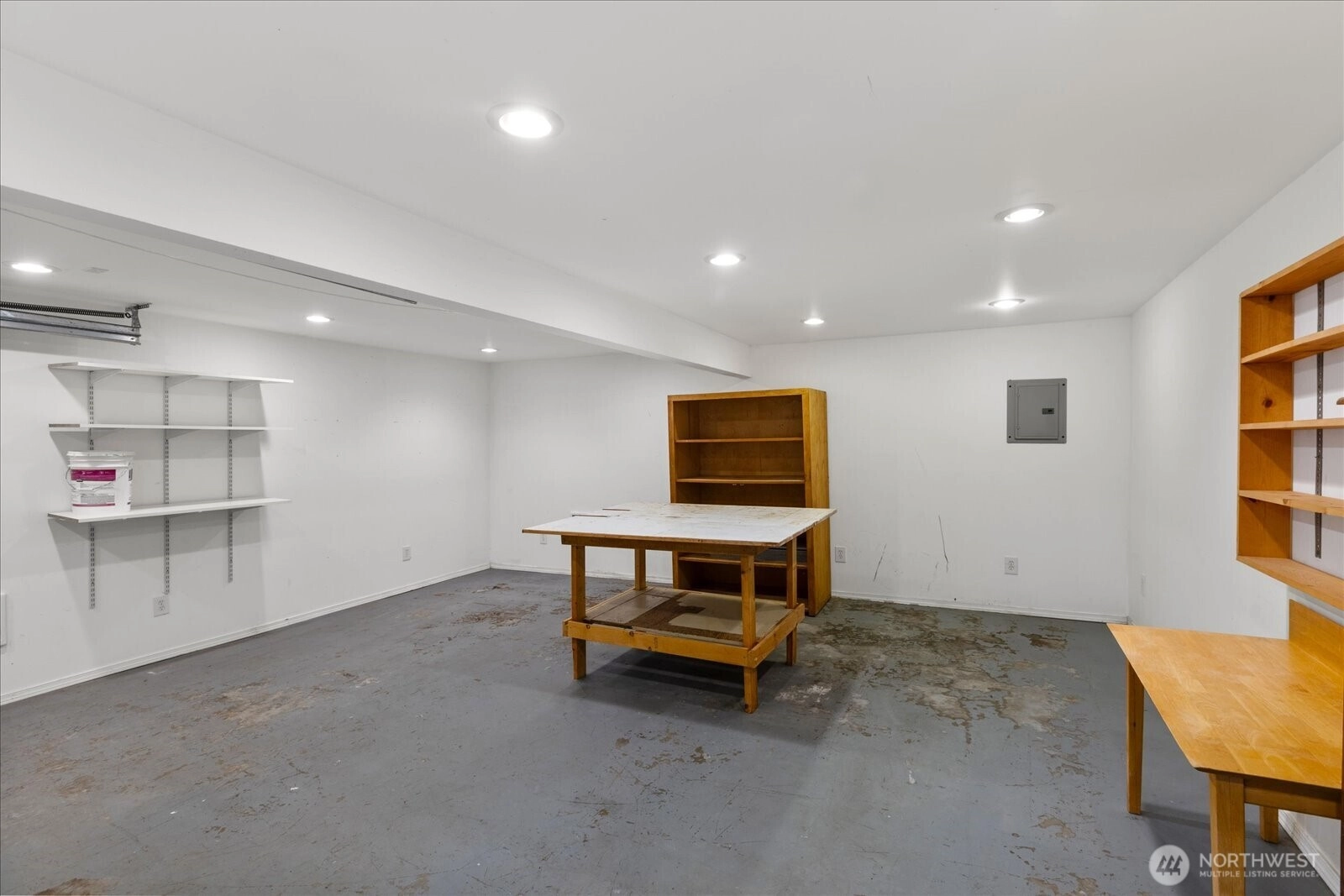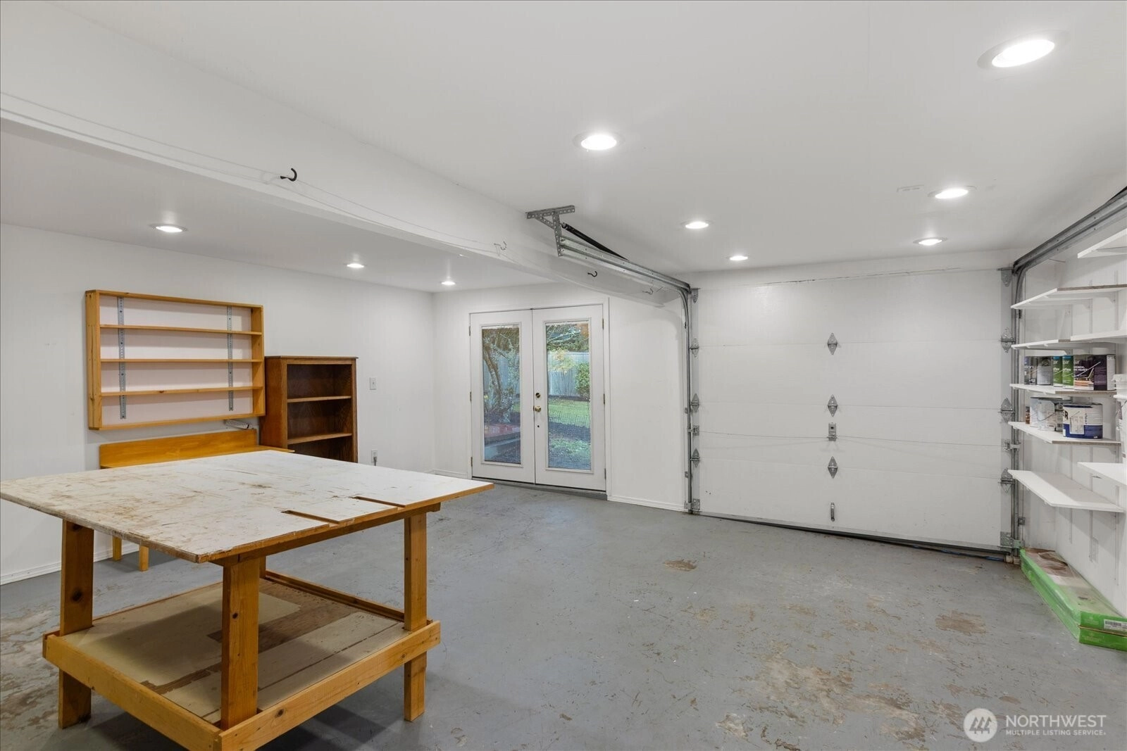 Tucked back off of a quiet street, this mid-century modern rambler offers space, privacy, and endless possibility. Set on a huge, 18,000sqft fully fenced lot surrounded by fruit trees, flowering shrubs and edible berries. This home is filled with natural light and serene views from every window. Spacious living and dining areas center around a cozy wood-burning fireplace—ideal for gathering or quiet evenings in. The refreshed kitchen features new LVT flooring, all new appliances, and space for a breakfast nook overlooking the peaceful patio and visiting wildlife. Enjoy year-round comfort with new mini-splits throughout providing efficient heating and cooling from room to room. Newly installed TPO (Thermoplastic Polyolefin) roof complete with added insulation for peace of mind. With its NR3 zoning, the expansive lot offers exciting DADU or future build potential (buyer to verify). Large shop/studio with electric heat and a two-car garage add versatility for hobbies, storage, or creative space. Conveniently located near sought-after Boeing Creek Park and Sunset Park and within the Shoreline School District. A rare opportunity to live, expand, and create your vision.