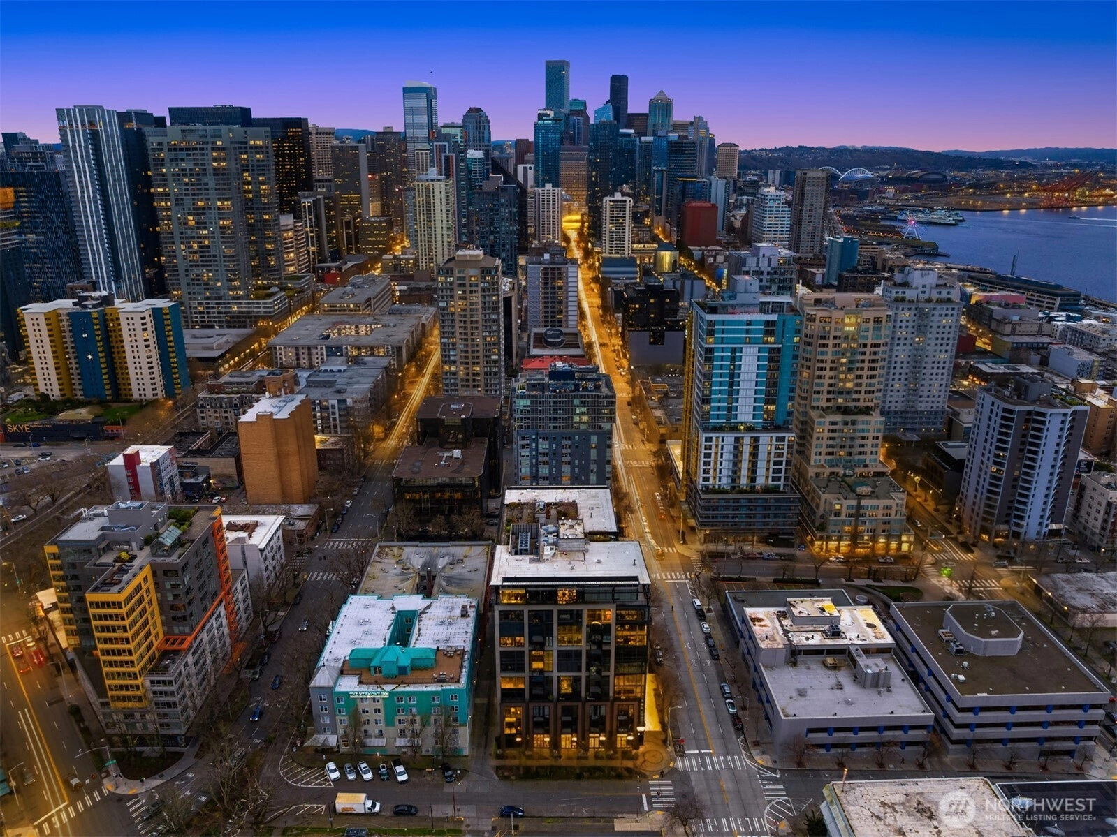 Thoughtfully maintained + well-priced studio in Belltown’s dynamic heart. Open layout features expansive windows, great natural light + high ceilings. Industrial-style accents add to modern design aesthetic. Solid concrete construction offers quieter urban living experience. Stainless-steel appliances + ample cabinet space highlight kitchen. In-unit washer/dryer offers convenience. Lifestyle amenities in luxury high-rise building include concierge, rooftop deck, fitness center + other community areas. Premier dining, recreation areas + nightlife are just outside your door in one of city’s most walkable neighborhoods. Close to downtown + South Lake Union tech firms as well as public transit. Easy access to waterfront trails, Climate Pledge Arena.