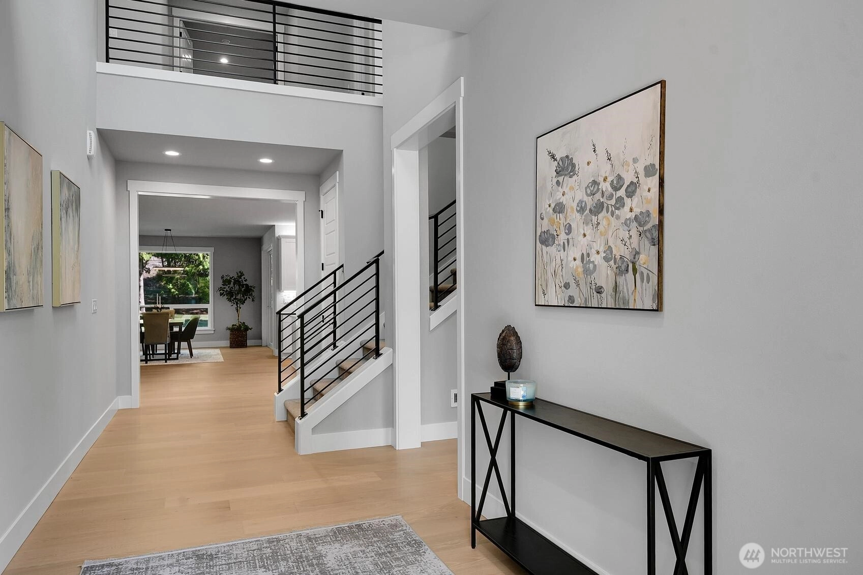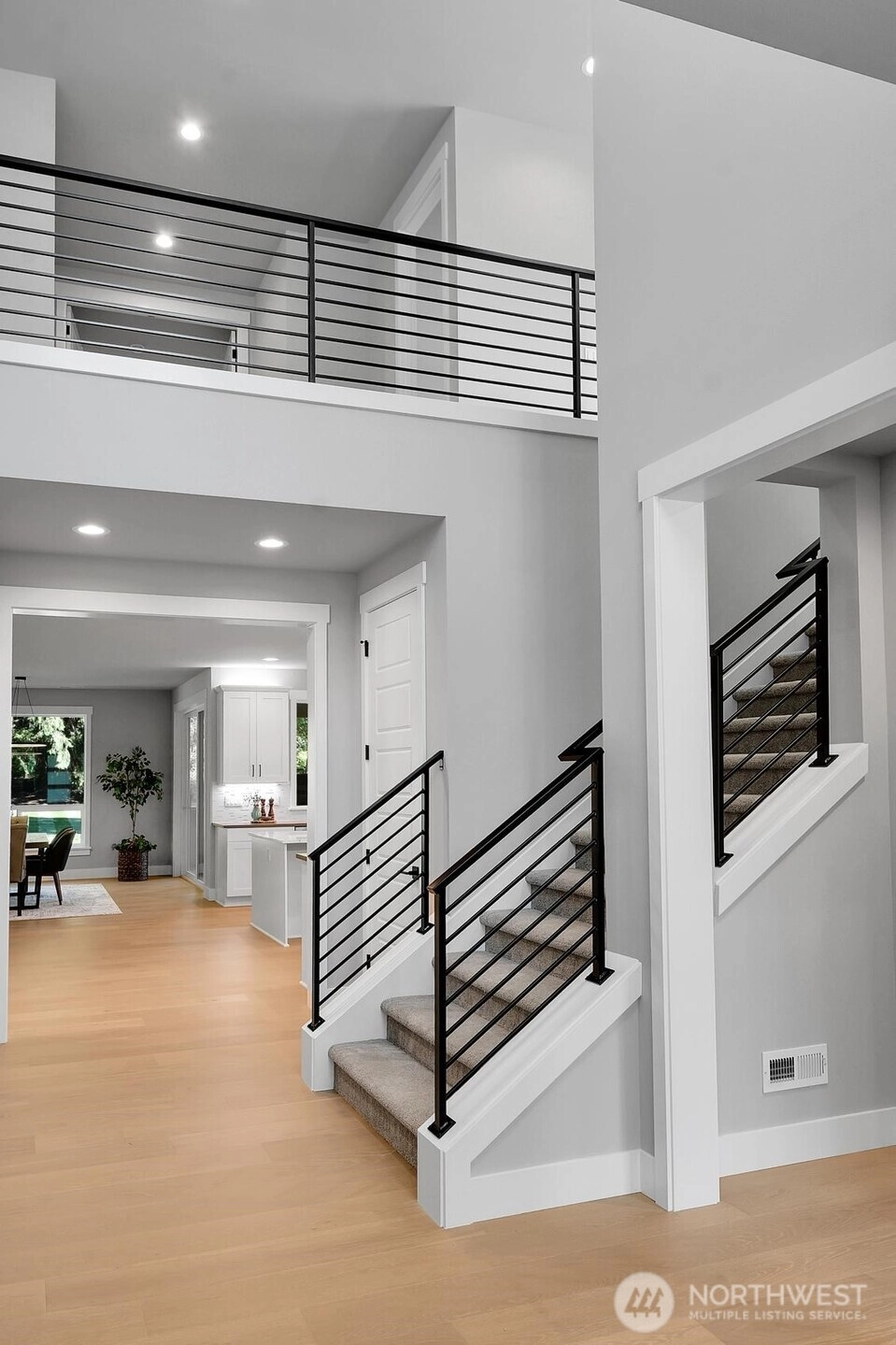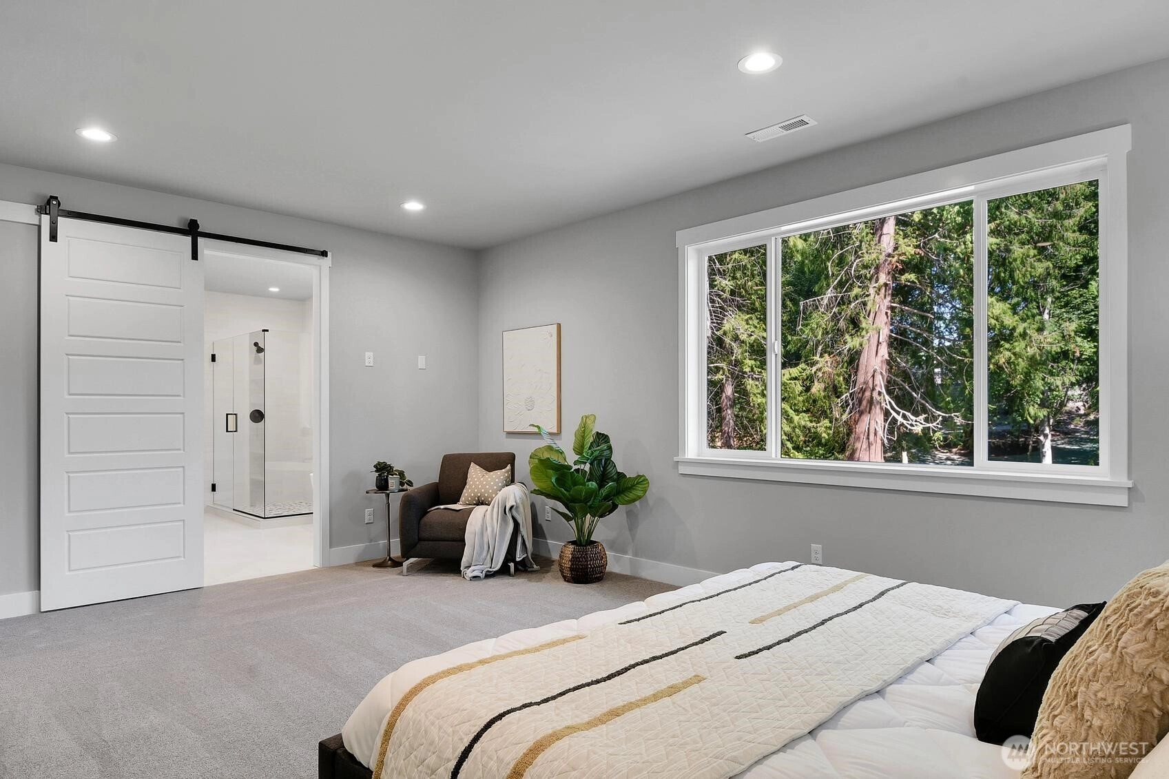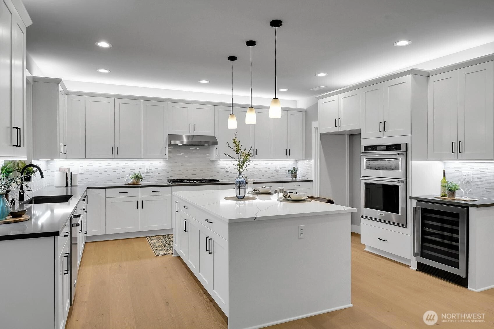 Modern luxury meets everyday comfort in this 4-bed Clearview home on a park-like 1.3+ acre lot. Soaring ceilings, wide-plank hardwoods, and floor-to-ceiling windows brighten the spacious great room with a sleek gas fireplace and custom built-ins. The chef’s kitchen features a quartz island with seating, white shaker cabinets, stainless steel appliances, and a walk-in pantry, plus a main-floor den for added flexibility. Upstairs offers a luxurious primary suite with spa-like 5-piece bath and oversized walk-in closet, vaulted bonus room, and laundry with cabinetry and sink. Enjoy year-round entertaining on the covered deck with built-in BBQ and fireplace overlooking the manicured yard with sprinkler system. Central A/C, 3-car garage, and mudroom. Built by Arcadia Homes.