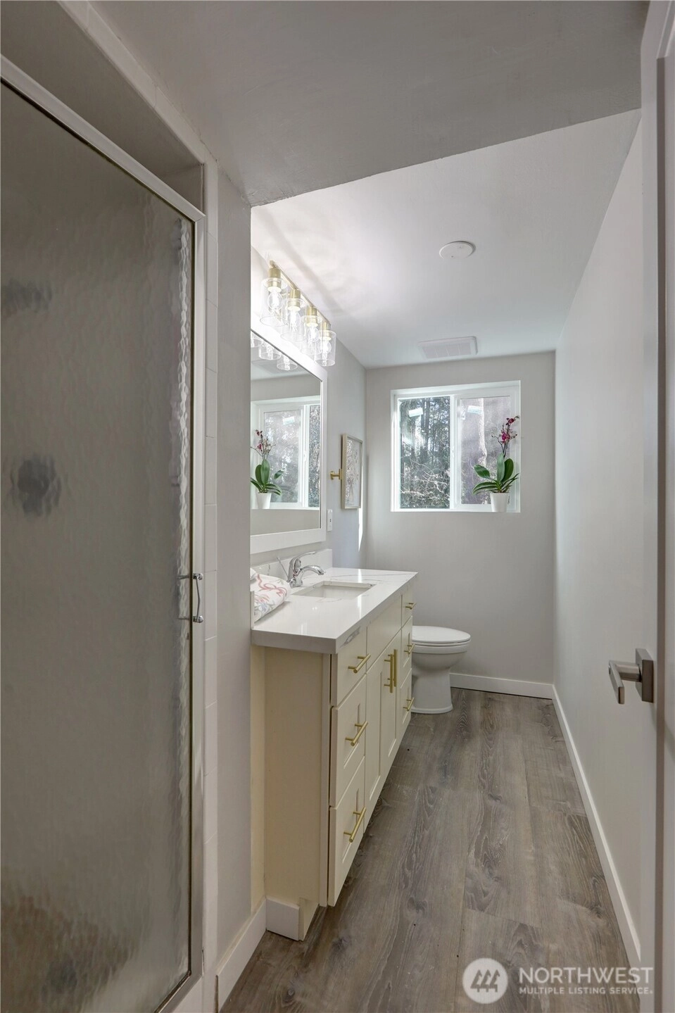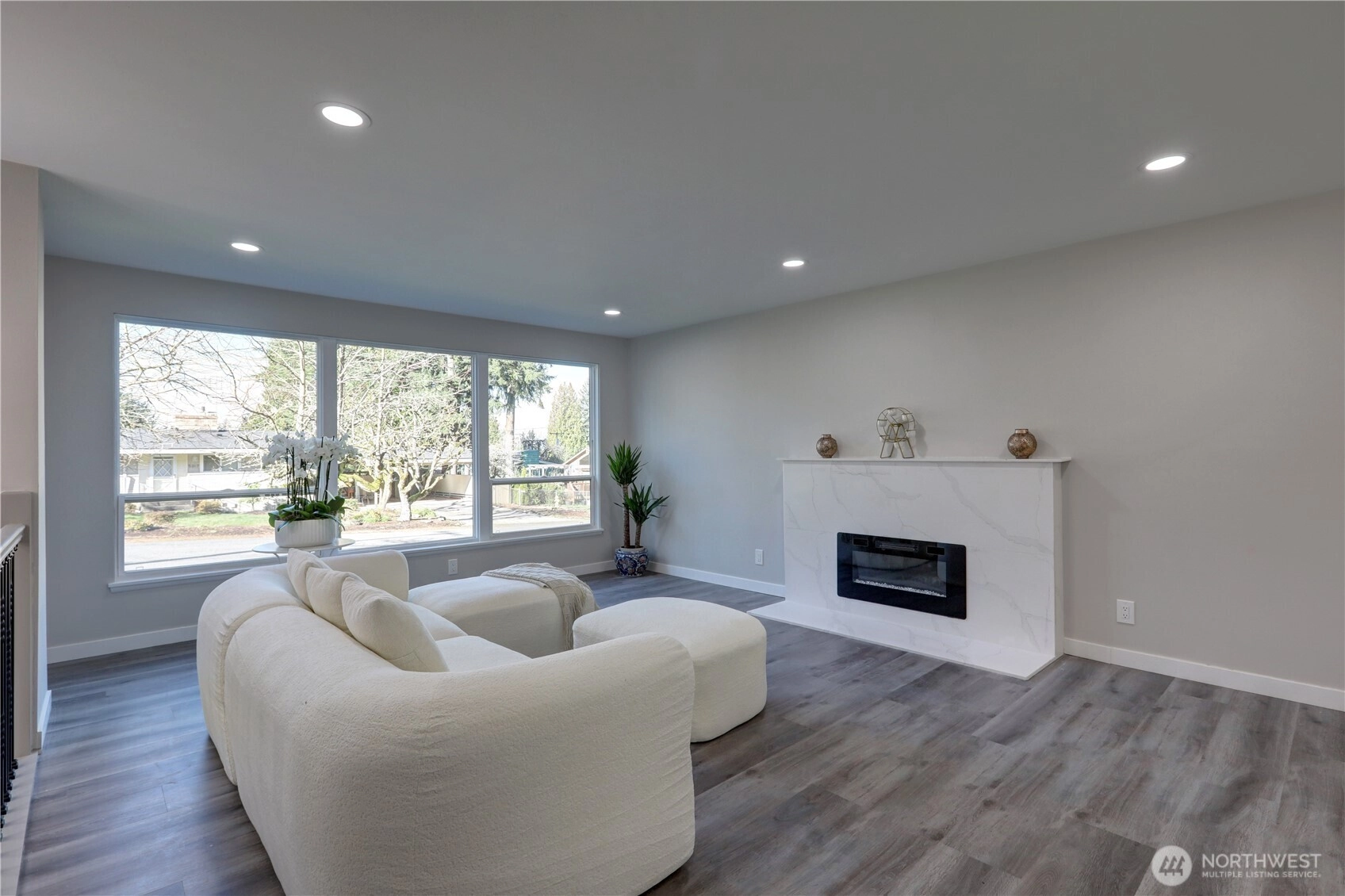 Completely remodeled, mid-century split level house is ready for your further cosmetic updates. Like New kitchen with cord counter top. New window, new floor, new garage door, new paint, new light fixture and much more. Great spacious floor plan, 4 bedrooms, 2.5 bath with new en-suite bath off primary, 3 bathrooms 2 bath upstairs. Plus lower level rec room and office/bonus room with new LVP floor, 2 fireplaces. Spacious deck off the dining room. Upstairs hardwood floors under the carpeting. Daylight walk-out basement to patio and enticing backyard with room to play and the home backs to the Coal Creek Natural Area and King County Trail System. Huge 550 sf garage. Gas furnace. Hard to find better...2,580 sf home on a 16,675 sf lot, and in the fantastic The ultimate blend of convenience and lifestyle. Bellevue School.