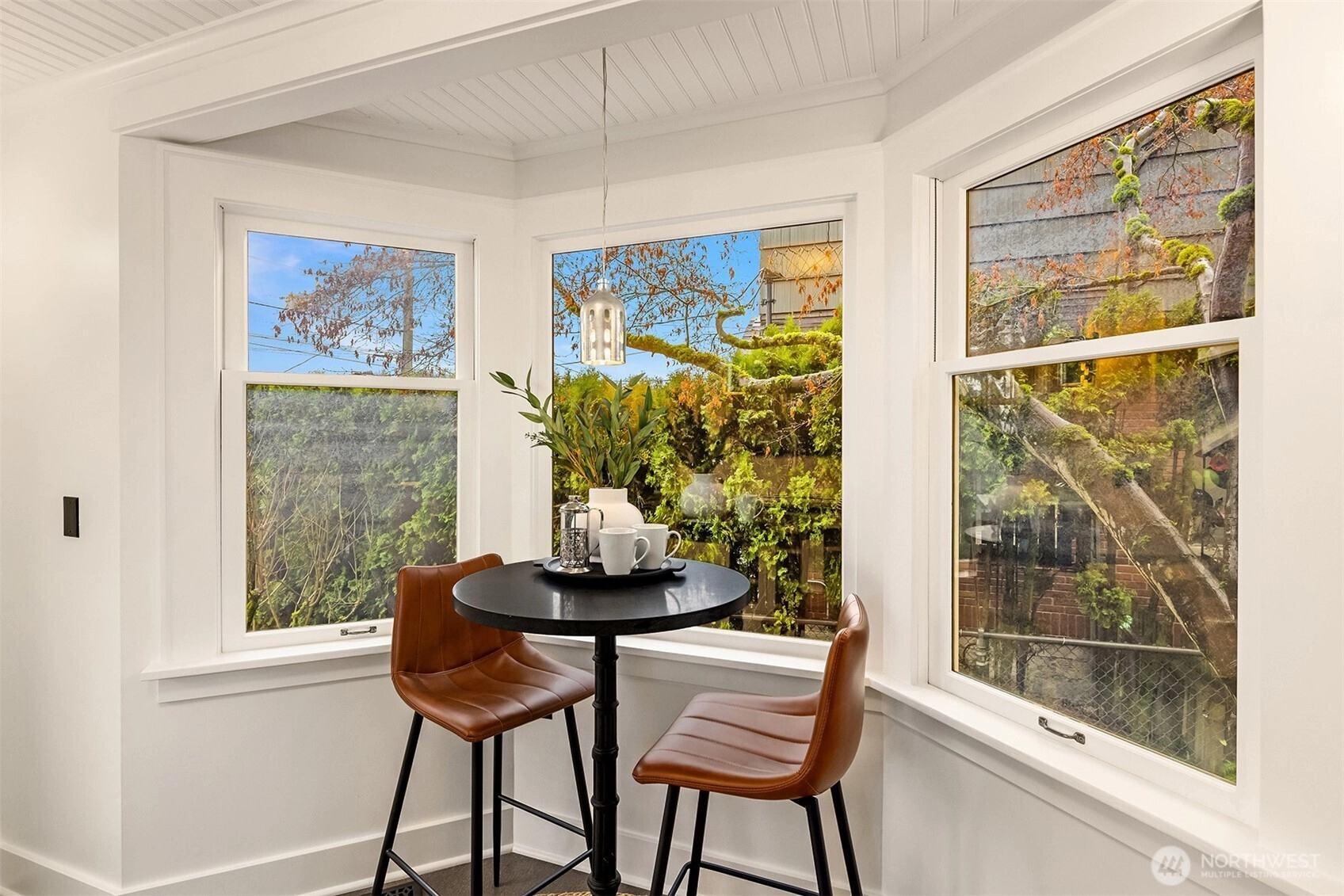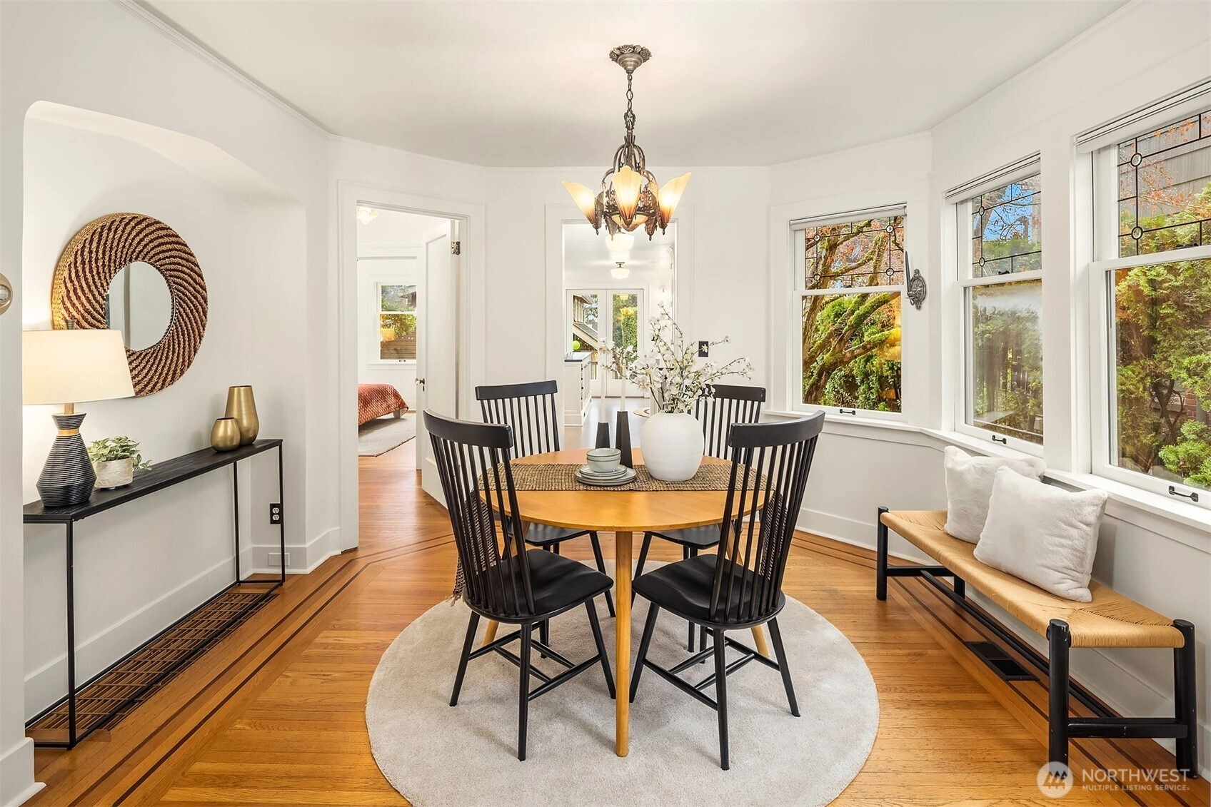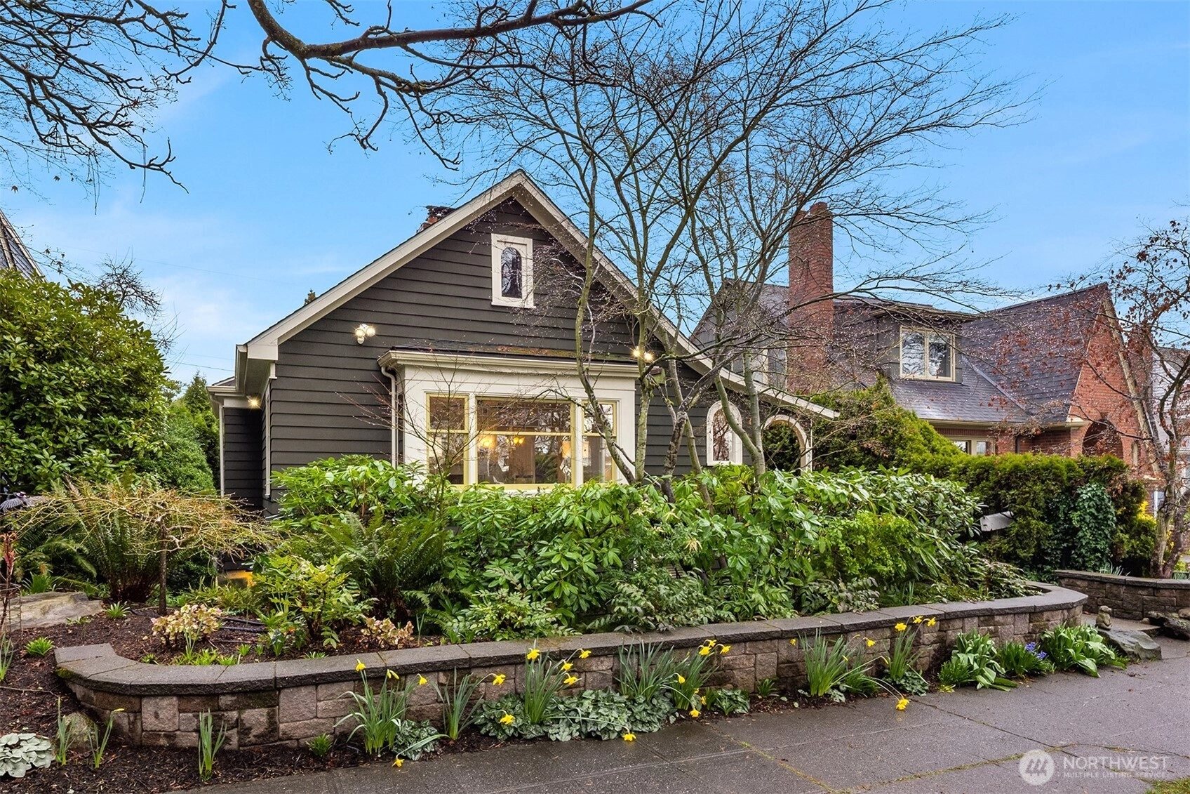With a deep and meaningful history, this home is a story unto itself. Built for an attorney and opera singer, then passed along to the next generation when the time came, then to the current owner in 2007. Fall in love with soaring ceilings, sunken front garden, carefully procured light fixtures and restored built-ins, JAS redesigned kitchen and octagon shaped dining room. Western sunlight sparkles through stained glass windows as you read on a cozy sofa by a crackling wood fire. Variegated maple trees provide canopy, privacy, and a lush focal point from the west, while the back portion of the lot has space for gardening and a fabulous deck for grilling and recreating. The lower level offers income potential as a spacious, bright, two bedroom / one bathroom apartment, but it also easily incorporates into the core unit as a family room, office, guest room, etc. DO NOT miss the attic; one ascent of the ladder and you’ll be fantasizing about what it could become. The detached garage is the ideal hobby space with a dedicated electrical panel (220V) and offers off-street parking, while the loft above is waiting for you to give it a new identity. Beyond the utterly charismatic house and glorious grounds, you’ll be treated to one of most charming, quietly bustling neighborhoods in Seattle, with Mio Posto, Met Market, Bryant Park, U-Village, Bryant Elementary and dozens of other sweet destinations at your fingertips.