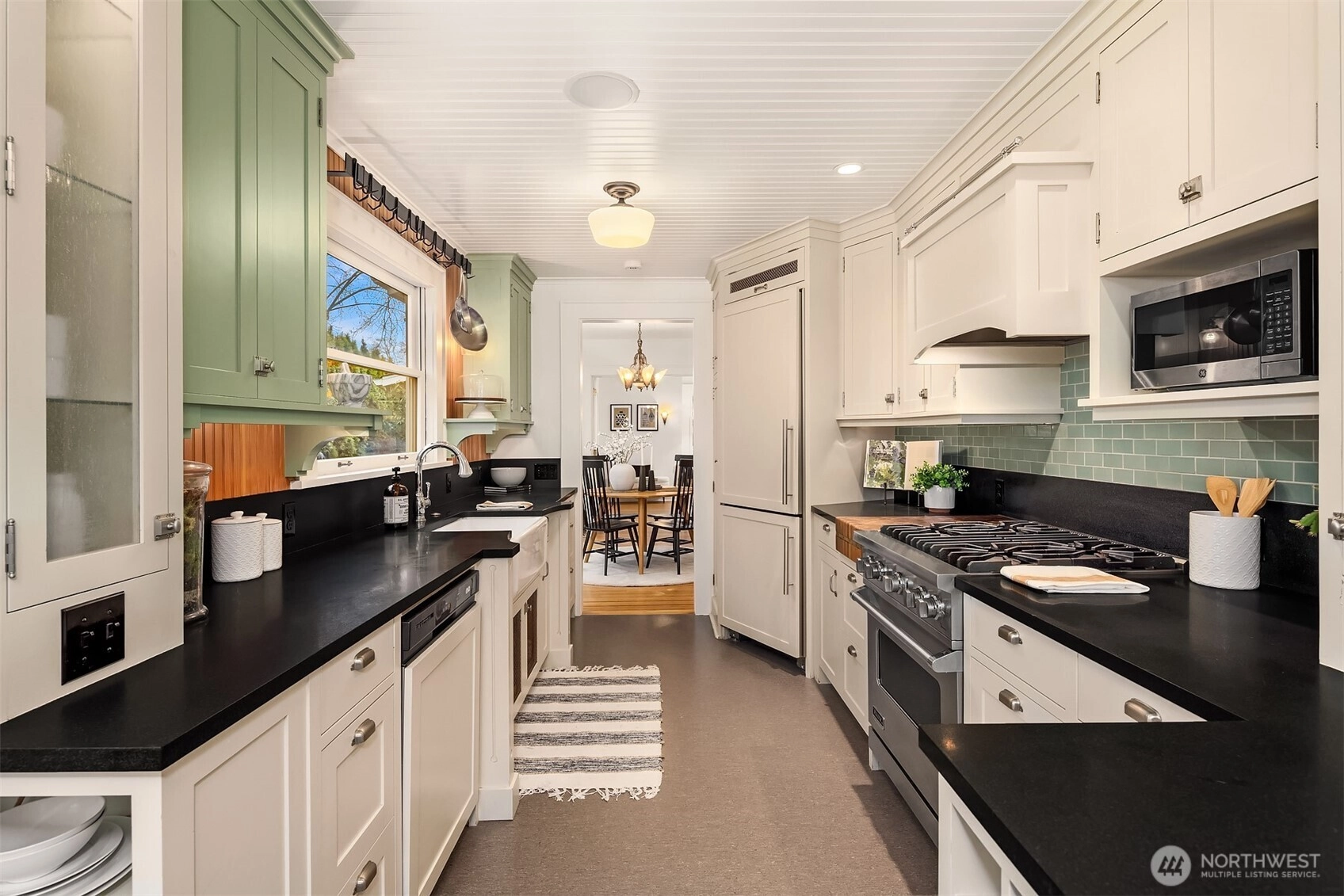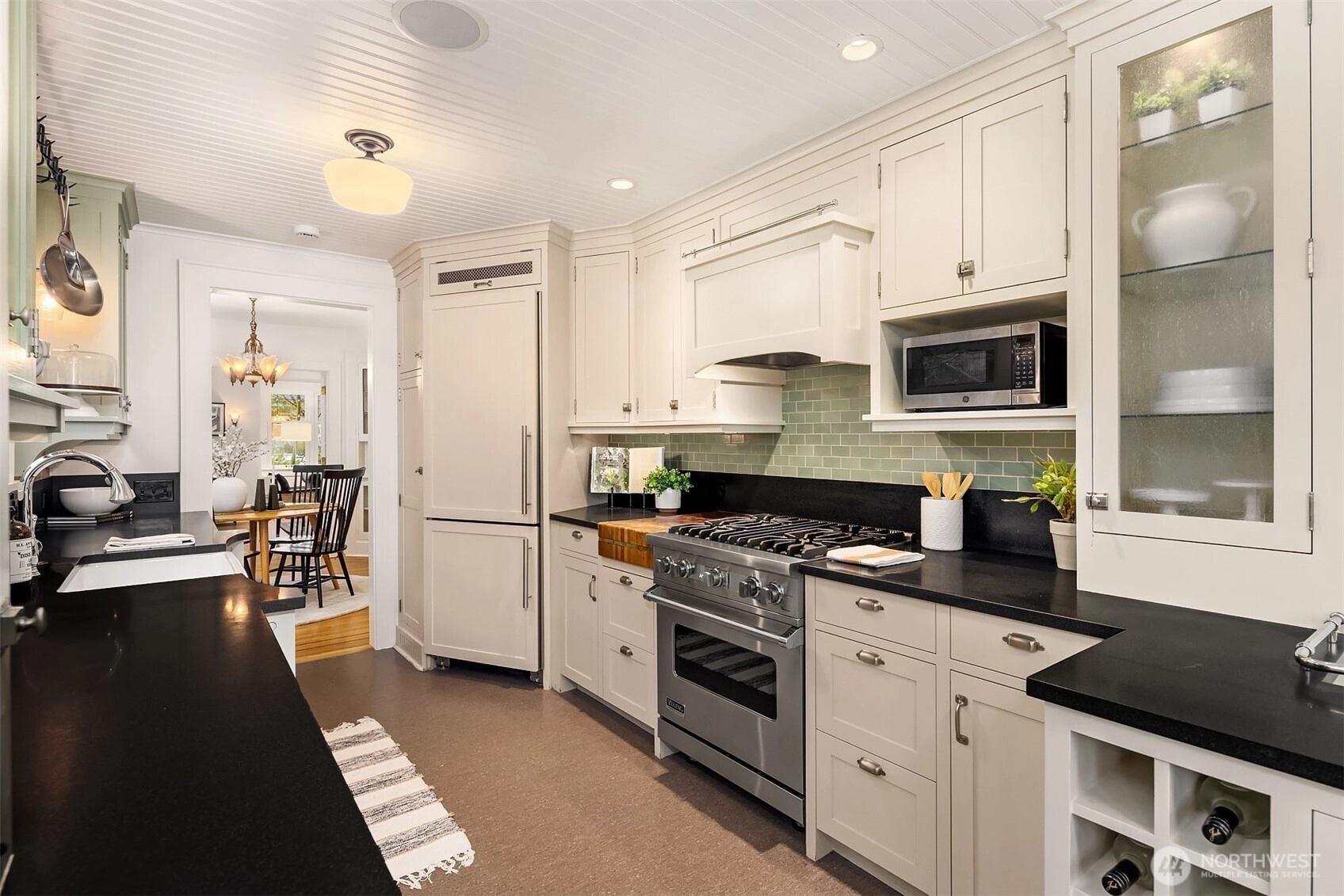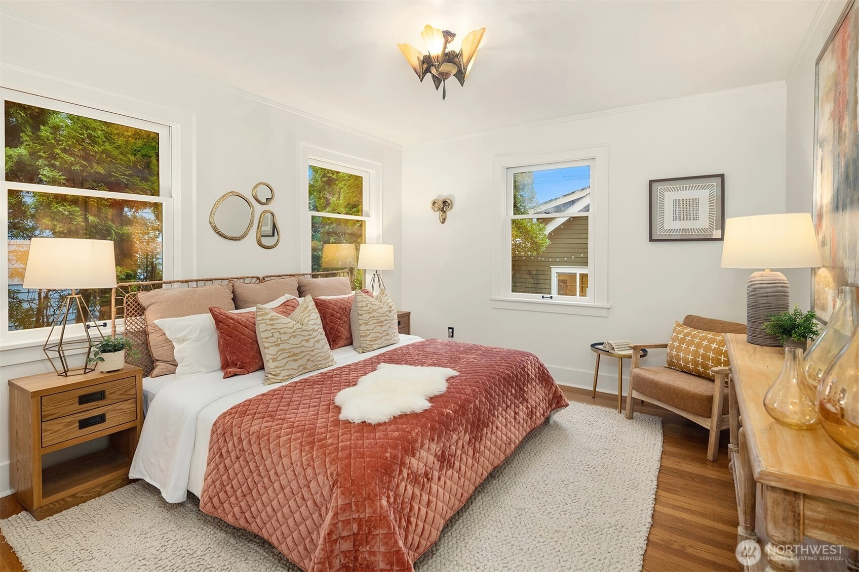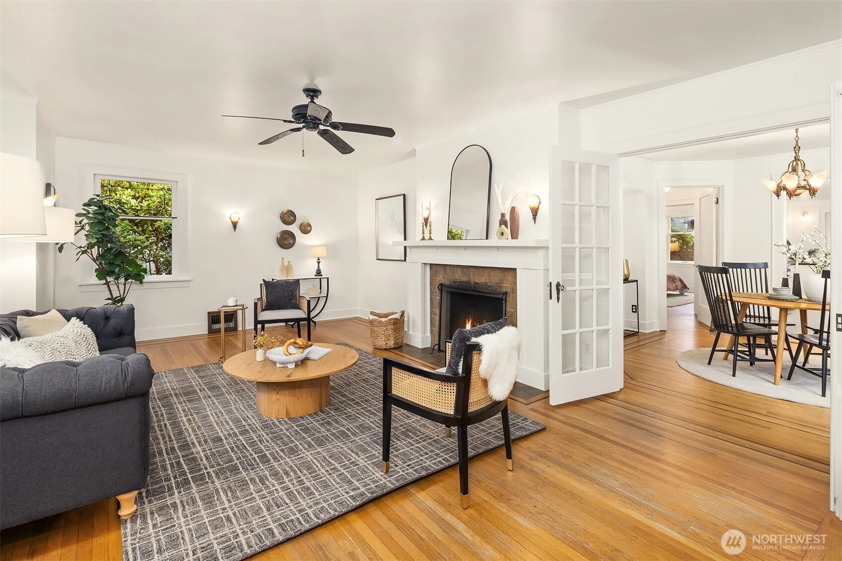 With a deep and meaningful history, this home is a story unto itself. Built for an attorney and opera singer, then passed along to the next generation when the time came, then to the current owner in 2007. Fall in love with soaring ceilings, sunken front garden, carefully procured light fixtures and restored built-ins, JAS redesigned kitchen and octagon shaped dining room. Western sunlight sparkles through stained glass windows as you read on a cozy sofa by a crackling wood fire. Variegated maple trees provide canopy, privacy, and a lush focal point from the west, while the back portion of the lot has space for gardening and a fabulous deck for grilling and recreating. The lower level offers income potential as a spacious, bright, two bedroom / one bathroom apartment, but it also easily incorporates into the core unit as a family room, office, guest room, etc. DO NOT miss the attic; one ascent of the ladder and you’ll be fantasizing about what it could become. The detached garage is the ideal hobby space with a dedicated electrical panel (220V) and offers off-street parking, while the loft above is waiting for you to give it a new identity. Beyond the utterly charismatic house and glorious grounds, you’ll be treated to one of most charming, quietly bustling neighborhoods in Seattle, with Mio Posto, Met Market, Bryant Park, U-Village, Bryant Elementary and dozens of other sweet destinations at your fingertips.