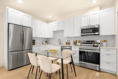 Welcome to this beautiful home. Top notch finishes meet you at the front door and take you thru ought the home. Tall ceilings and tall doors that make it feel even bigger. Quartz on the kitchen counter and the enormous island that can fit everyone around. all tile bathroom and heated floors. Primary bedroom has a personal steam shower great for our PNW weather or after a good workout. Deck in backyard covers you from any rain but the massive skylights let 100% of the sun thru for you to enjoy. Did I mention the ADU? Separate entrance and full size everything, with a 1,000SQFT 2 Bed you can use for yourself or rent out for potential passive income.