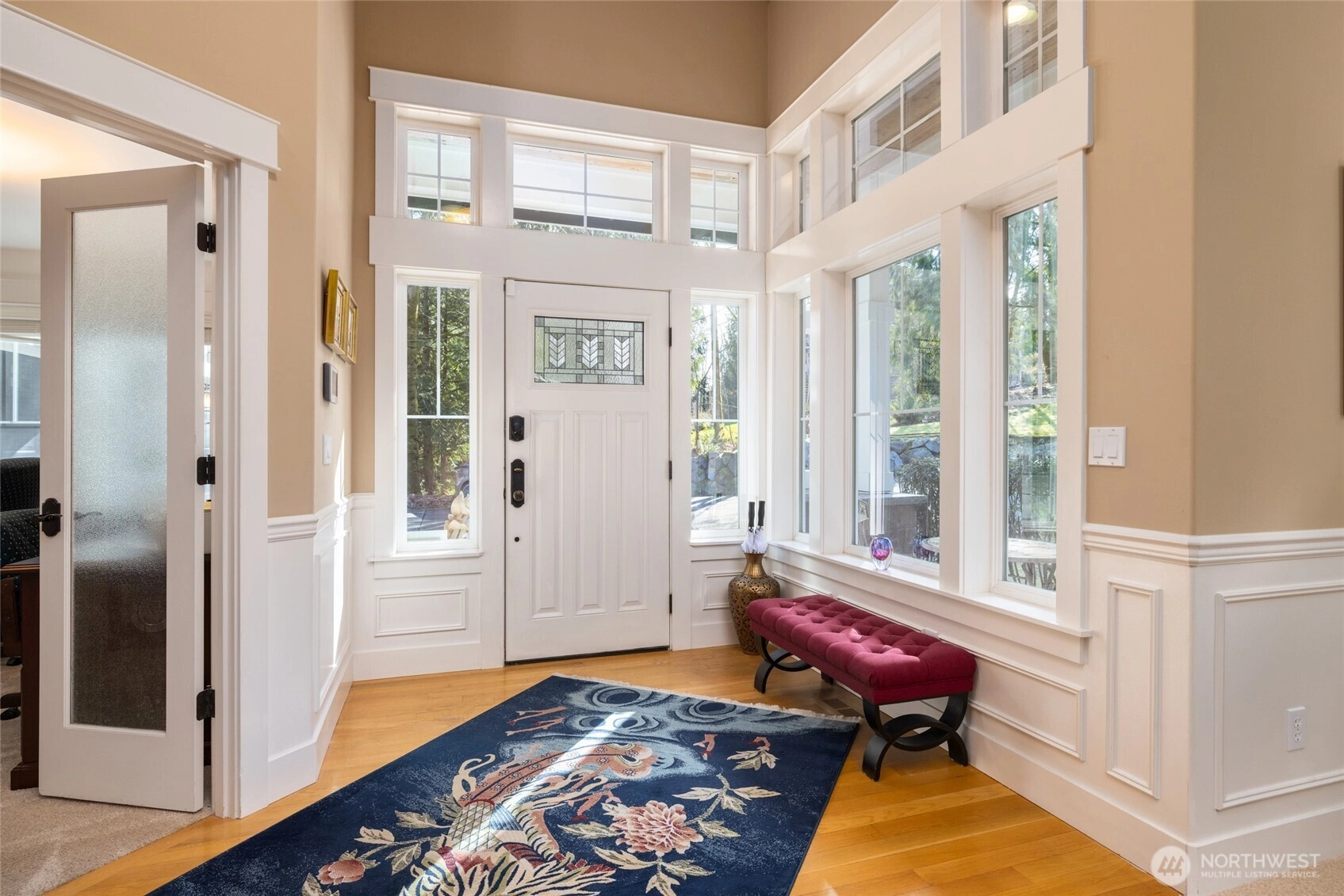Exquisite architecturally designed Craftsman custom home set on a secluded one-acre homesite in the Aspen community. Surrounded by private parks, scenic trails, and lush natural beauty, this exceptional residence offers rare privacy just minutes from I-5. The thoughtfully designed main level showcases refined living spaces, a chef-inspired kitchen with stainless appliances, center island, and casual dining area, formal dining room, private office, and spacious three-car garage. Walls of windows frame tranquil views of the professionally landscaped grounds, where mature trees and curated plantings create a serene, park-like setting. Enjoy peaceful mornings and sunset evenings from the Trex deck or relax in the home’s many inviting indoor and outdoor living spaces. The upper level features a luxurious primary suite with spa-inspired bath and walk-in closet, along with additional bedrooms and a media room. A rare opportunity to experience elevated living in one of the area’s most coveted communities, with fee simple ownership of the land.