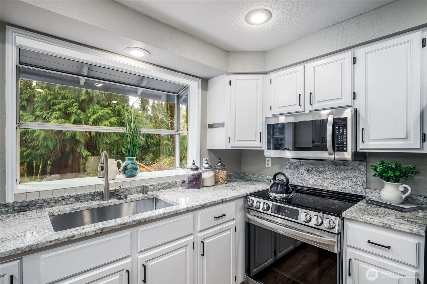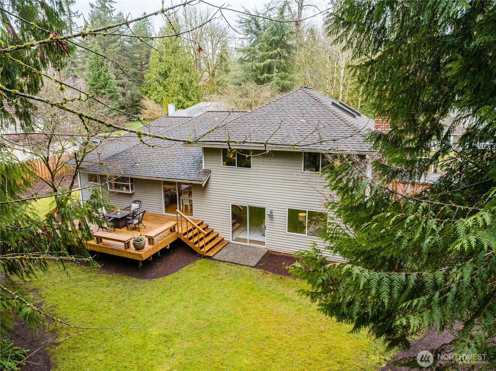 Light, bright, and beautifully refreshed, this inviting tri-level home sits on a rare, level 12,000 sq ft lot backing to a serene natural greenbelt. Recent updates include new carpet, flooring, paint, countertops, lighting, and more—every space feels fresh and welcoming. The open floor plan flows easily, with a sunny kitchen featuring a breakfast bar and a slider that opens directly to the entertainment-sized deck overlooking the private backyard. The comfortable family room adds even more living space with a cozy gas fireplace, custom built-ins, and its own slider leading to the spacious patio—perfect indoor-outdoor living on both levels. The huge, usable yard offers room to play, garden, or simply relax in privacy thanks to the protected natural area beyond. Enjoy the English Hill setting, one of the most desirable neighborhoods—but with none of the English Hill HOA restrictions—you’ll enjoy quiet streets, strong community feel, and top-rated Northshore schools. Minutes to Redmond, Woodinville, parks, and everyday conveniences, this home delivers curb appeal, comfort, and an exceptional setting. Pre-inspected and comes with a 1-year home warranty! 5 stars!