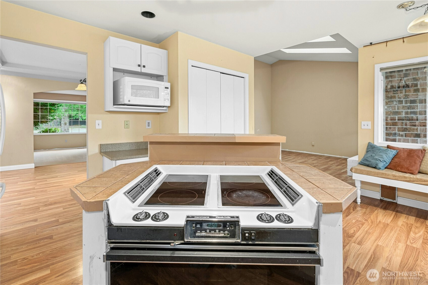 Welcome to this spacious one-level rambler in the desirable community of Brier. Offering 1,953 square feet of living space, this 3-bedroom, 2-bath home sits on an oversized, flat corner lot with mature landscaping and multiple private spaces. Designed for comfort and long-term livability, the home features a desirable single-level layout. Inside, you'll find a thoughtfully designed floor plan featuring a sunken living room, a generous dining room perfect for gatherings, and an inviting kitchen with informal built-in bench seating and quality cabinetry. The classic family room is equipped with hardwired audio and video cabling, creating an ideal space for entertainment or media. An extra-wide hallway leads to the oversized primary suite, complete with a walk-in closet and a floor-bolted safe. Additional practical features include a sprinkler system and an oversized two-car garage with abundant cabinetry and workspace for projects, storage, or hobbies. The nearly 17,000-square-foot lot offers space to garden, landscape or explore future development potential such as a DADU or detached workshop. Enjoy convenient walkability to nearby schools, everyday retail, coffee shops, grocery options, and access to light rail, making commuting and daily errands simple. With great bones, a large lot, and room to personalize, this property is ready for your vision and ideas. Buyer to perform due diligence to their satisfaction. Property being sold As-Is.