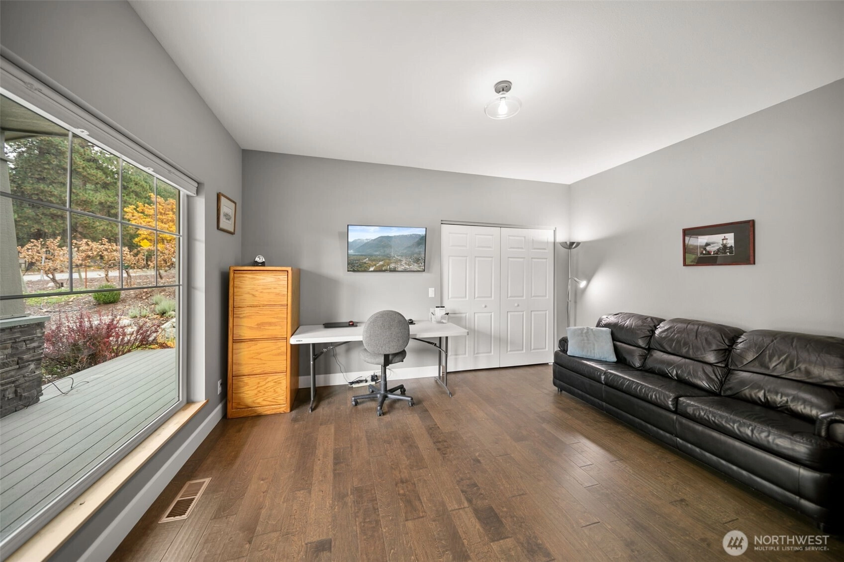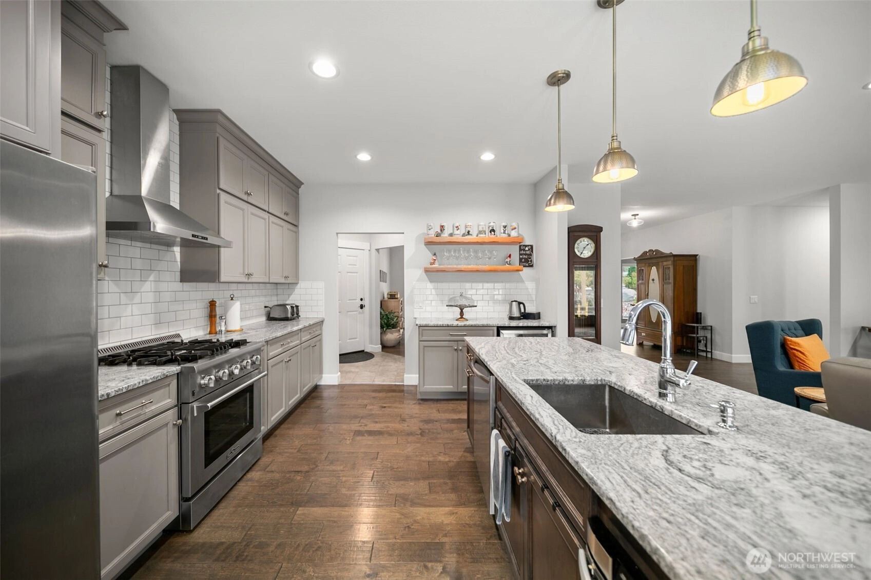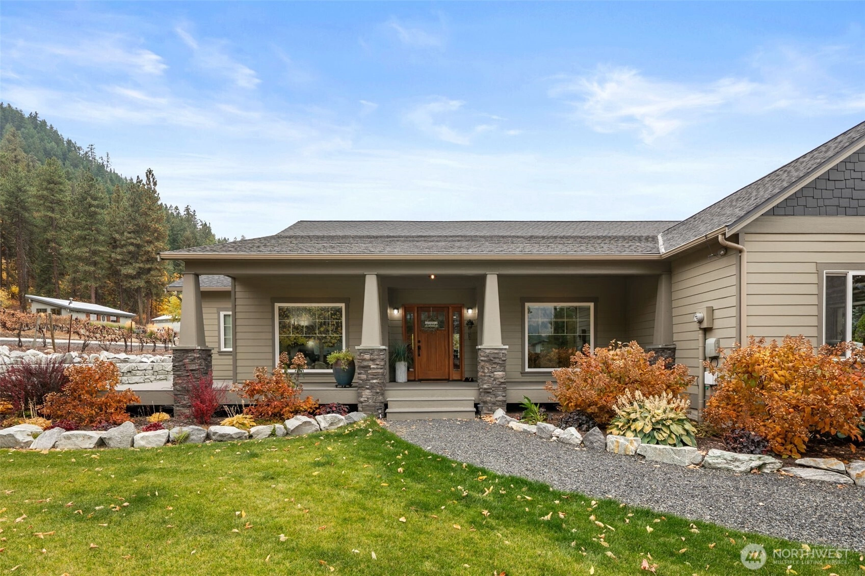 Set beneath the breathtaking skyline of the Cascade Mountains this beautifully crafted single-level home captures the essence of refined Leavenworth living. A welcoming covered front porch and custom wood entry door invite you into a warm and thoughtfully designed interior where gleaming engineered hardwood floors and a striking full-stone fireplace anchor the main living space. The chef’s kitchen is designed to gather around, featuring leathered granite countertops, an oversized island, soft-close cabinetry with custom pull-outs, microwave drawer, beverage station with wine refrigerator, and a generous walk-in pantry. The open design flows seamlessly between kitchen, dining, and living areas, creating a perfect setting for both everyday comfort and memorable entertaining. The spacious primary suite offers a peaceful retreat with direct access to an expansive back deck with sweeping mountain views. An ideal setting for morning coffee or relaxing evenings under the stars. Additional bedrooms provide welcoming guest space, while a versatile bonus room with closet offers flexibility for office, media room, or hobbies. The mature Landscaping with automated irrigation features lavender, ornamental grasses, grapevines, and a small grove of aspens. A spacious 3 car garage provides room for vehicles, recreation gear, and workshop space, complemented by a matching 12×12 storage shed. Located just minutes from downtown Leavenworth, riverfront parks, trails, and year-round recreation.