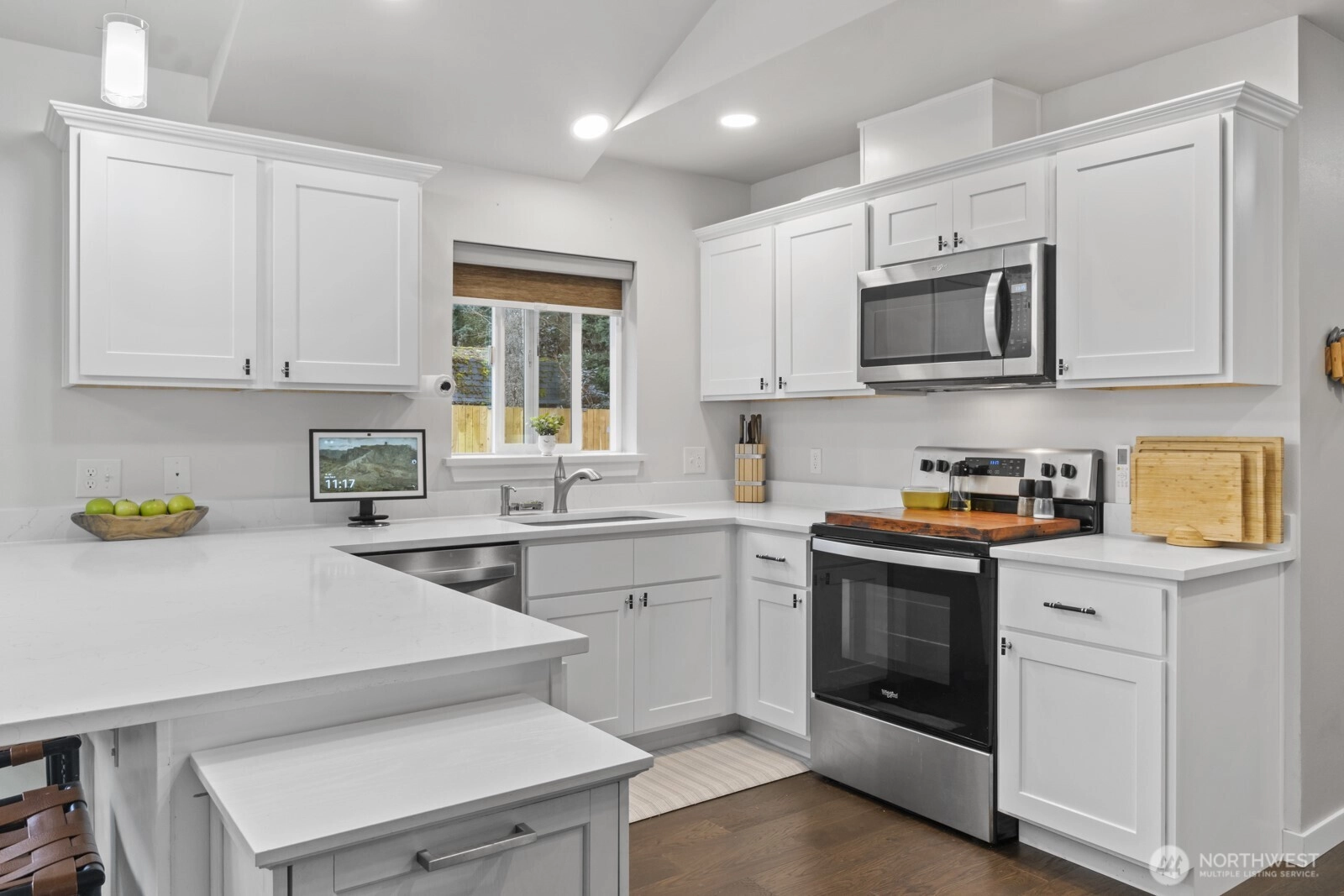 Welcome to this nearly new, three year old residence in exceptional condition. Enjoy year round comfort with a ductless heat pump mini-split for efficient cooling in the summer, soaring vaulted ceilings , and an open concept that flows seamlessly into the dining and living areas- Perfect for entertaining. The kitchen features quartz countertops and stainless steel appliances. The first level includes a bonus room, perfectly suited for an office or den with a half bath located nearby. Upstairs, you find all bedrooms, including the spacious primary with five-piece bath. The backyard is fully fenced and offers privacy as well as ample space for gardening or other hobbies, and the RV gate adds an extra level of functionality! Sellers have paid one year of HOA dues in advance, as a gift to the next owner of this lovely home! Schedule your tour and experience the best of PNW living.