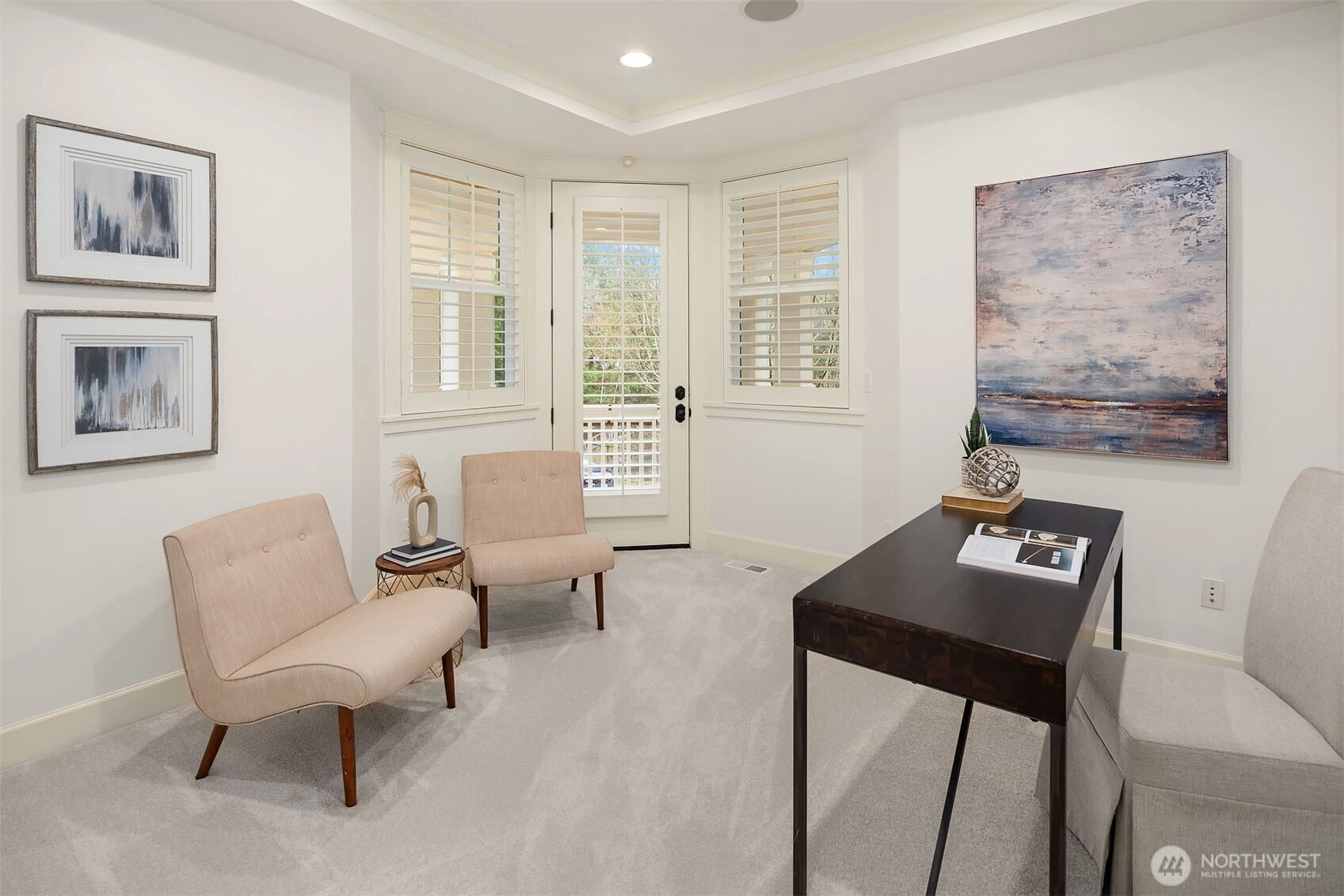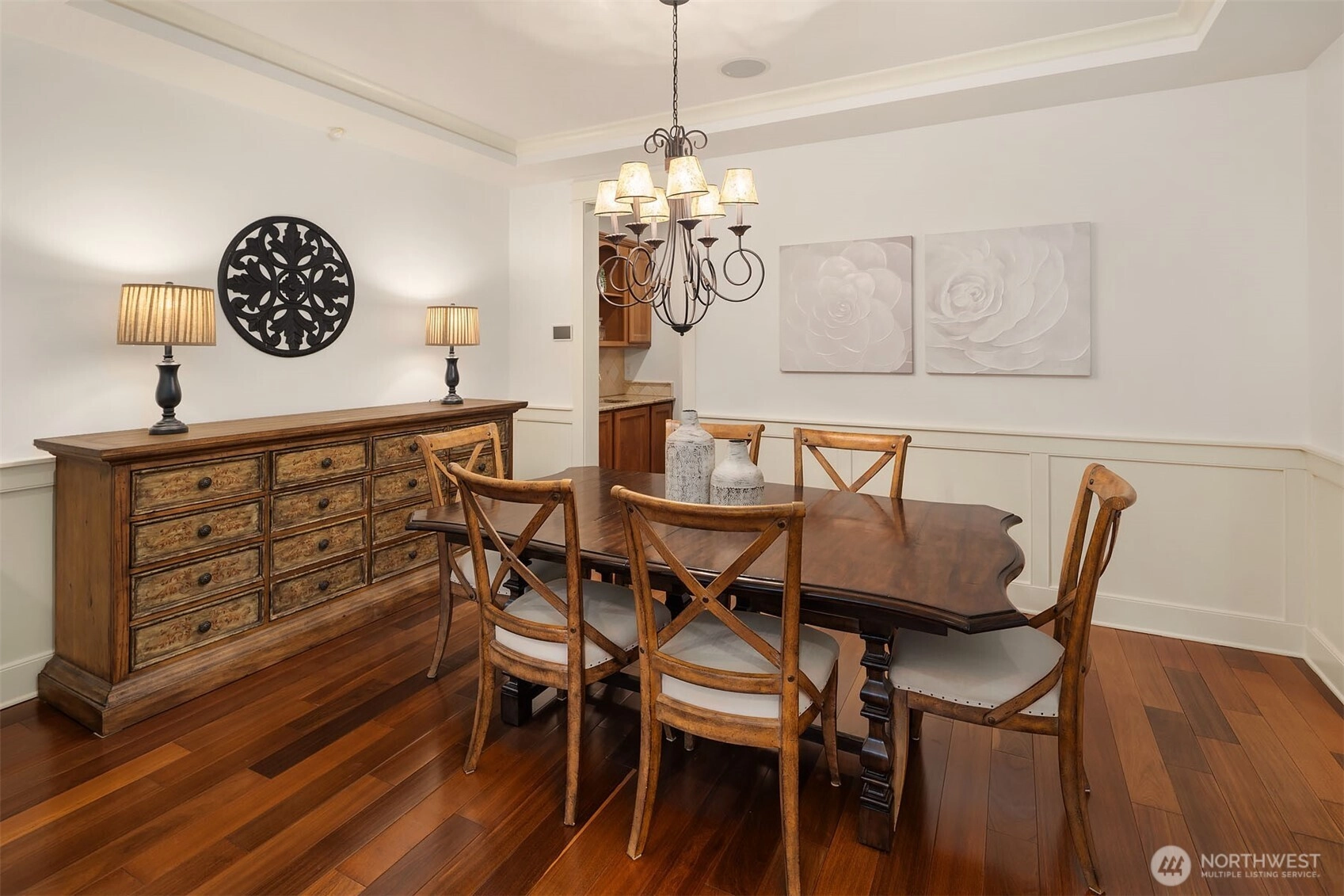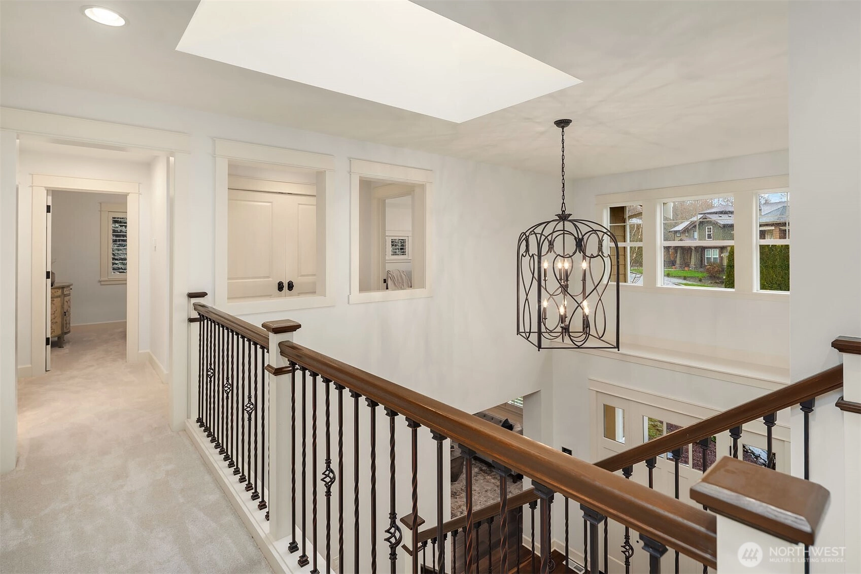 An appealing & functional floor plan designed to check every box. A dramatic 2-story entry welcomes you, where gorgeous hardwoods flow through the kitchen & formal living spaces, complemented by decorative tile, wood shutters & brilliant millwork. The spacious slab granite kitchen features high-end appliances, large island, abundant cabinetry, butler's pantry with wet bar & wine cooler, dining area & a slider to the deck. Warm & inviting, the family room opens to the kitchen & includes a gas fireplace & box-beam ceilings. The elegant living & dining rooms offer an ideal venue for entertaining with French doors opening to the yard. The romantic primary suite boasts a sitting area & luxurious bath with 2 vanities, tile shower, soaking tub & walk-in closet with a 2nd washer/dryer. 3 additional bedrooms & a vaulted bonus room are just down the hall. A main-floor den with closet & access to the front deck. Escape to the lower level with a media room featuring a screen & projector, exercise room, 5th BR & full bath, perfect for guests. Generous windows & skylights fill the home with natural light. Fresh interior paint & new carpet, built-in speakers, CAT5, AC, hot tub & Control4 smart home system. Oversized 3-car, side-load garage with storage room. Enjoy stunning sunrises from the covered wrap-around deck. Private setting with tree-lined yard & protected areas on 2 sides. Ideally located on a non-thru road close to Microsoft, Bellevue, Kirkland, Redmond, Issaquah & Lake Sammamish.