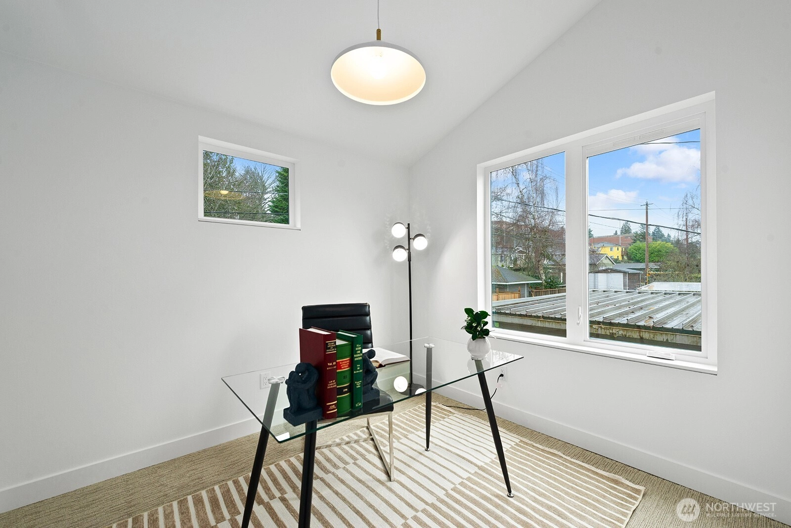 Stunning new construction thoughtfully completed by Coombes Development. This well-executed two-story 2 bed + DEN, 2.25 bath home combines elevated finishes, quality design, & functional living. Enjoy an open-concept main floor with expansive windows, a well-appointed kitchen, featuring high-end appliances + custom cabinetry & coveted main-floor powder room. The private and fenced back patio extends everyday comfort. Upstairs, find two spacious bedrooms, including the primary suite with vaulted ceilings, a large closet, and a luxurious bathroom + a separate office or den, and a full shared bathroom. Additional highlights include an attached 1-car garage, accent stair lighting, engineered hardwoods, Ring doorbell, and mini-splits for heating & cooling. Ideally situated near California Ave with boutique shops, restaurants, and more right at your fingertips.