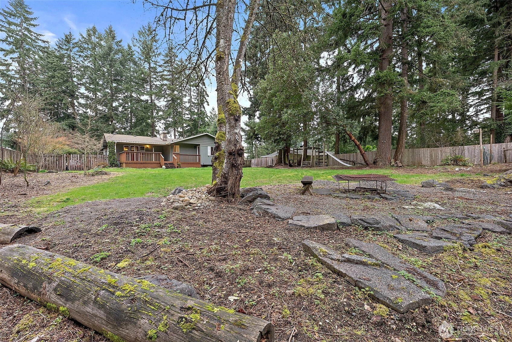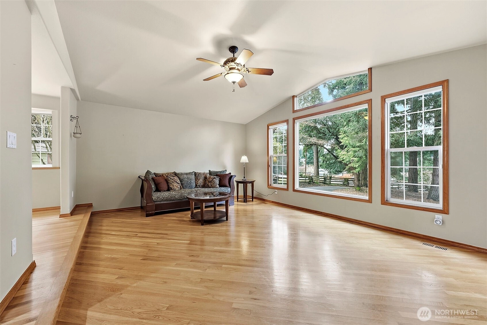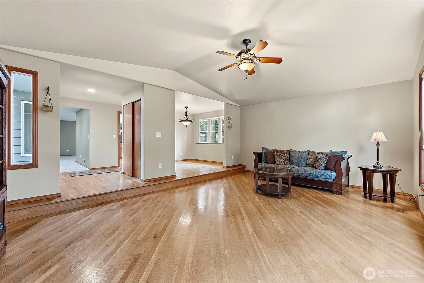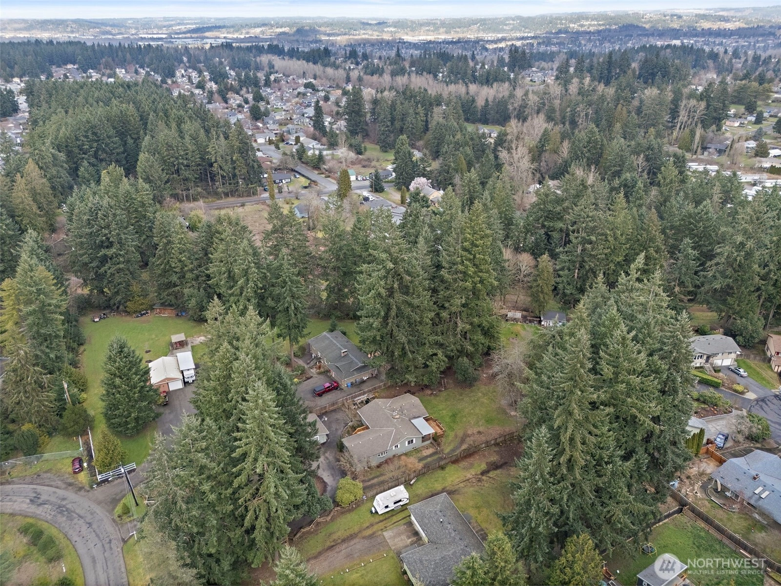 Endless Opportunity in Established Puyallup Neighborhood with 2 Primary Suites & MIL Potential. Tucked along charming tree-lined streets with classic homes and timeless character, this expansive 3,155 sq ft home offers the chance to create something truly special. Set back on a .68-acre lot, the property feels private and secluded—like your own retreat in nature—while still being minutes from downtown Puyallup, Canyon Rd and freeway access. The main level features vaulted ceilings, hardwood floors, and spacious living areas, including both a living room and family room. Formal dining room and large kitchen with abundant storage. This level also includes three bedrooms, including the first primary suite. The lower level offers a private entrance, the second primary suite, a large family room, office/den, and an additional finished room, creating excellent MIL or multi-generational living potential. Outside, the .68-acre lot offers room to relax, garden, or entertain. A detached two-car garage, RV parking, and ample additional space add to the property’s versatility. A wonderful place to call home.