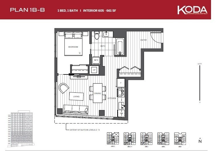 Welcome to KODA—a bold, modern high-rise in Seattle’s vibrant International District. Thoughtfully designed homes feature generously lofted floor-to-ceiling windows, smart layouts, and sleek finishes. This one bedroom, two bathroom + Den home features a spacious, open layout and corner windows maximizing natural SE exposure. Price includes one reserved parking spot, one storage unit. Enjoy unmatched amenities: a wellness center, rooftop terrace with sweeping views, coworking lounge, guest suites, and Club KODA with a theater, kitchen, and dining space. Steps from light rail, Uwajimaya, stadiums, and downtown, KODA blends urban energy with authentic cultural roots. Live where heritage meets modern living.