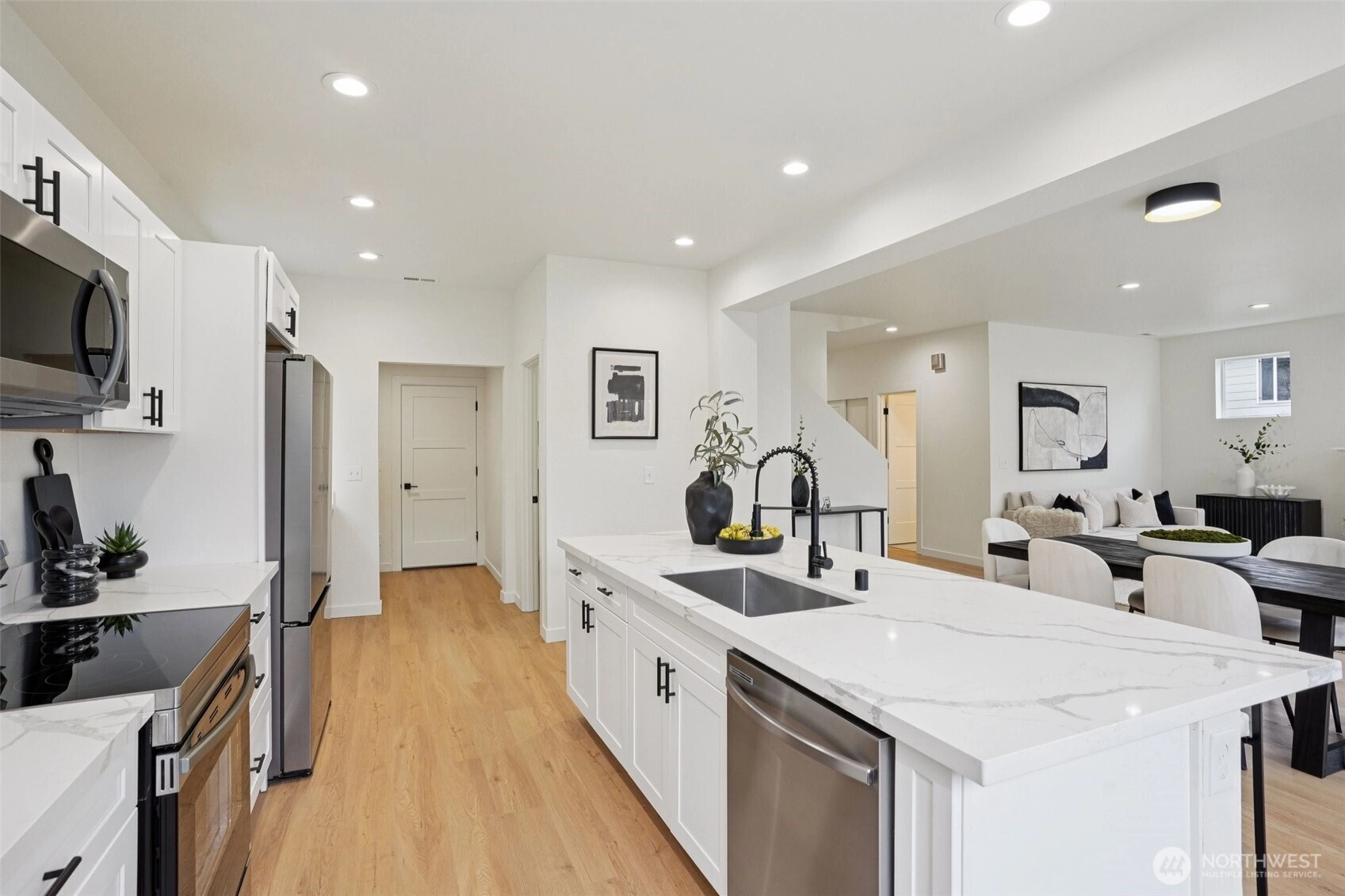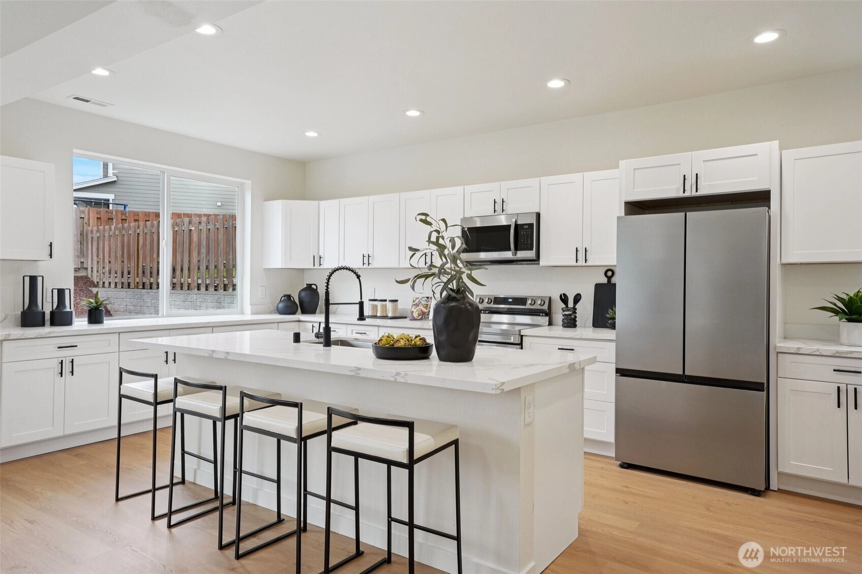 FULL REMODELED! Incredible opportunity to own a beautifully fully remodeled 5-bedroom 3-bathroom home. Virtually everything in the house is brand new including appliances, cabinets, countertops, doors, fireplace insert, fixtures, flooring, trim, both interior and exterior paint, some windows, and landscaping. The main floor features a fantastic open concept with a gas fireplace, oversized island kitchen with eating space, cabinets with generous storage space, stainless steel appliances, and a desk space in addition to the bedroom and a full bathroom. Upstairs there is a huge master bedroom with walk in closet and ensuite 5-piece bathroom. Additionally, there are three more generously sized bedrooms, another full bathroom, and the laundry room. The backyard is fenced and has a sizeable patio. Lender incentives available from preferred lender. Move quickly as this opportunity won't last long.