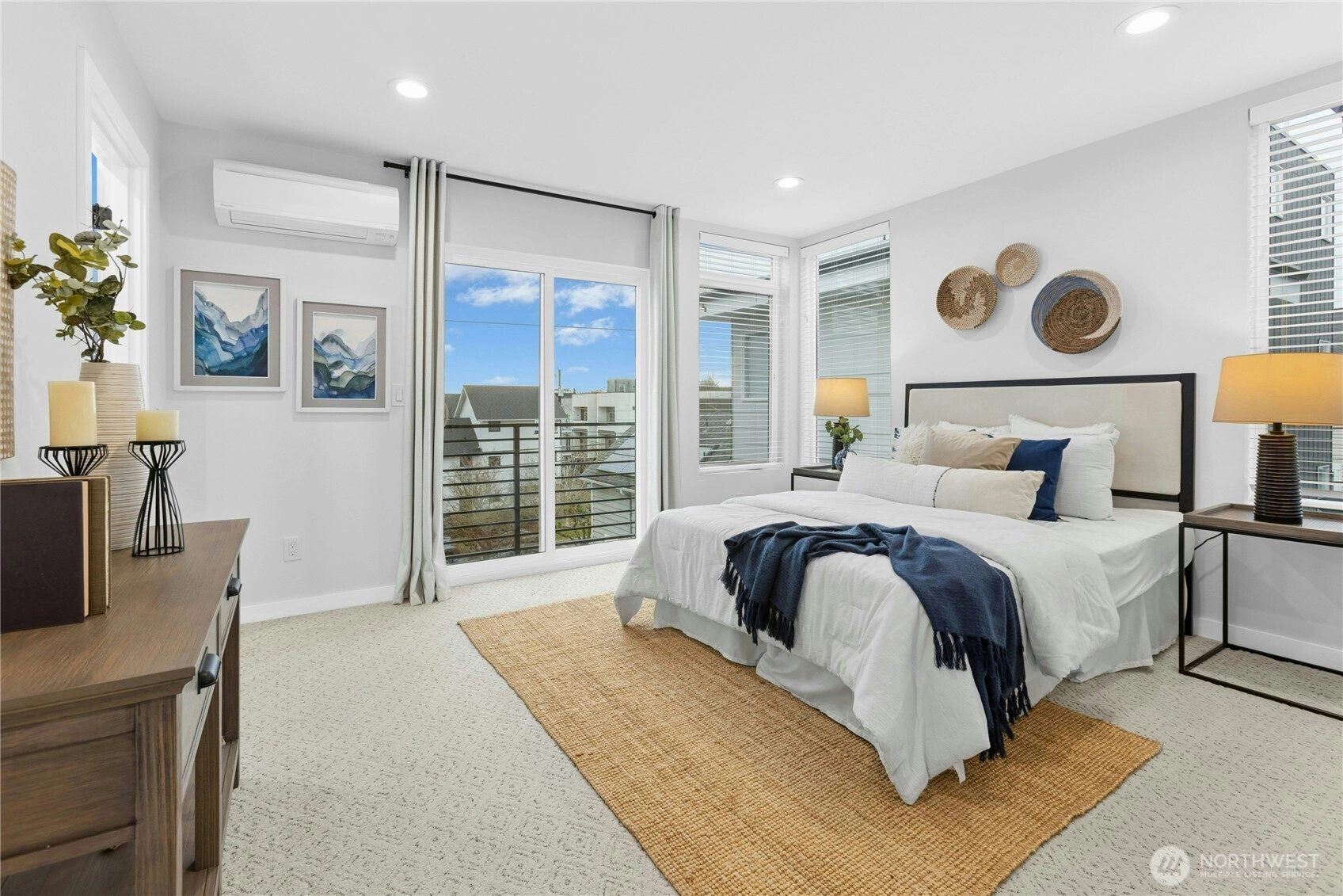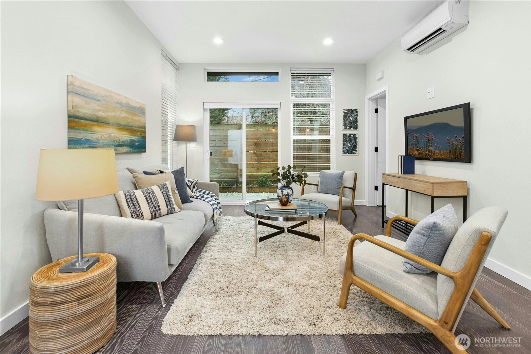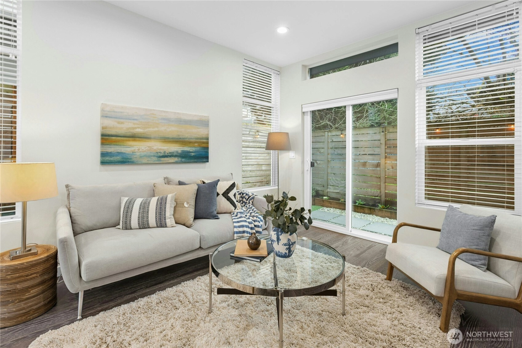 Enjoy modern living in the heart of Ballard! With only one shared wall and no HOA, this thoughtfully designed 4-bedroom, 2.5-bath home offers the perfect blend of privacy, smart functionality, and seamless indoor-outdoor living. The light-filled entry level features rich engineered hardwood floors and an open layout designed for connection. A flexible living and dining area flows into a stunning open kitchen with sleek white cabinetry, stainless steel appliances, a gas cooktop, a pantry with built-in storage for added convenience, and a powder room—all framed by large windows. Step through sliding doors to your private, low-maintenance patio with premium turf, ideal for pets or quiet morning coffee. The two upper levels host four spacious bedrooms, including a serene primary suite with a luxurious ¾ bath and fully finished walk-in closets. An additional full bath and a conveniently located laundry area complete the upper levels. For grand entertaining, head up to the expansive rooftop deck to enjoy the neighborhood atmosphere. Just outside your front door, an EV-ready parking space adds convenience. All this in a prime location with easy access to public transit—steps from world-class restaurants, shops, nightlife, parks, and the Sunday Farmers Market. Pre-inspected.