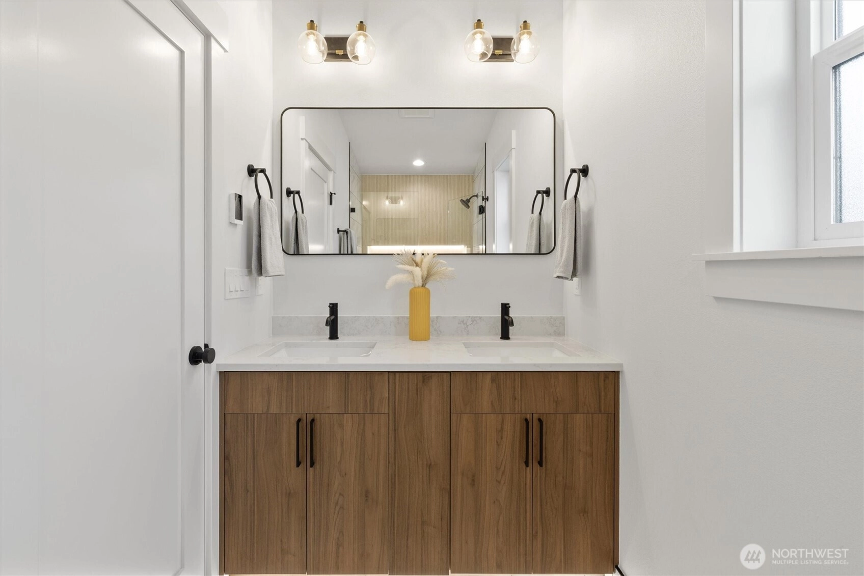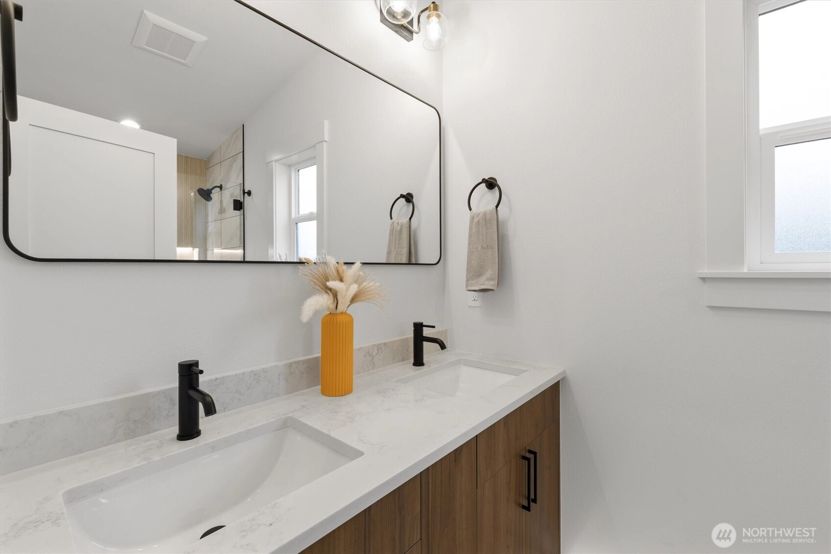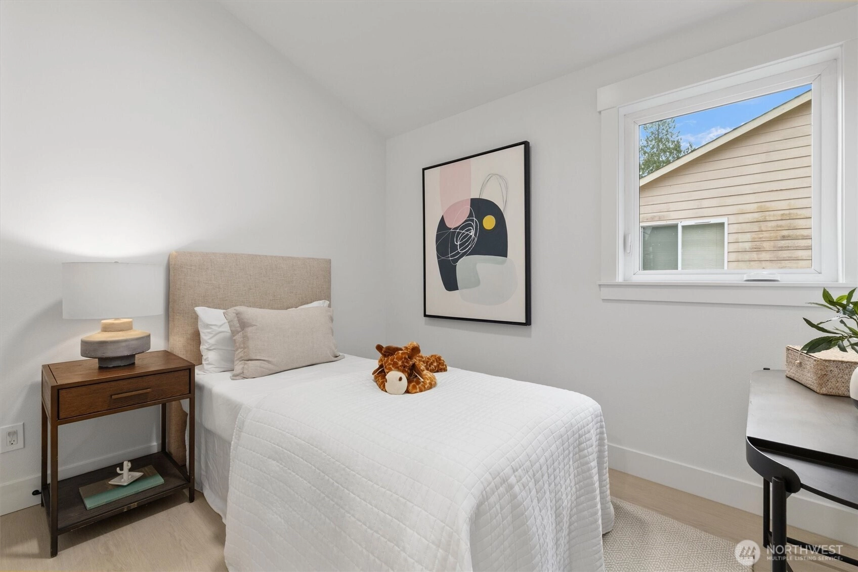 This is your chance to own a 3 bed, 2.5 bath new construction home with a 1-car garage located in a pocket of Olympic Hills known for block parties, Halloween celebrations, and genuine neighborly connection. Perched up on a quiet residential street, this house has everything to offer! Modern design with a Northwest vibe featuring whole house wide-plank LVP flooring, a well-appointed kitchen with walnut dovetail soft-close cabinetry, Samsung stainless steel appliances, and under-cabinet, toe-kick, and shower niche LED lighting that adds warmth and dimension to every room. The upper level of the home offers three bedrooms including the primary suite with a walk-in closet and a tastefully designed spa-like bathroom with heated tile floor and bidet for added comfort. Mini-split heating and cooling with inset head on the main floor, new hot water tank, a digital water meter, and fire suppression system provide efficiency and peace of mind. Outside, enjoy your private side patio and spacious backyard with plenty of room for pets to play. Walking distance to multiple parks, Safeway, pubs and dining. Easy access to I-5, Light Rail and mass transit. This is a rare opportunity to own a luxury home in a community-driven enclave of Olympic Hills. Don’t miss out!