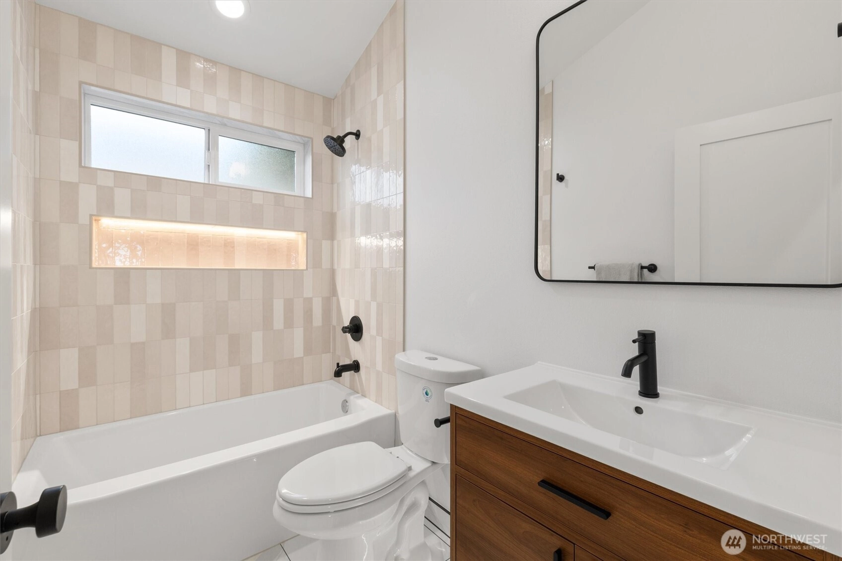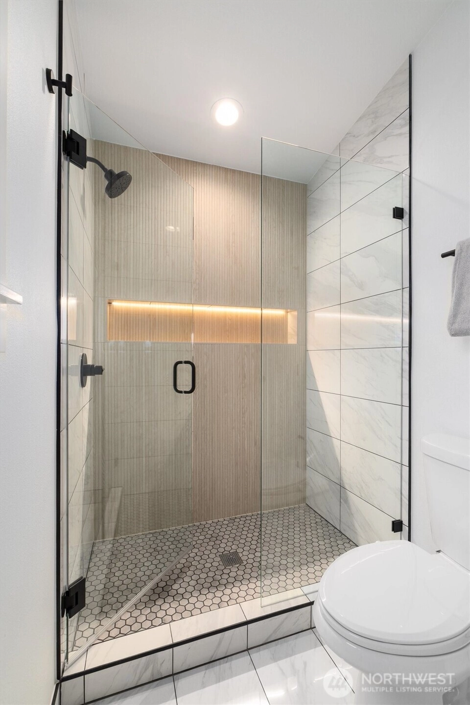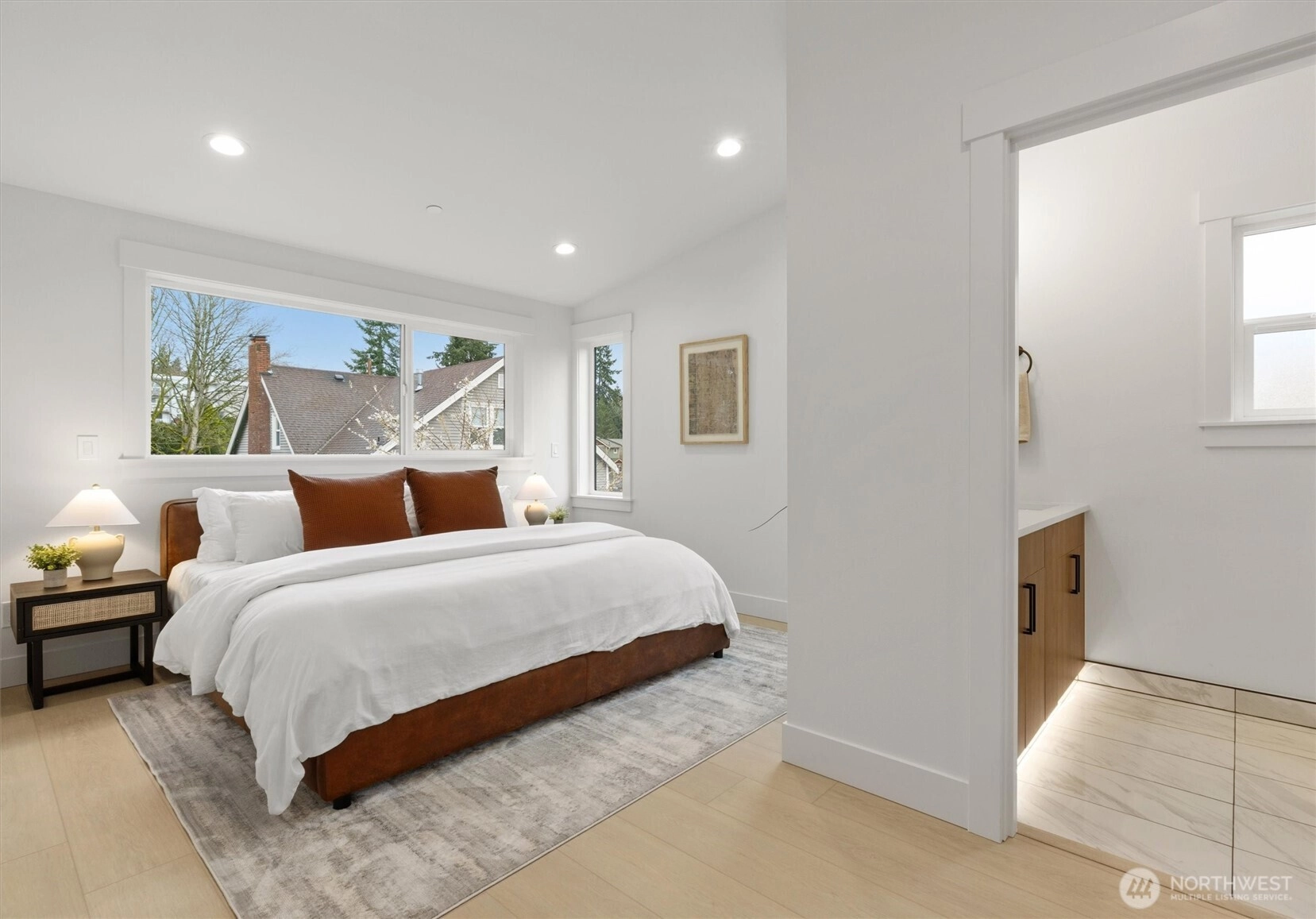 This is your chance to own a 3 bed, 2.5 bath new construction home with a 1-car garage located in a pocket of Olympic Hills known for block parties, Halloween celebrations, and genuine neighborly connection. Perched up on a quiet residential street, this house has everything to offer! Modern design with a Northwest vibe featuring whole house wide-plank LVP flooring, a well-appointed kitchen with walnut dovetail soft-close cabinetry, Samsung stainless steel appliances, and under-cabinet, toe-kick, and shower niche LED lighting that adds warmth and dimension to every room. The upper level of the home offers three bedrooms including the primary suite with a walk-in closet and a tastefully designed spa-like bathroom with heated tile floor and bidet for added comfort. Mini-split heating and cooling with inset head on the main floor, new hot water tank, a digital water meter, and fire suppression system provide efficiency and peace of mind. Outside, enjoy your private side patio and spacious backyard with plenty of room for pets to play. Walking distance to multiple parks, Safeway, pubs and dining. Easy access to I-5, Light Rail and mass transit. This is a rare opportunity to own a luxury home in a community-driven enclave of Olympic Hills. Don’t miss out!