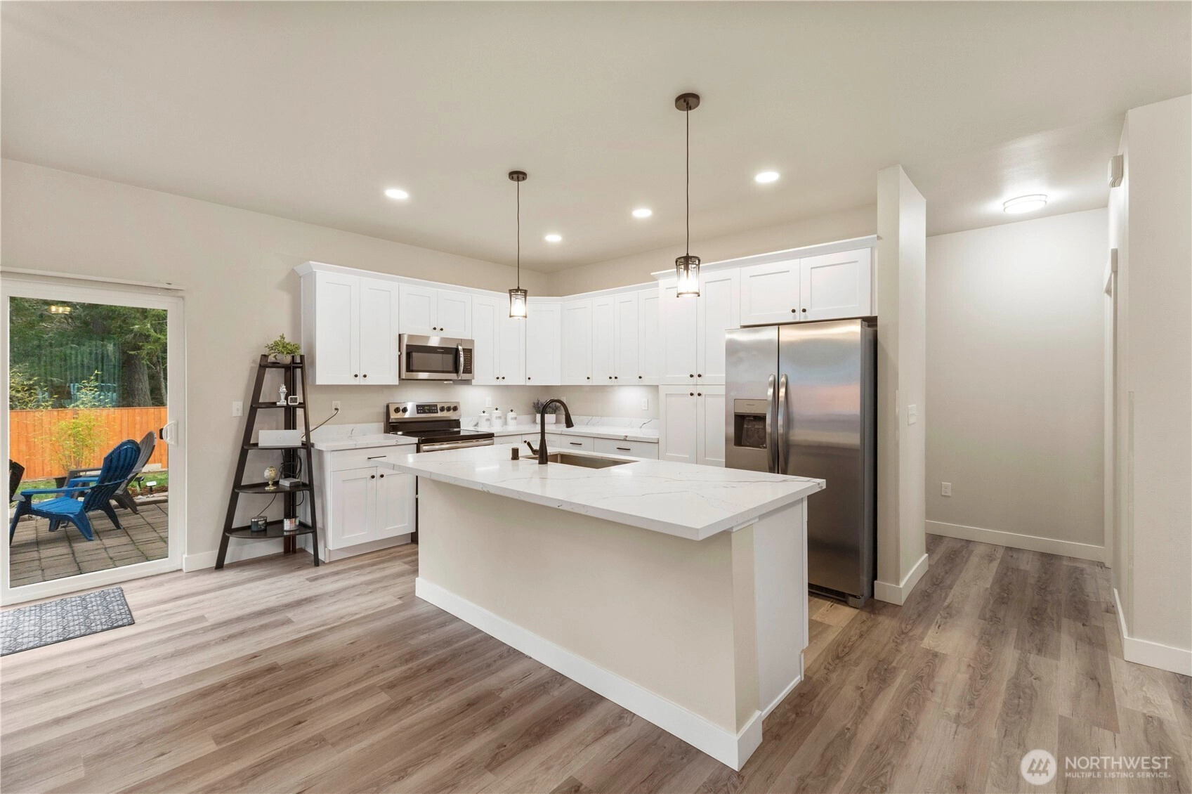 Nearly new custom home on Anderson Island! Built just two years ago and located in the heart of the Riviera Community Club, this 1,210 sq ft home offers 2 bedrooms and 2 bathrooms with a well-designed layout. The kitchen features shaker cabinets, quartz countertops, stainless steel appliances, and a large island with recessed lighting. Enjoy vinyl plank flooring, high ceilings, modern finishes, and a stylish fireplace in the main living area. Energy-efficient split system heat pumps in every room provide year-round comfort. Conveniently located near Riviera Lakeshore Restaurant and the golf course.
