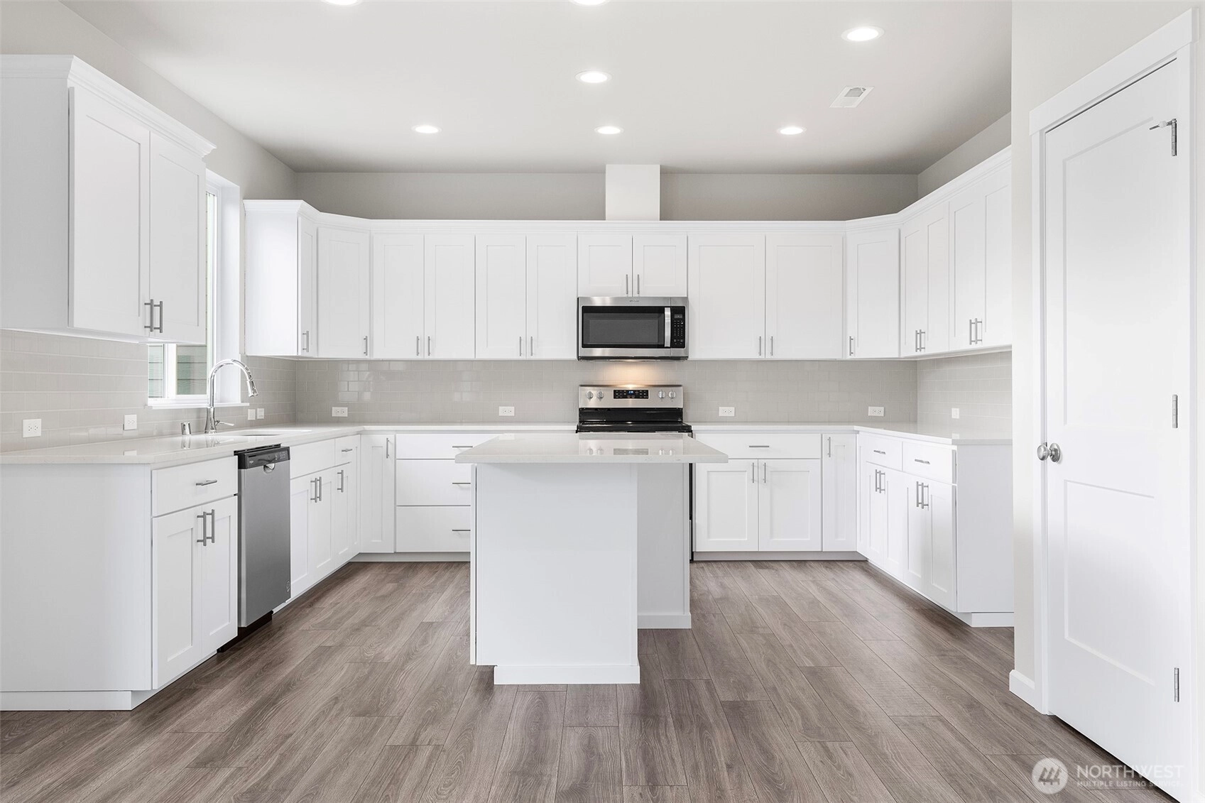 $18K Buyer Bonus! Use toward a rate buy-down or closing costs with Trusted Lender. Enjoy living in Mountain Meadows community that provides small town living in Yelm. Popular Sterling Plan features flexible main level guest suite/office with attached 3/4 bath & walk-in closet. Generous great room with gas fireplace. Designer kitchen with white shaker cabinets, quartz countertops, subway tile backsplash, stainless steel appliances & walk-in pantry. Additional 1/2 bath on the main level. Upstairs, relax in the spacious primary suite with walk-in closet & spa-style bath. Two additional bedrooms plus bonus (5th bedroom). Outdoor living is a dream with professionally landscaped front and backyards. Heat pump for year-round comfort. Local award winning builder, SoundBuilt Homes, at Mountain Meadows is close to schools shopping and easy access to hwys.