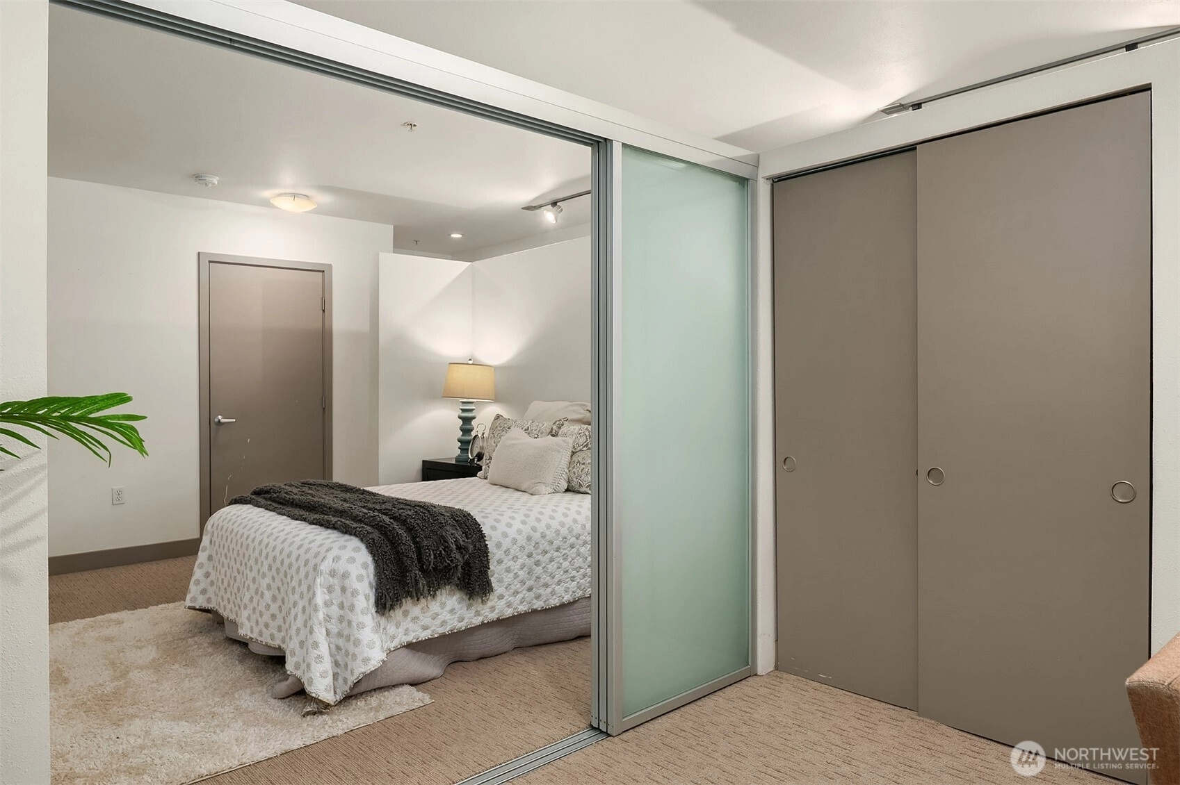 Sunny, spacious, and elegant top-floor loft in the coveted Carbon 56 building, in the heart of Seattle’s vibrant Denny Triangle. Thoughtfully designed to feel open and airy while still offering defined spaces for comfortable everyday living. Soaring 13-foot ceilings and dramatic west-facing floor-to-ceiling windows create a wall of glass that fills the home with natural light and makes this open one-bedroom residence live large. One of the larger homes in the building, the well-designed layout features a large kitchen that flows naturally into the dining and living areas—an inviting setting to relax, have fun, and entertain. The generous primary bedroom includes excellent closet space and an en-suite bath, while the separate den provides an ideal home office or flexible workspace. A convenient powder room adds functionality rarely found in homes of this size. Secure building with secure parking, spacious gym, strong HOA, and no rental cap. HOA dues include heat, hot water, and water/sewer/garbage. Walk Score 99 with easy access to transit, Whole Foods, Amazon campuses, shopping, arts, culture, and the vibrant energy of Capitol Hill, downtown, and Belltown. The good life starts here!