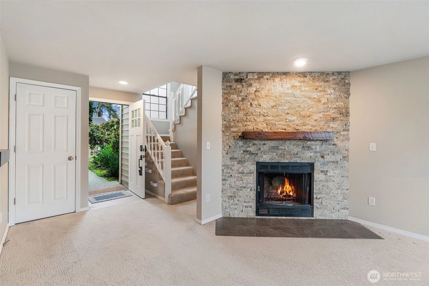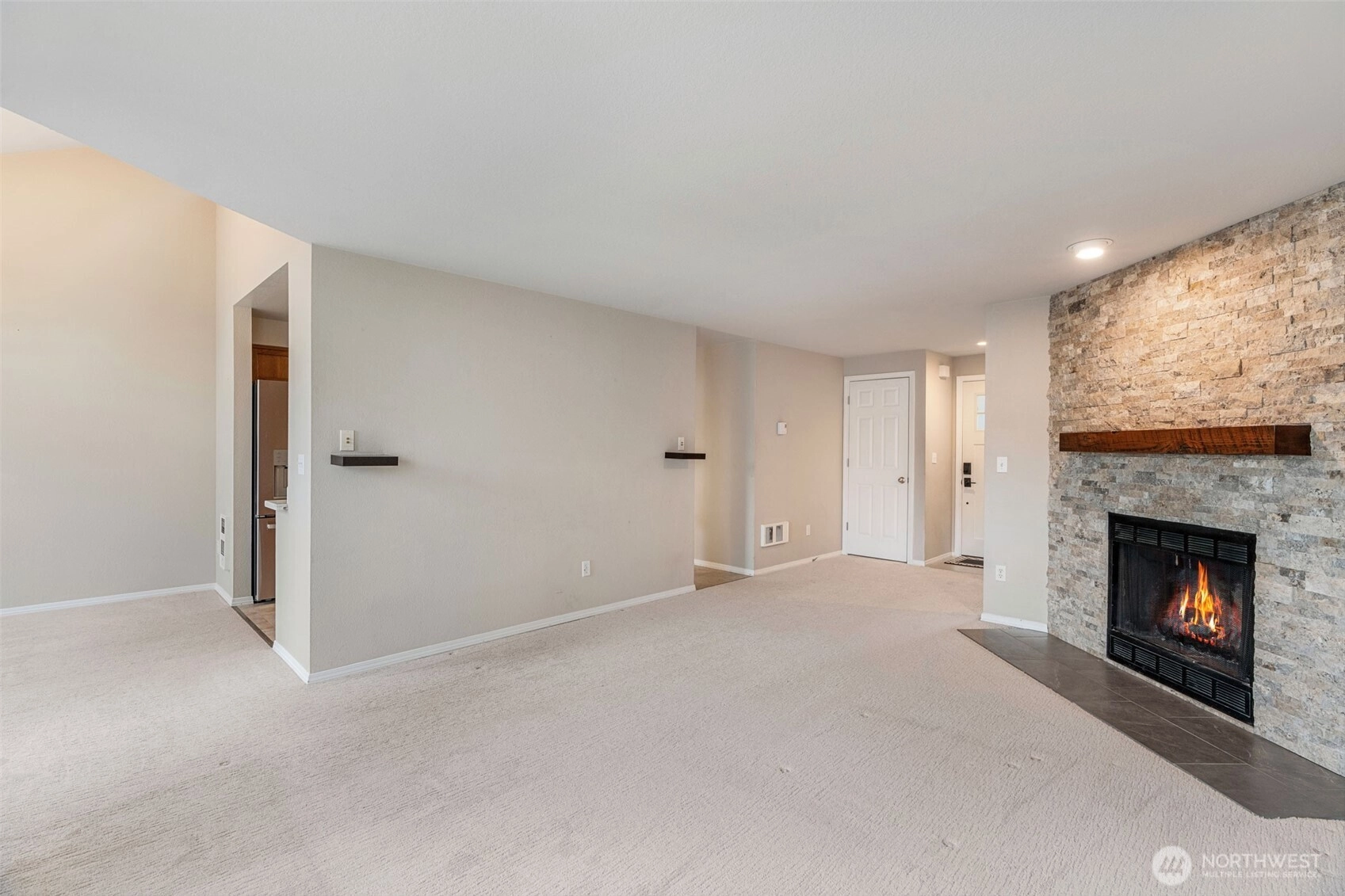 MOTIVATED SELLER offering 10K towards closing cost! Conveniently located in SeaTac, welcome to this quiet and well-maintained 24-unit community offering comfort, privacy, and thoughtful updates throughout. Step inside to a bright living room featuring a beautiful stone wood-burning fireplace and durable LifeProof carpet. The refreshed kitchen showcases sleek quartz countertops, stainless steel appliances, a large sink, and seamless flow into the dining area overlooking the private backyard. A convenient half bath completes the main level. Upstairs you’ll find two spacious bedrooms, including a primary suite with vaulted ceilings and its own private deck. Inside the primary suite, there is a finished attic access for additional storage or a little craft/reading nook. Both the full bath and ¾ bath have been recently remodeled. A versatile loft on the second floor provides the perfect space for a third bedroom, office, or flex area of choice. The backyard has been improved with new drainage and gravel landscaping, creating a cozy outdoor setting with a fire pit and plenty of potential to customize. This home also features an attached garage plus an additional detached garage located directly across from the home, ideal for a second vehicle, storage, workshop, or home gym. Don't miss the updated electrical panel! Easy access to I-5 and I-405 makes commuting, shopping, dining, and travel simple and convenient.