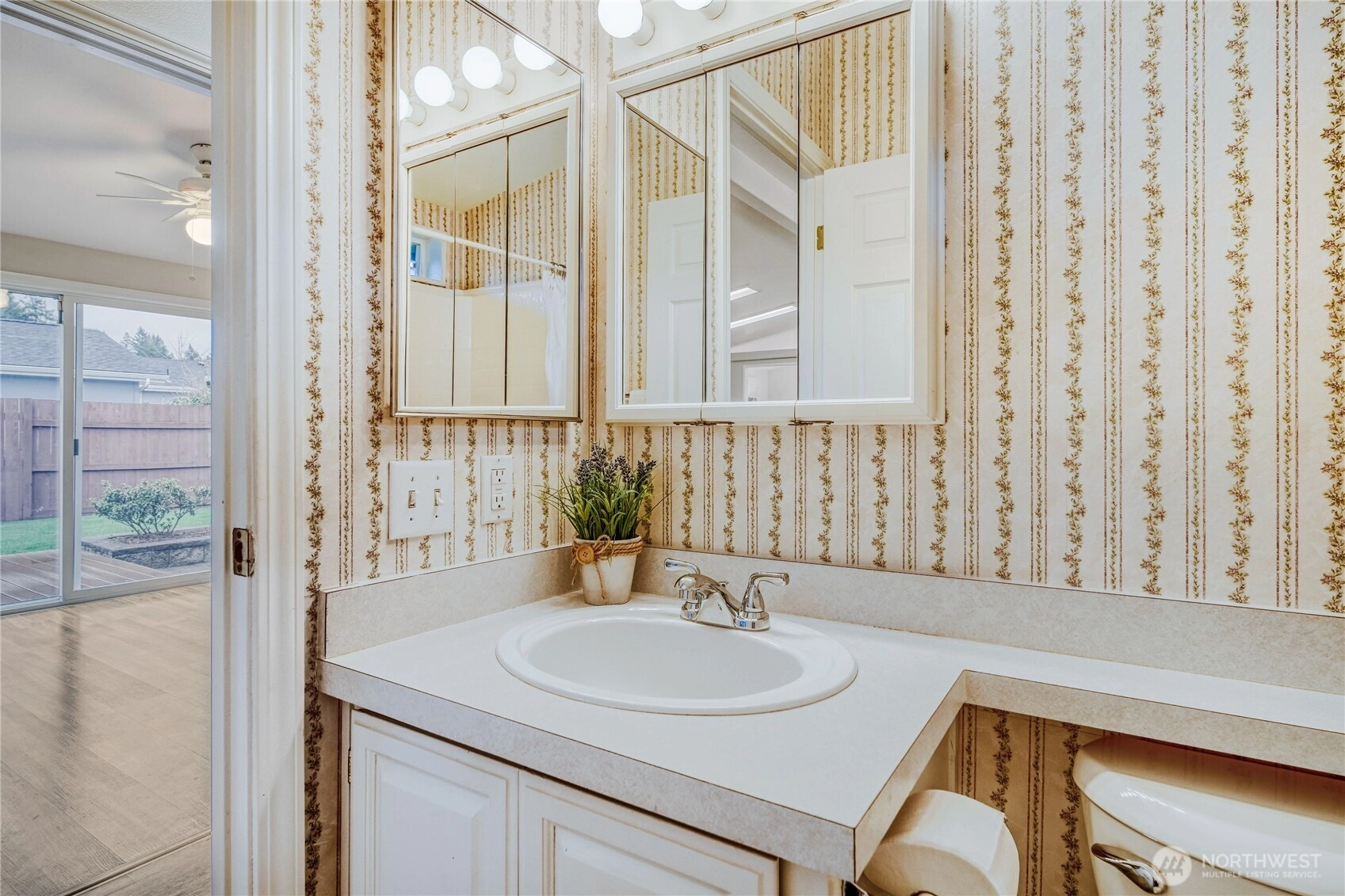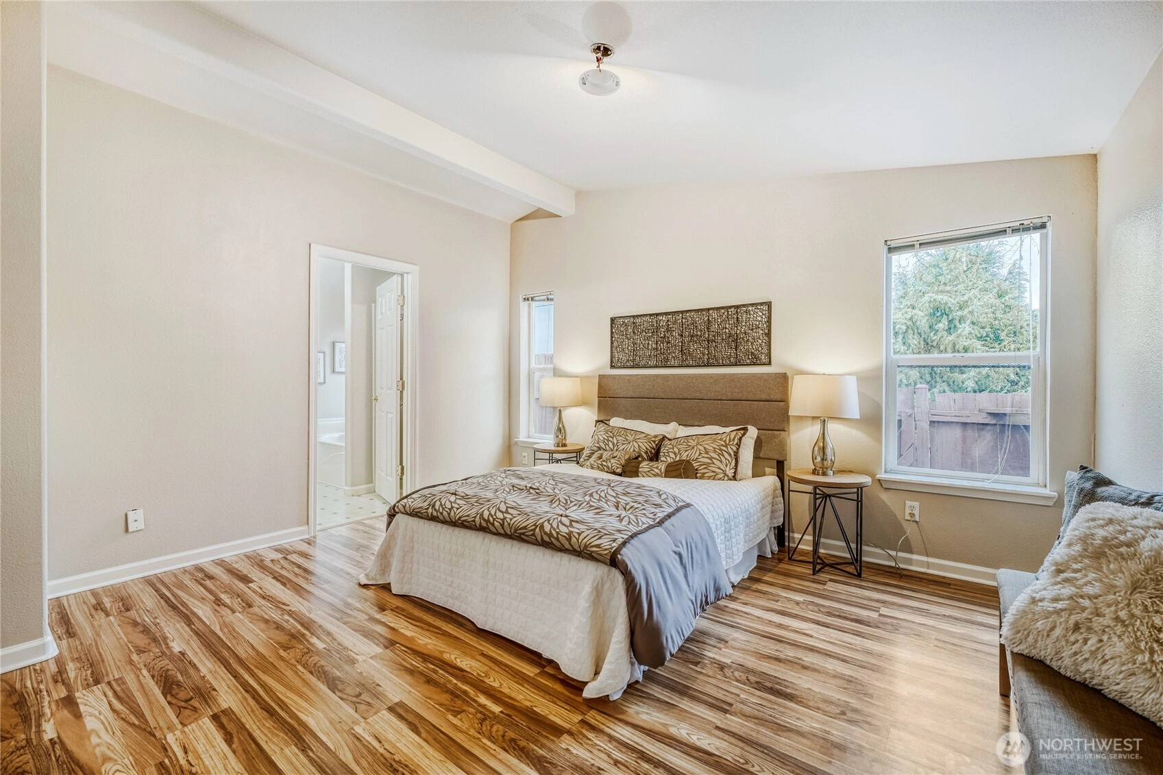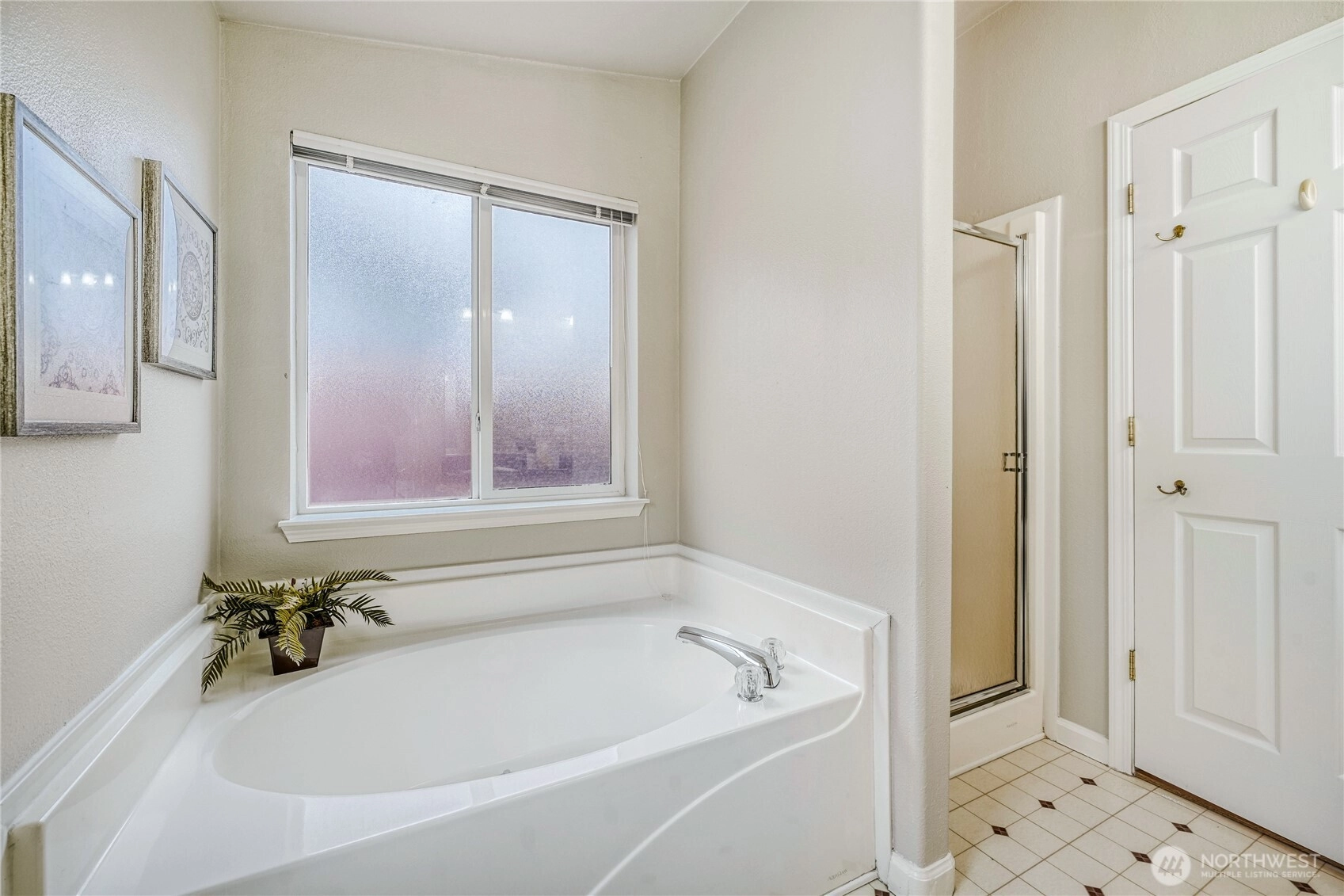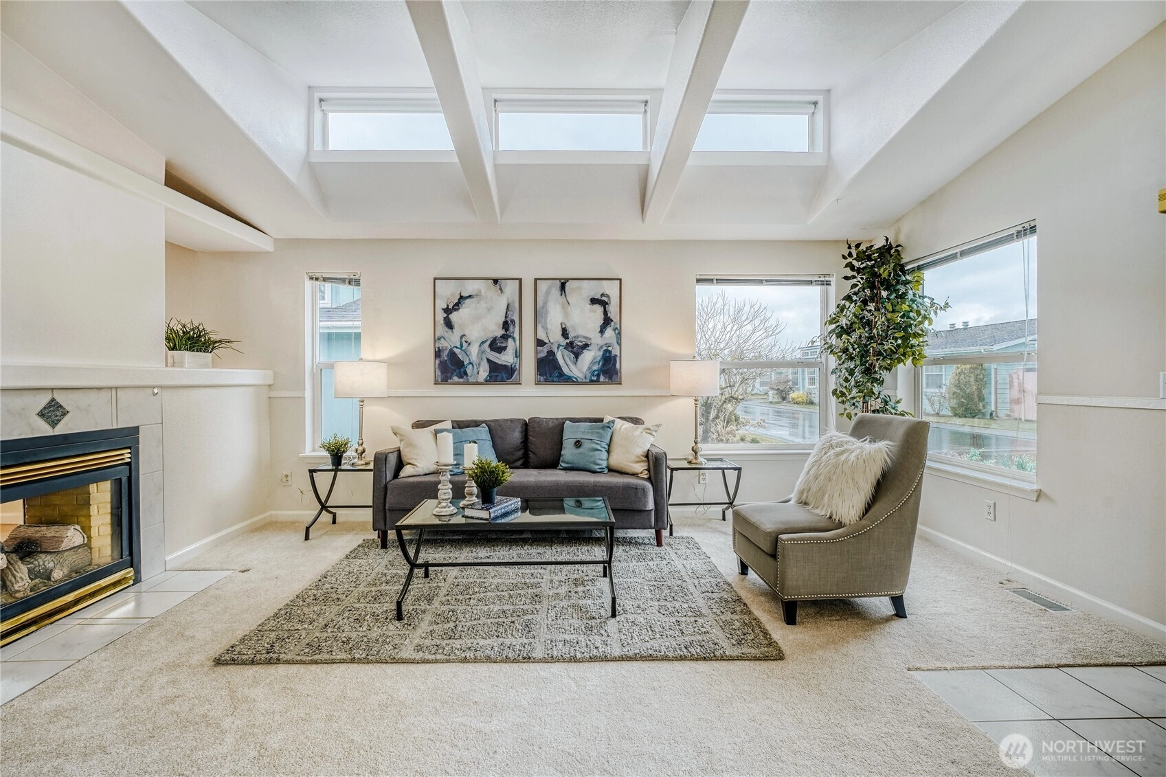 Welcome to the sought after Lake Wilderness Villa, a premier 55+ gated community! This light-filled home features vaulted ceilings and skylights that bring in abundant natural light. Enjoy a spacious formal dining room and a large kitchen with extensive counter space and a built-in desk. The generous primary suite offers a walk-in closet and 5-piece bath. A two-sided gas fireplace adds warmth and charm. Additional highlights include a separate laundry room with extra storage, attached 2-car garage, updated paint and carpet, gas furnace and A/C. Relax in the private fenced backyard with garden space, composite deck and low-maintenance turf. Residents enjoy a clubhouse, game room, sport court, library, BBQ area, putting green, guest parking and RV parking. Dining, shopping and trails just minutes away.