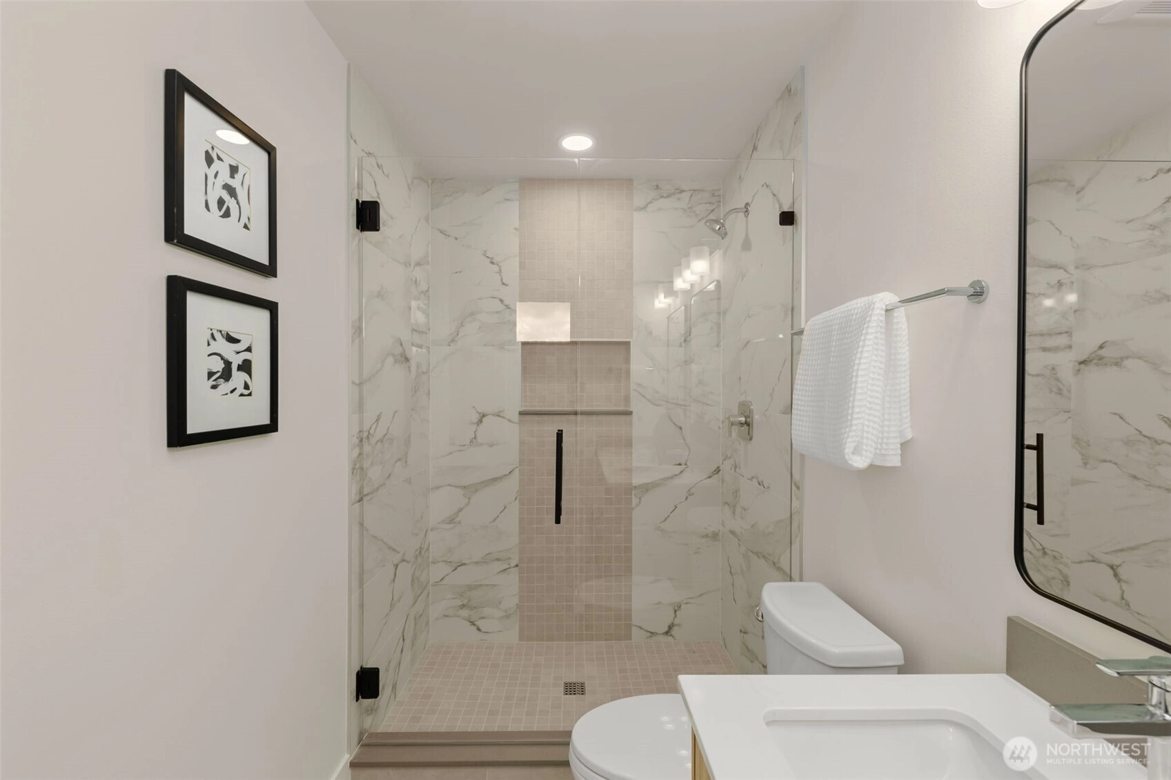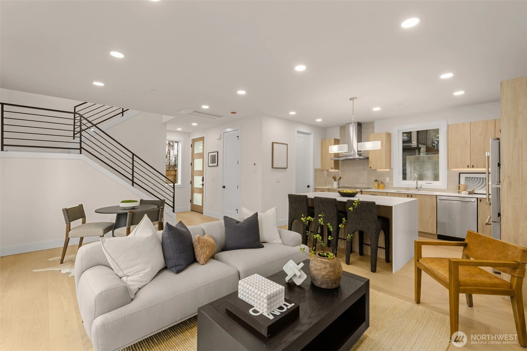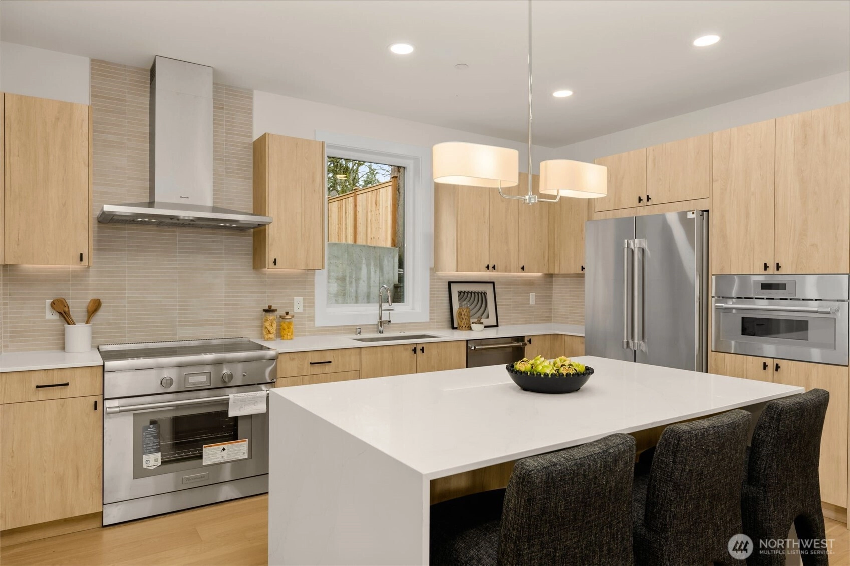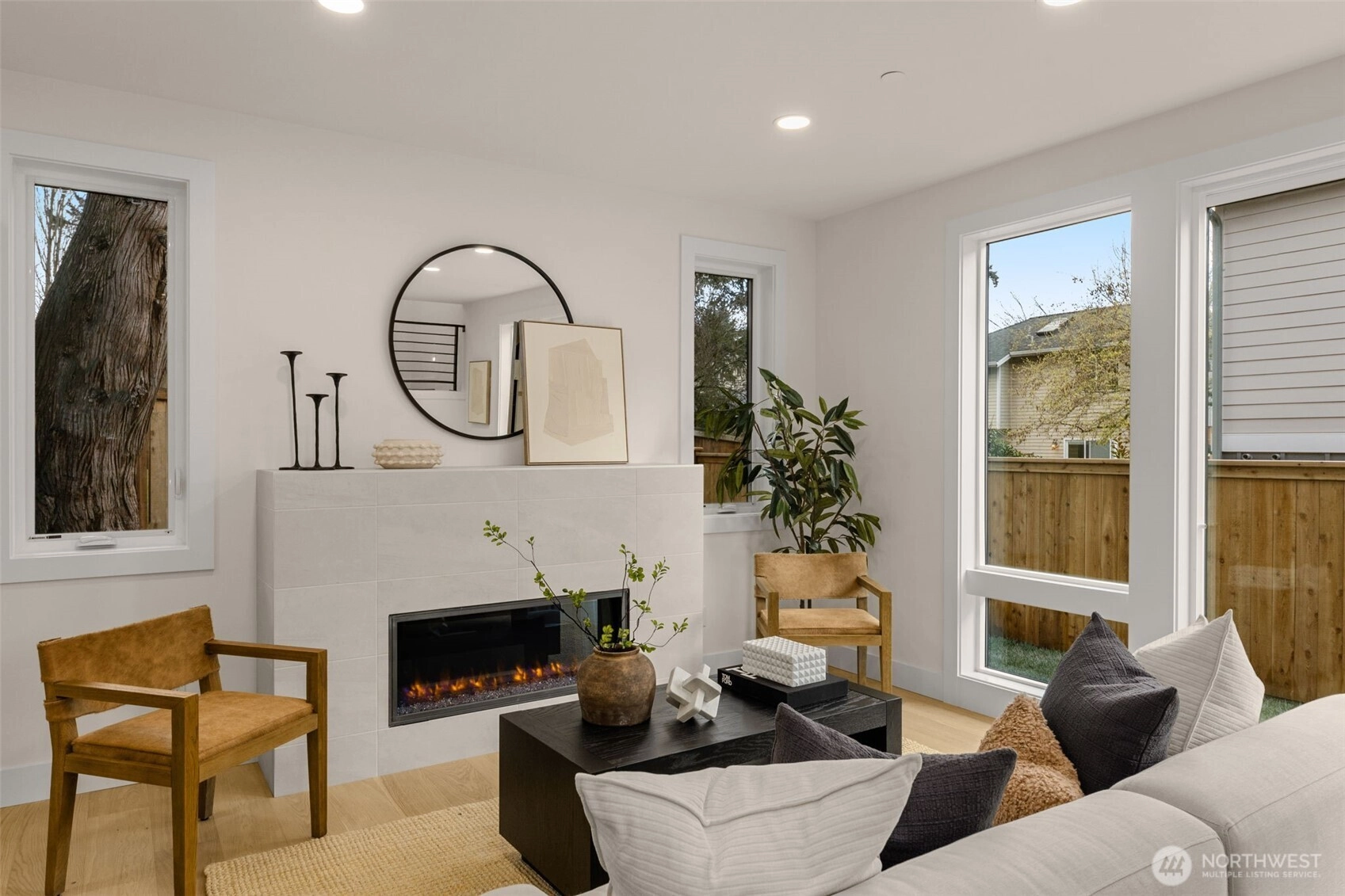 Introducing Knob Creek, an exceptional new construction home by Revolution Custom Builders, thoughtfully designed with timeless style and modern comfort in one of Kirkland’s most convenient locations. This beautifully crafted residence showcases high-quality finishes, intentional design, & a functional floor plan ideal for today’s lifestyle.The main level features a light-filled great room anchored by a statement fireplace, seamlessly flowing into the chef-inspired kitchen with a spacious island, premium appliances, & generous workspace; perfect for entertaining or everyday living. Large windows and sliding doors invite natural light and connect the interior living spaces to a private outdoor patio, creating an effortless indoor-outdoor experience. A welcoming covered front porch, elegant entry, & main-level powder room complete the thoughtfully designed first floor.Upstairs, the primary suite offers a serene retreat with a spacious walk-in closet and a beautifully appointed ensuite bath. 2 additional bedrooms, full bath, & upstairs laundry provide flexibility & functionality. Enjoy easy access to some of Kirkland’s most sought-after amenities. 2 designated EV-ready parking spots. Just minutes away are Juanita Village, Totem Lake Village, & DT Kirkland, offering dining, shopping, and entertainment. Outdoor recreation is abundant with nearby Juanita Beach Park, St. Edward State Park, & waterfront trails. Convenient access to I-405 makes commuting to Bellevue & Seattle.