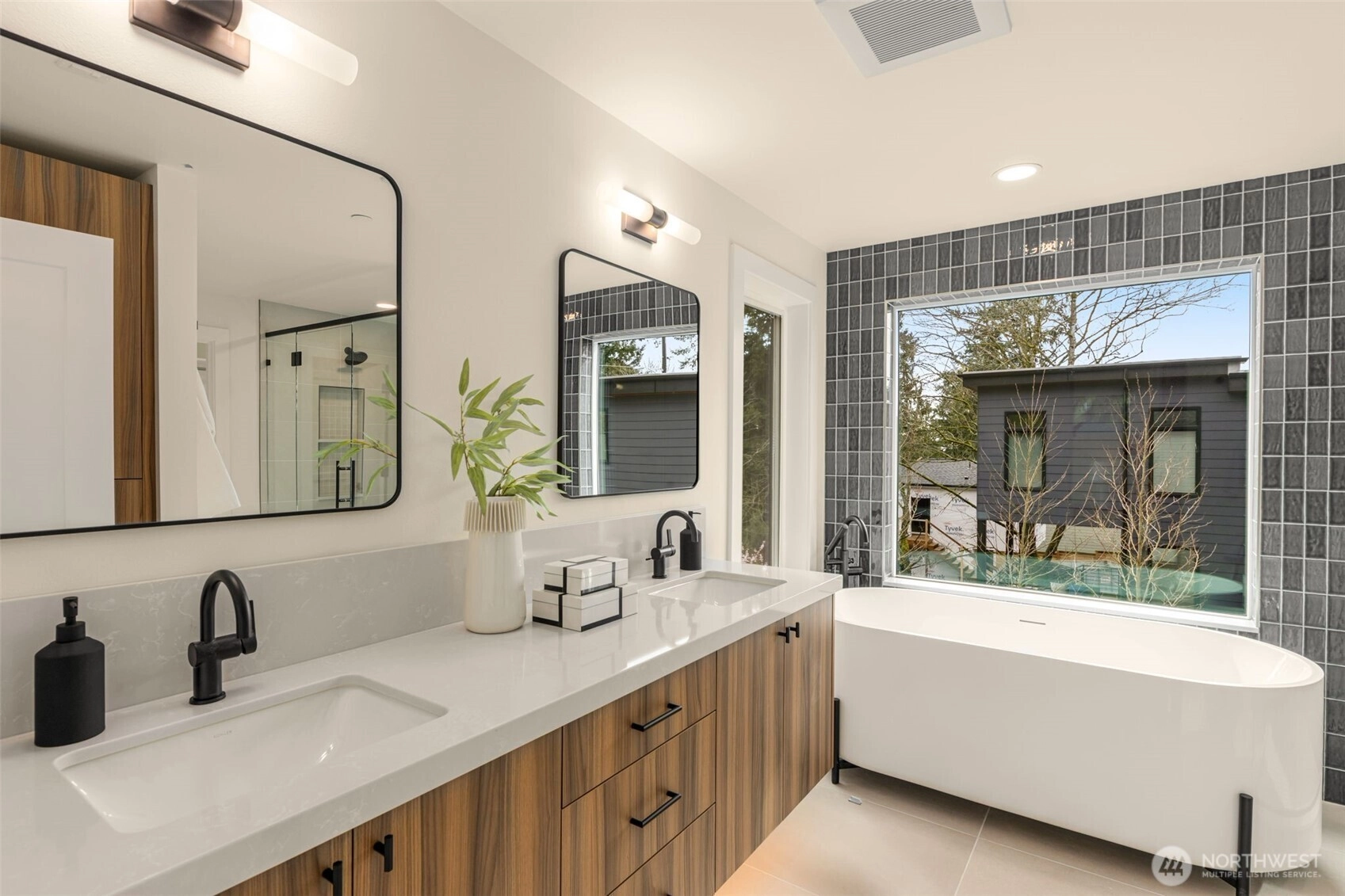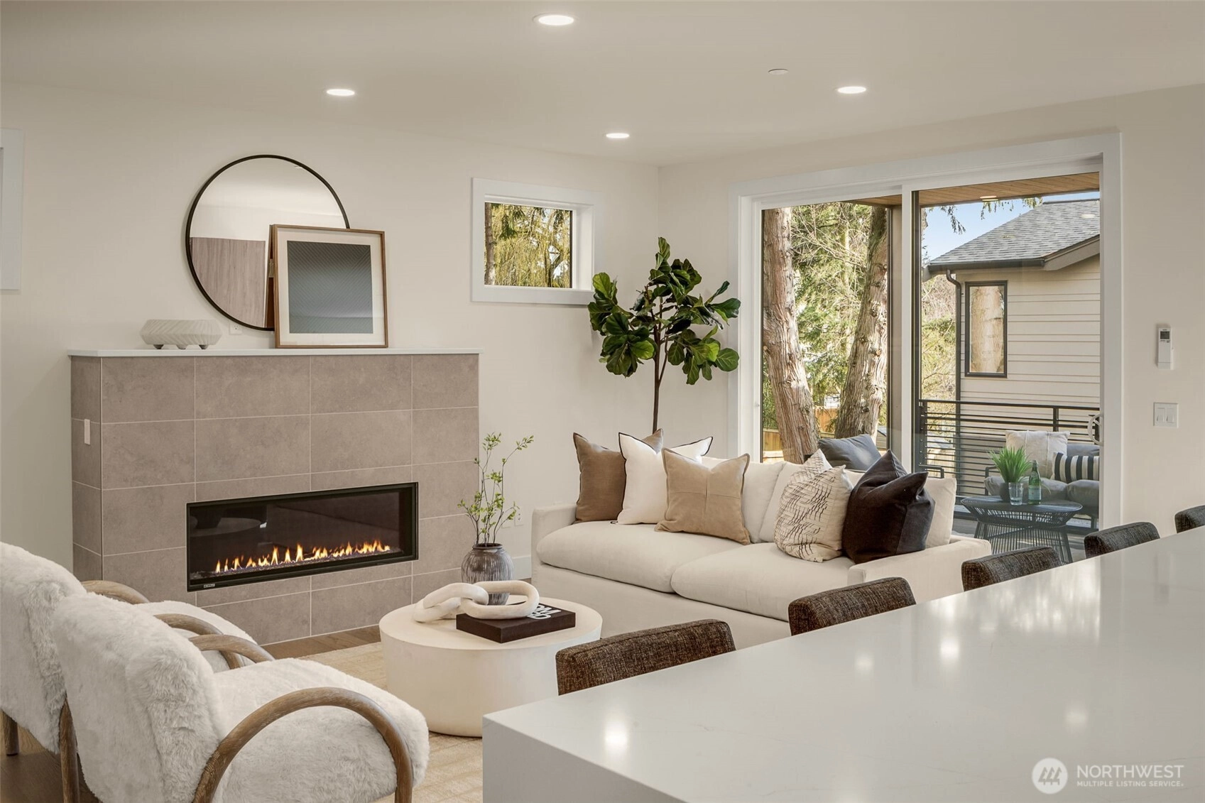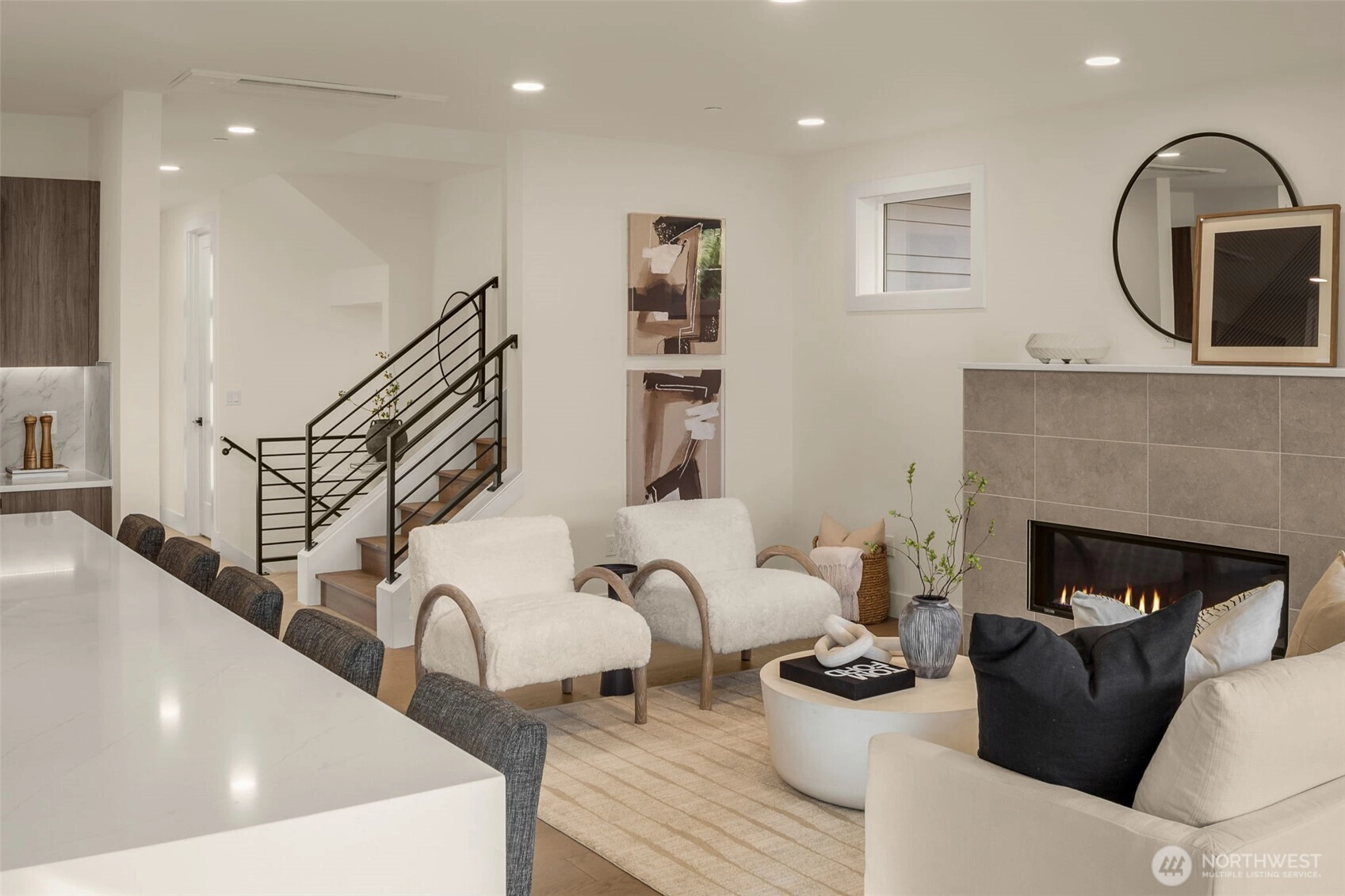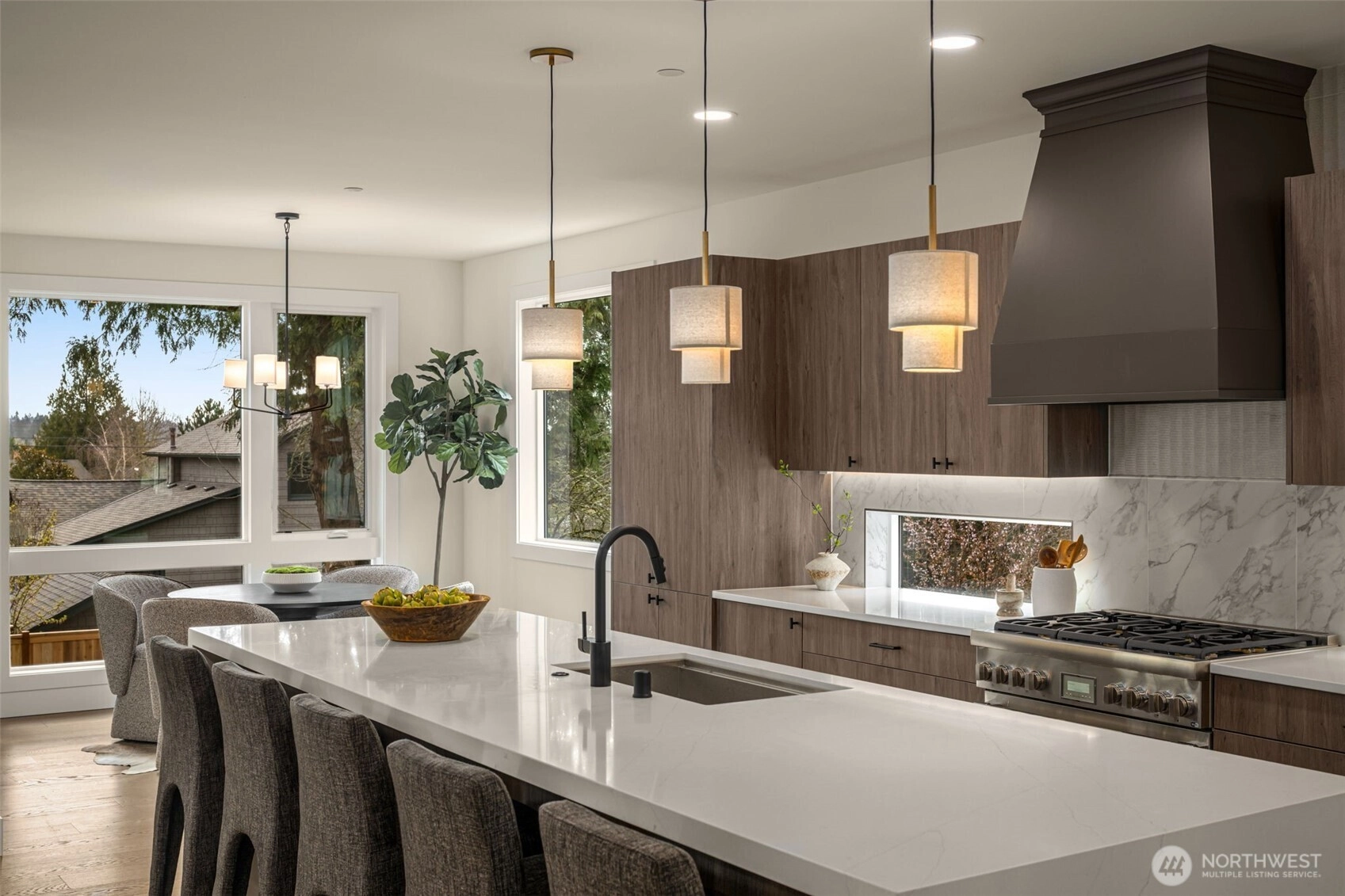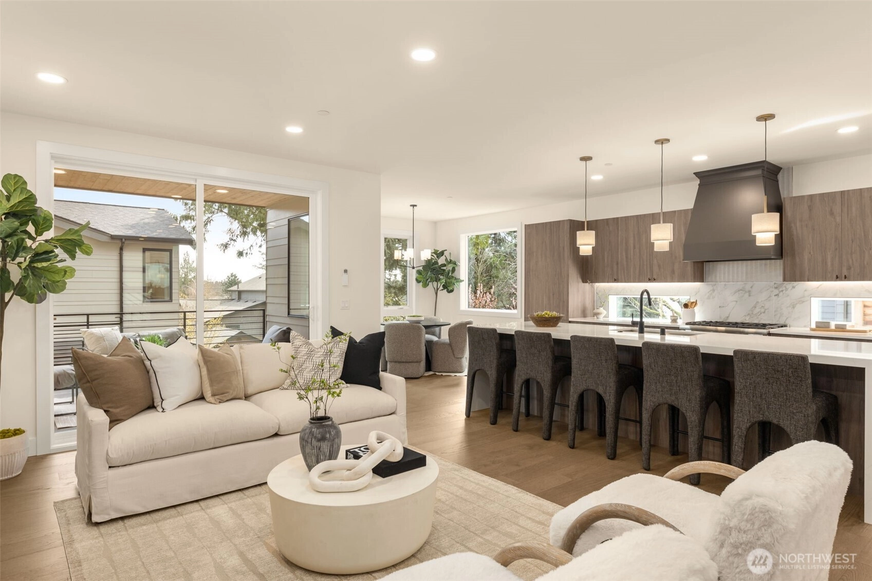 Welcome to Knob Creek, a beautifully crafted new construction home by Revolution Custom Builders offering modern design, quality finishes, and a functional layout in a prime Kirkland location.The main level features an open-concept floor plan with a light filled great room and fireplace, seamlessly connecting to the chef inspired kitchen with a large island, premium appliances, and walk-in pantry. The dining area opens to a covered deck, perfect for indoor-outdoor entertaining. A main-level bedroom and bath provide flexibility for guests or a home office.Upstairs, the primary suite offers a relaxing retreat with a walk-in closet and spa-like ensuite bath. Two additional bedrooms, a full bathroom, and convenient upstairs laundry complete the upper level.The lower level includes a bonus room, additional bedroom, and full bath, ideal for guests, recreation, or multi-generational living, along with access to the 2-car attached garage with an EV ready outlet, and 1 designated EV wired parking space.Just minutes from Juanita Village, Totem Lake Village, Downtown Kirkland, Juanita Beach Park, St. Edward State Park, and Lake Washington waterfront trails, with easy access to I-405 for commuting to Bellevue, Redmond, and Seattle.