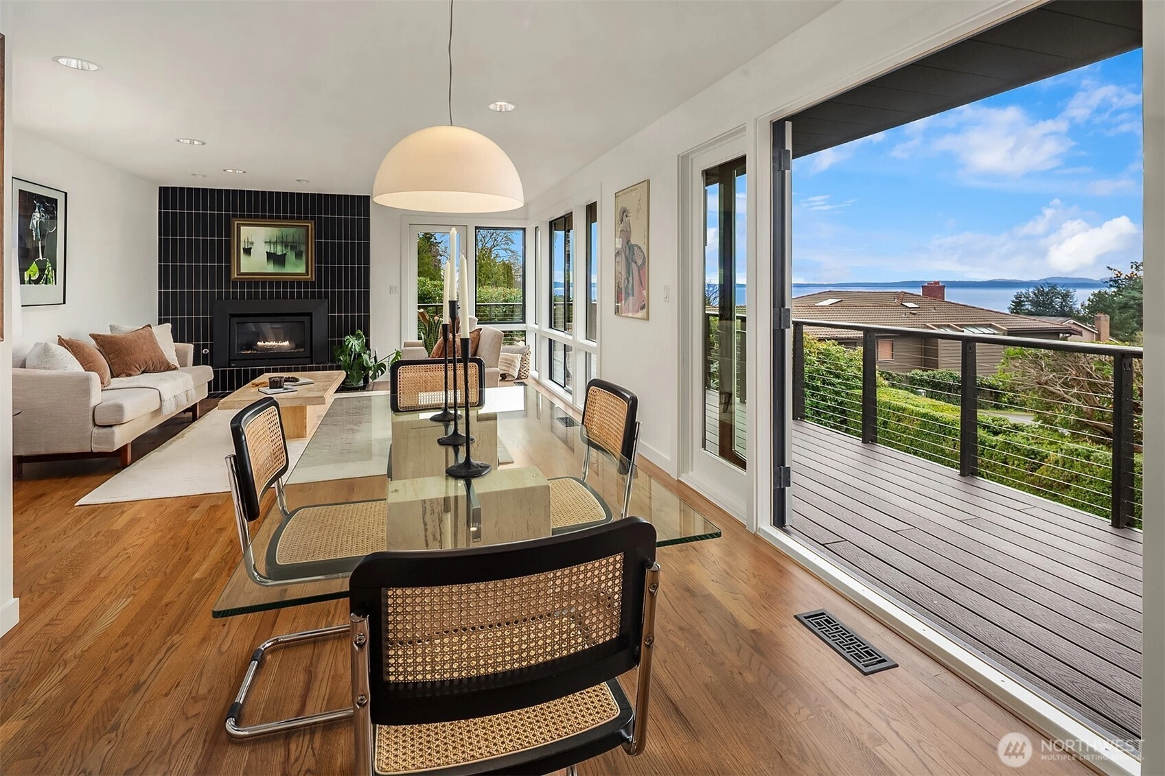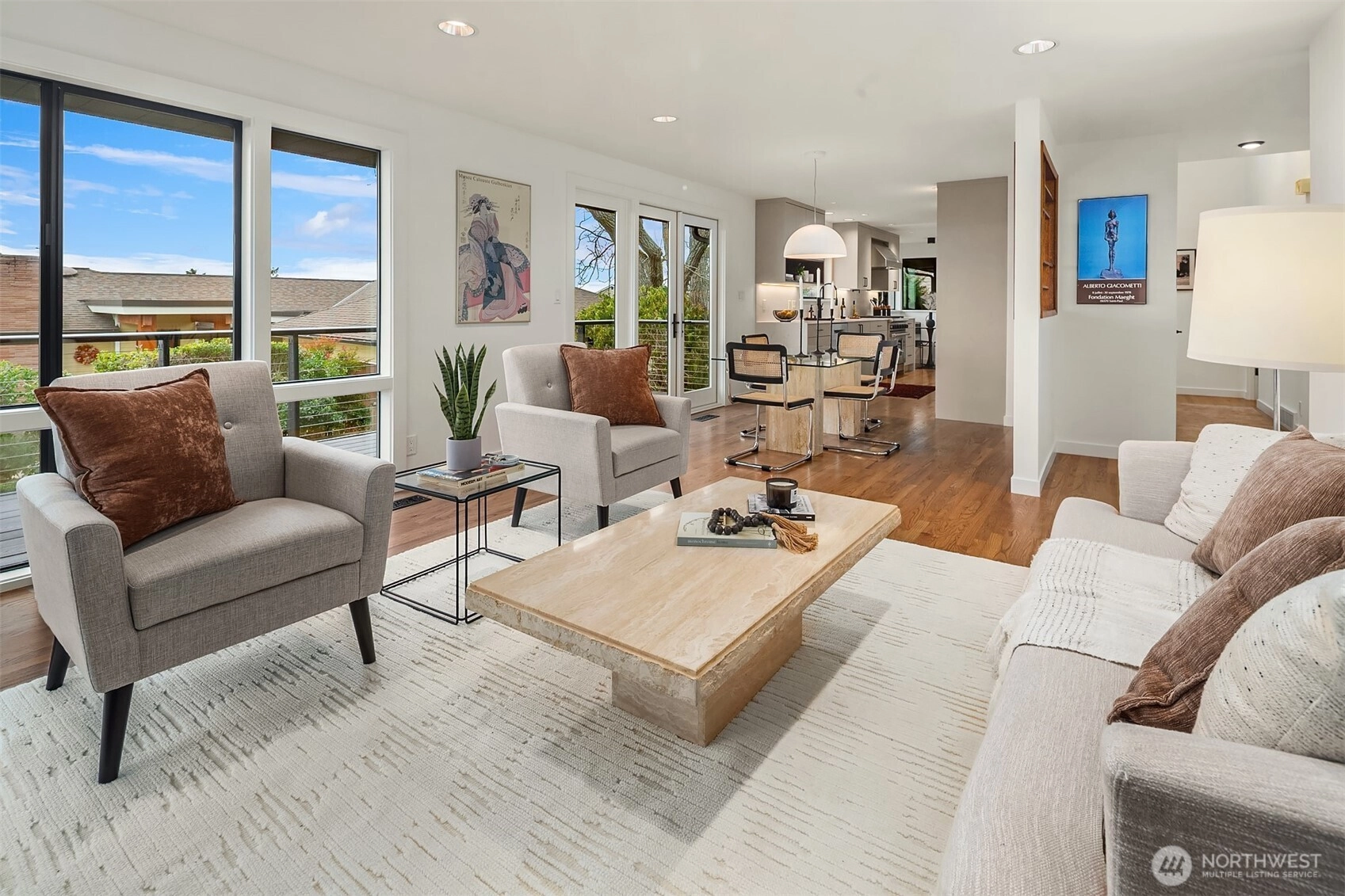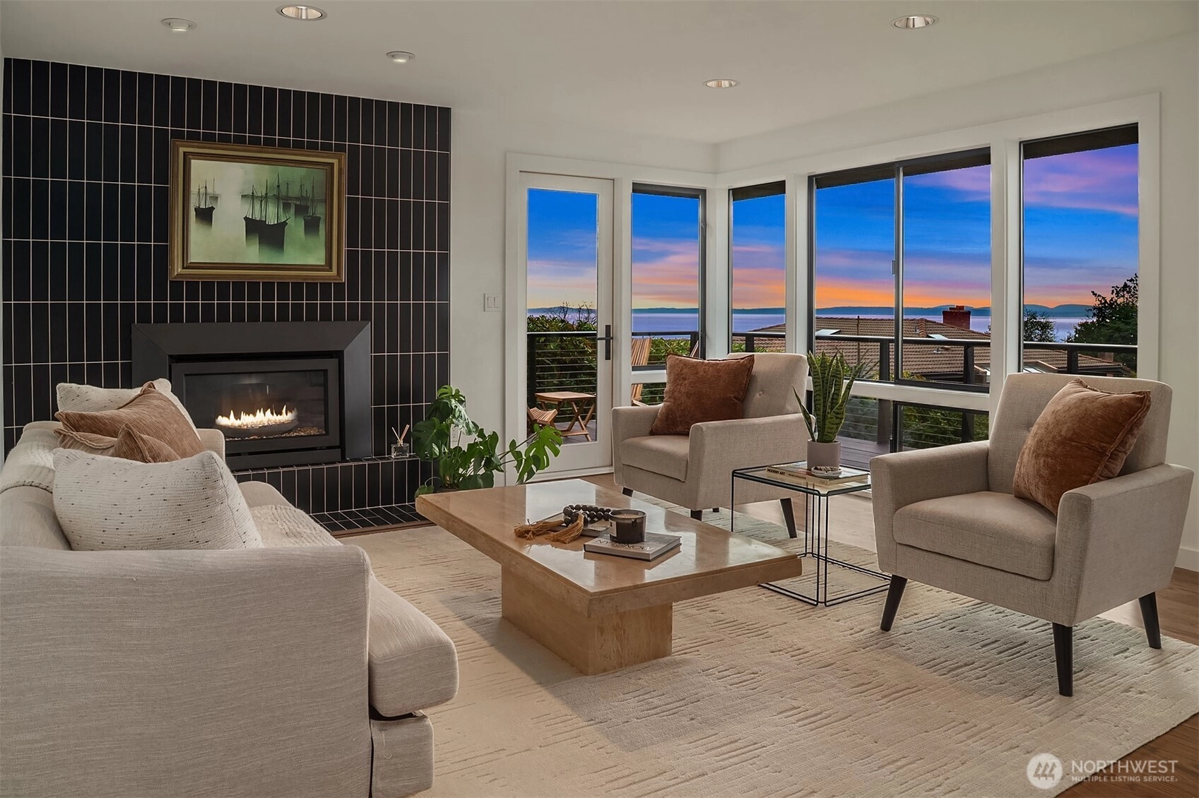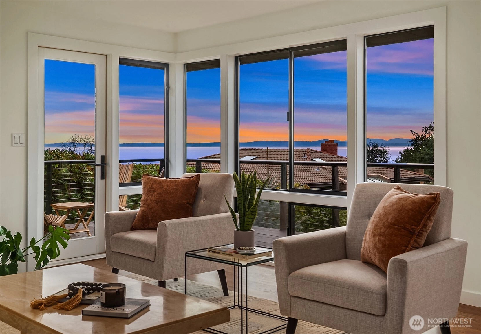 Striking mid-century on one of Richmond Beach’s most coveted streets, this 4-bed fully-remodeled view home is perched to capture sweeping Sound, Olympic & sunset views. Effortless indoor-outdoor flow w/ wraparound view deck off the great room. Chef’s kitchen w/ views & gourmet appliances: Wolf 6-burner gas range, pot filler, & hood, Subzero, sleek cabinetry & breakfast nook. Hardwoods throughout. Main floor Primary Suite w/ huge WIC & built-ins. Luxe 3/4 bath features dual sinks. Vintage Italian terrazzo. Lower-level rec-room w/ built-in bar & wine cooler, great for entertaining. & 2nd main floor bed w/ ¾ ensuite bath. 2-car heated garage w/ polished floors could double as gym + carport. EV ready. Privately framed by lush landscaping & fully fenced backyard w/ all new turf; no maintenace. Moments to Saltwater Park & Downtown Edmonds make this an ideal location.