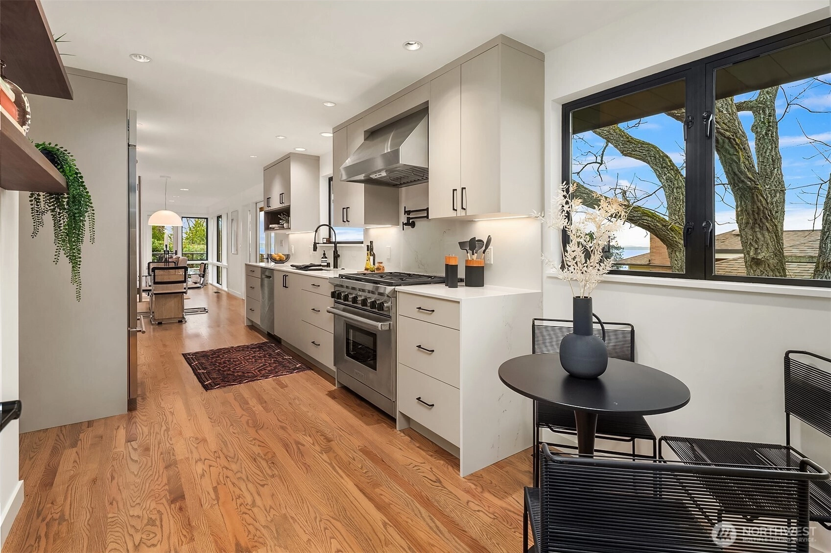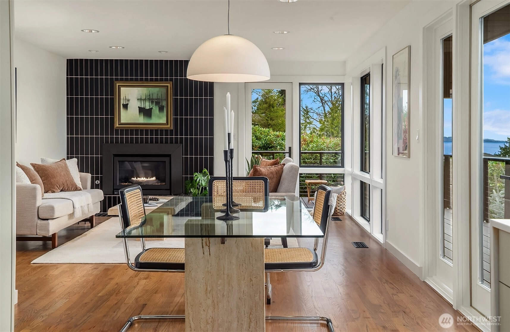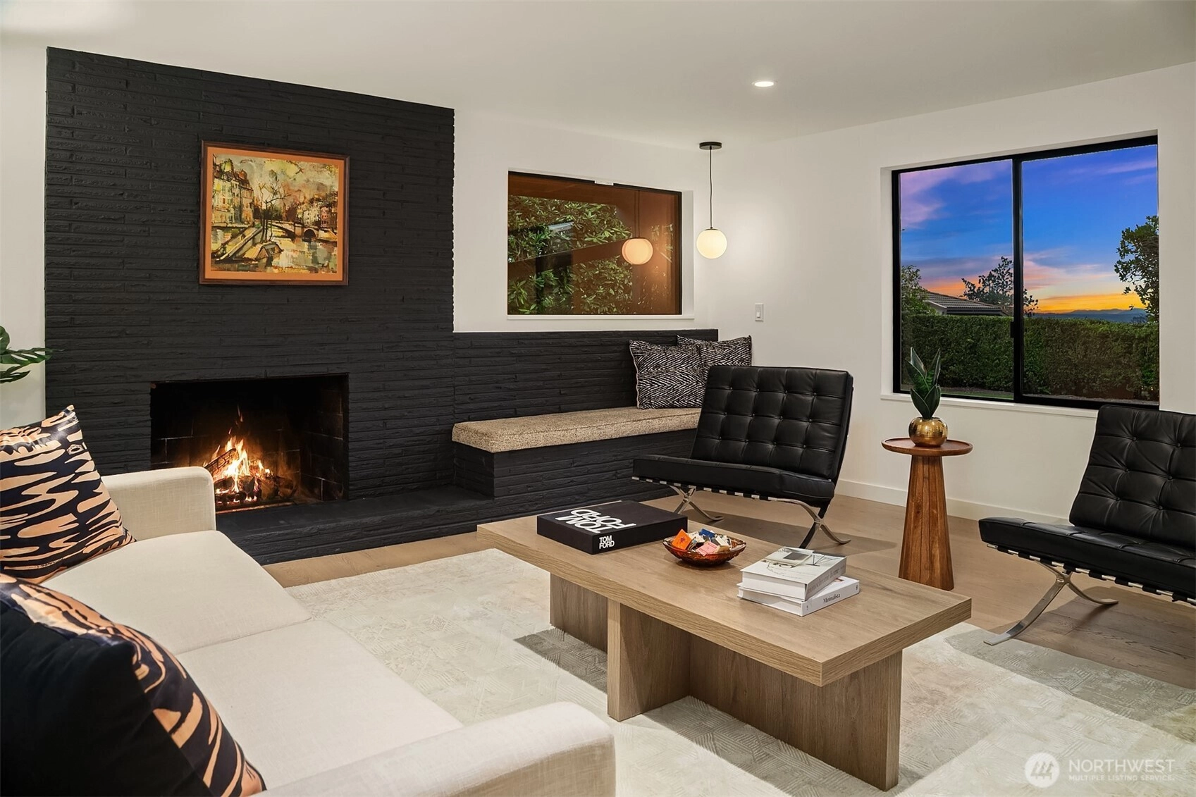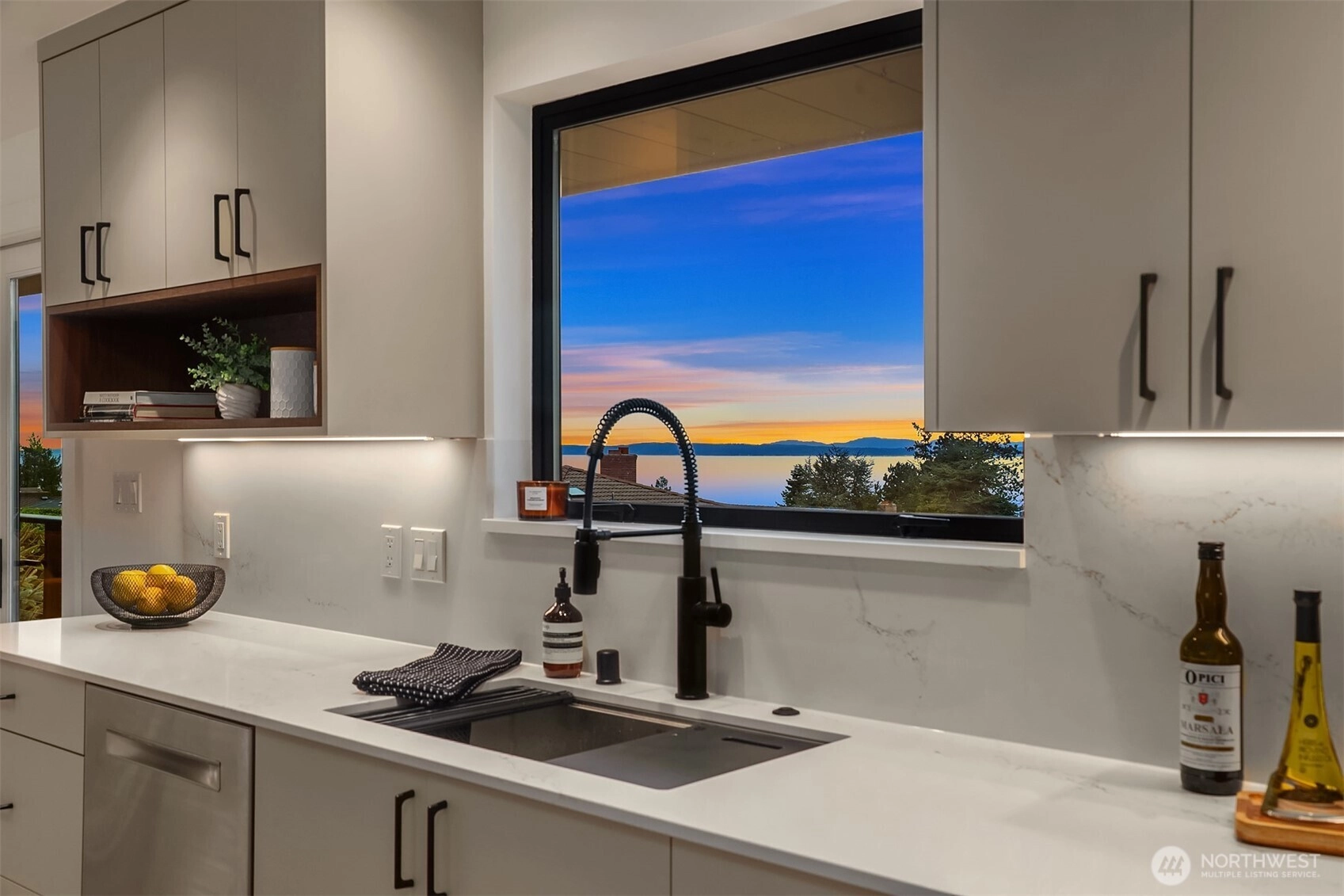 Striking mid-century on one of Richmond Beach’s most coveted streets, this 4-bed fully-remodeled view home is perched to capture sweeping Sound, Olympic & sunset views. Effortless indoor-outdoor flow w/ wraparound view deck off the great room. Chef’s kitchen w/ views & gourmet appliances: Wolf 6-burner gas range, pot filler, & hood, Subzero, sleek cabinetry & breakfast nook. Hardwoods throughout. Main floor Primary Suite w/ huge WIC & built-ins. Luxe 3/4 bath features dual sinks. Vintage Italian terrazzo. Lower-level rec-room w/ built-in bar & wine cooler, great for entertaining. & 2nd main floor bed w/ ¾ ensuite bath. 2-car heated garage w/ polished floors could double as gym + carport. EV ready. Privately framed by lush landscaping & fully fenced backyard w/ all new turf; no maintenace. Moments to Saltwater Park & Downtown Edmonds make this an ideal location.