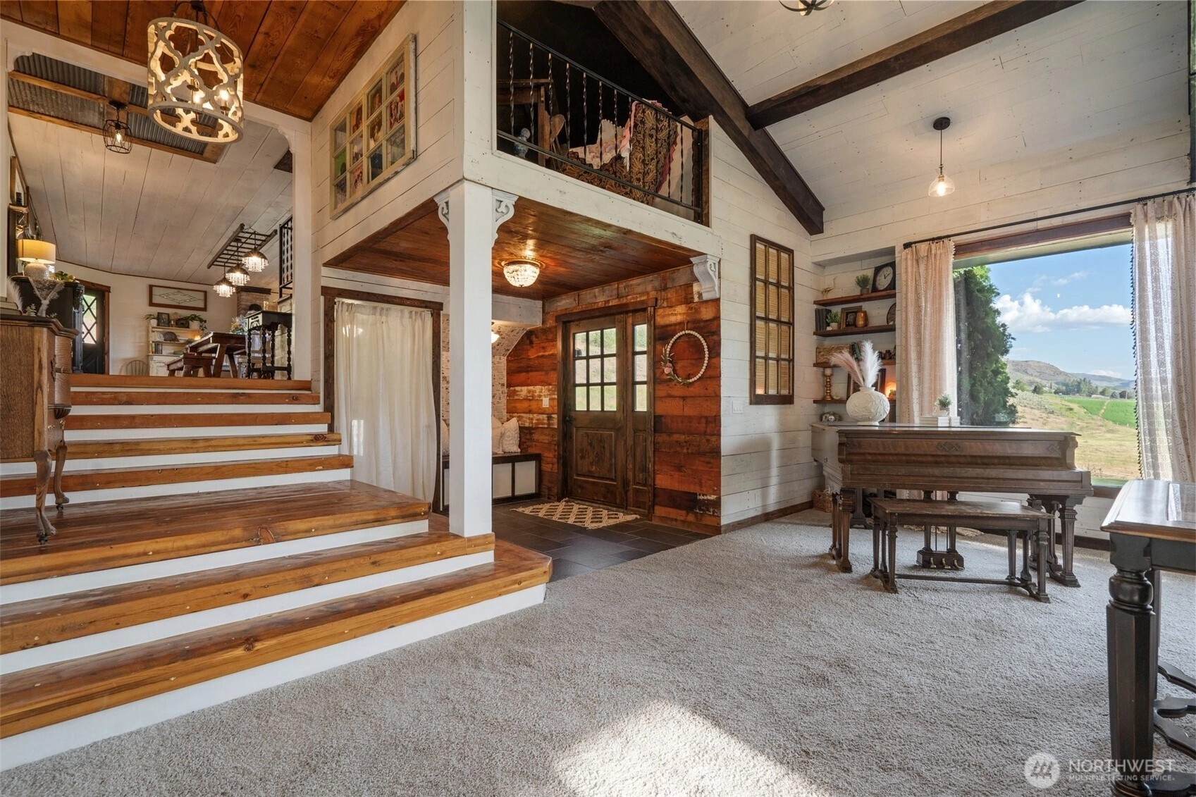 Welcome to a farmhouse that feels like it was pulled straight from a magazine! Nearly 4,700 square feet of custom craftsmanship sit on 10 peaceful acres, complete with a 4 plus acre hayfield and sweeping southern mountain and river views that stop you in your tracks. The heart of the home is a chef’s kitchen designed to gather in, featuring a reclaimed wood island, Hallman six-burner range, double ovens and a dreamy butler’s pantry. The soaring great room with fireplace was made for slow evenings and full houses. The oversized main floor primary suite is pure luxury with a copper soaking tub and custom walk in closet. Four additional bedrooms, a private loft and even a hidden 16 x 31 basketball gym that makes this home as fun as it is beautiful! There is plenty of space to build your dream shop, add a pool or expand with additional garage space. This is not just a farmhouse, it is a rare, one of a kind estate where beauty, comfort and wide open possibility all unite!