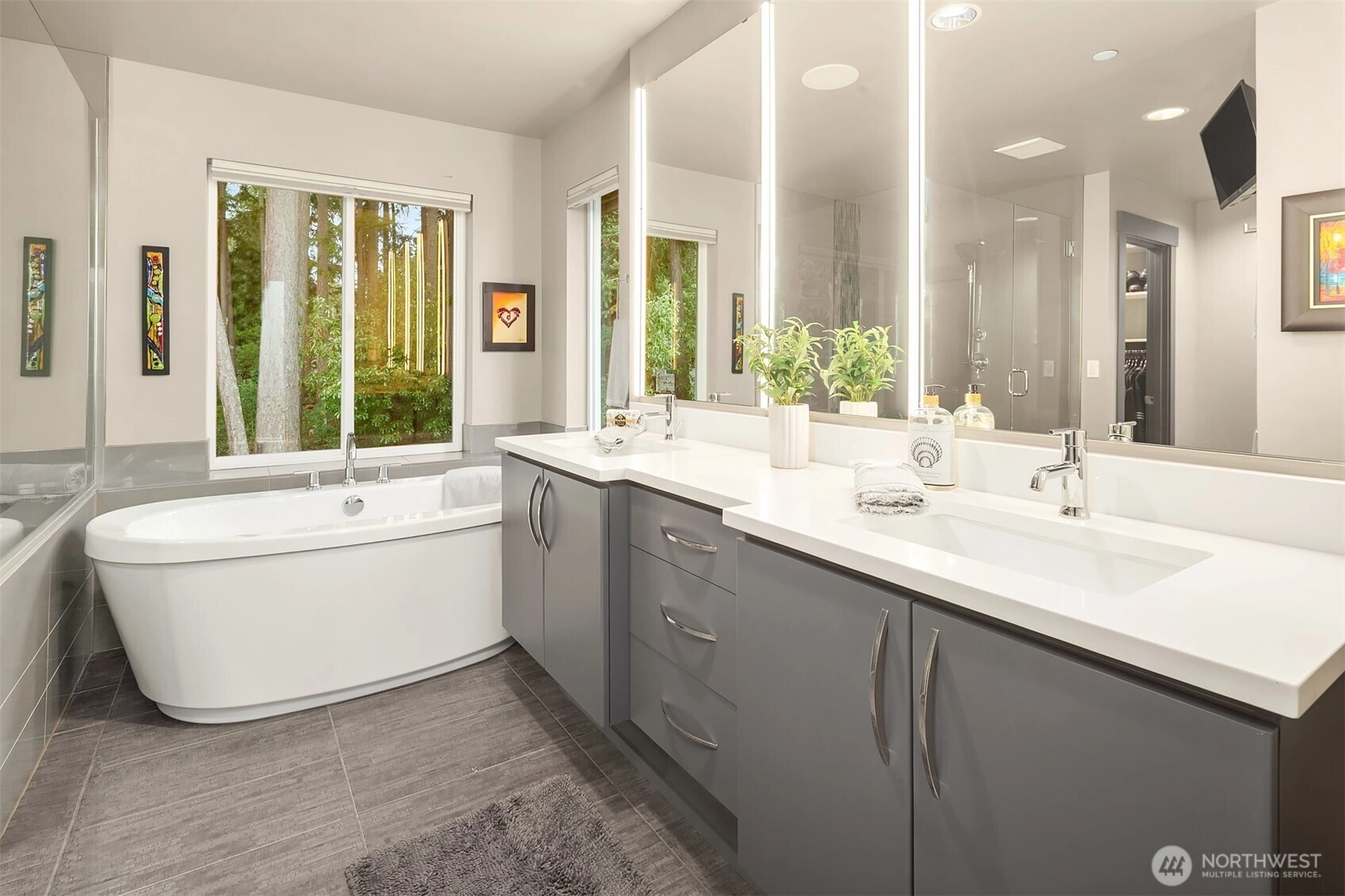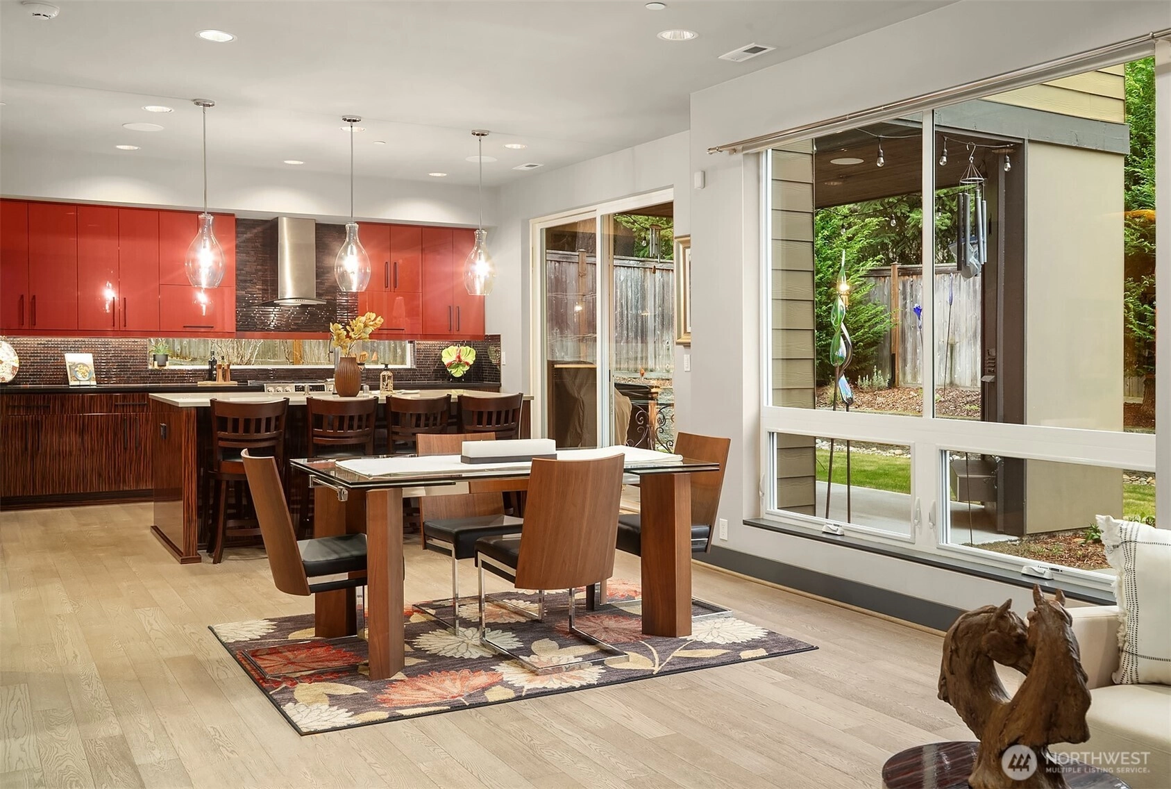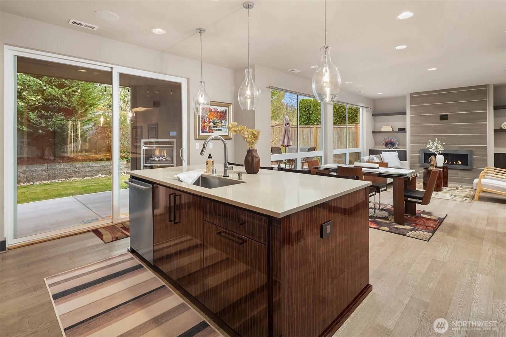 Elevated living in this Edmonds Burnstead 4-bed home w/ smart features throughout. Dramatic 2-story entry w/ custom ironwork staircase sets the tone. Great room showcases a gas fireplace framed by built-ins. Chef’s kitchen features sleek dual-toned flat-panel cabinetry, 6-burner gas range, SS appliances & custom pantry shelving. Slider opens to a private, fully-fenced backyard designed for entertaining w/ multiple gathering areas: covered patio w/ outdoor fireplace & TV plus relaxing hot tub. Quality millwork, accent lighting & built-in speakers throughout + 6-speaker surround system in bonus room for movie nights. Spacious Primary Suite features custom dual closets & dressing area w/ built-ins. 5-pc luxe bath w/ heated floors & soaking tub. Wine cellar. A/C for year-round comfort. 50+ ft veggie garden w/ irrigation. Corner lot adjacent to greenbelt. 3-car tandem garage and generator. Next to Hickman Park in the coveted Woodvale community.