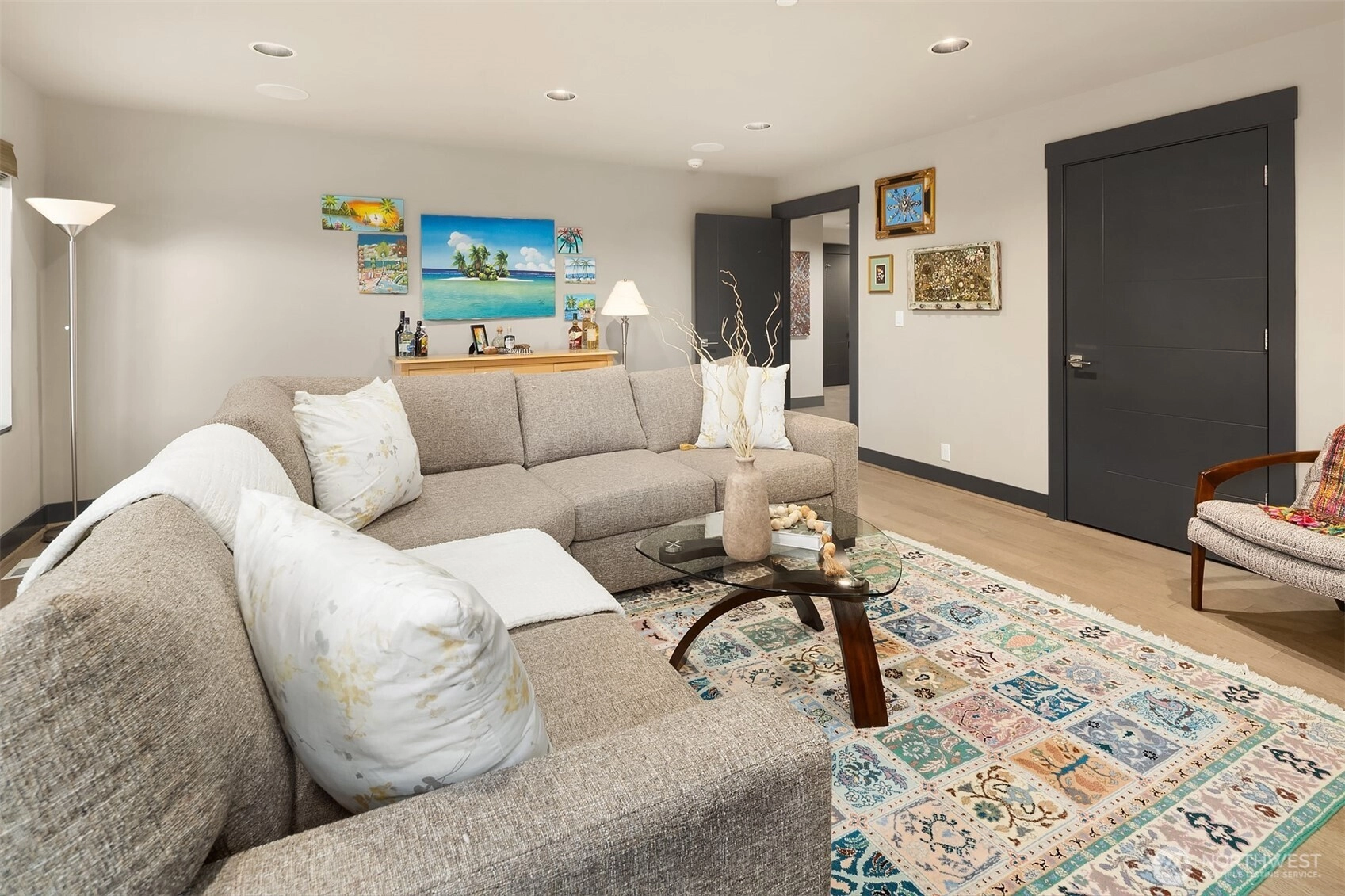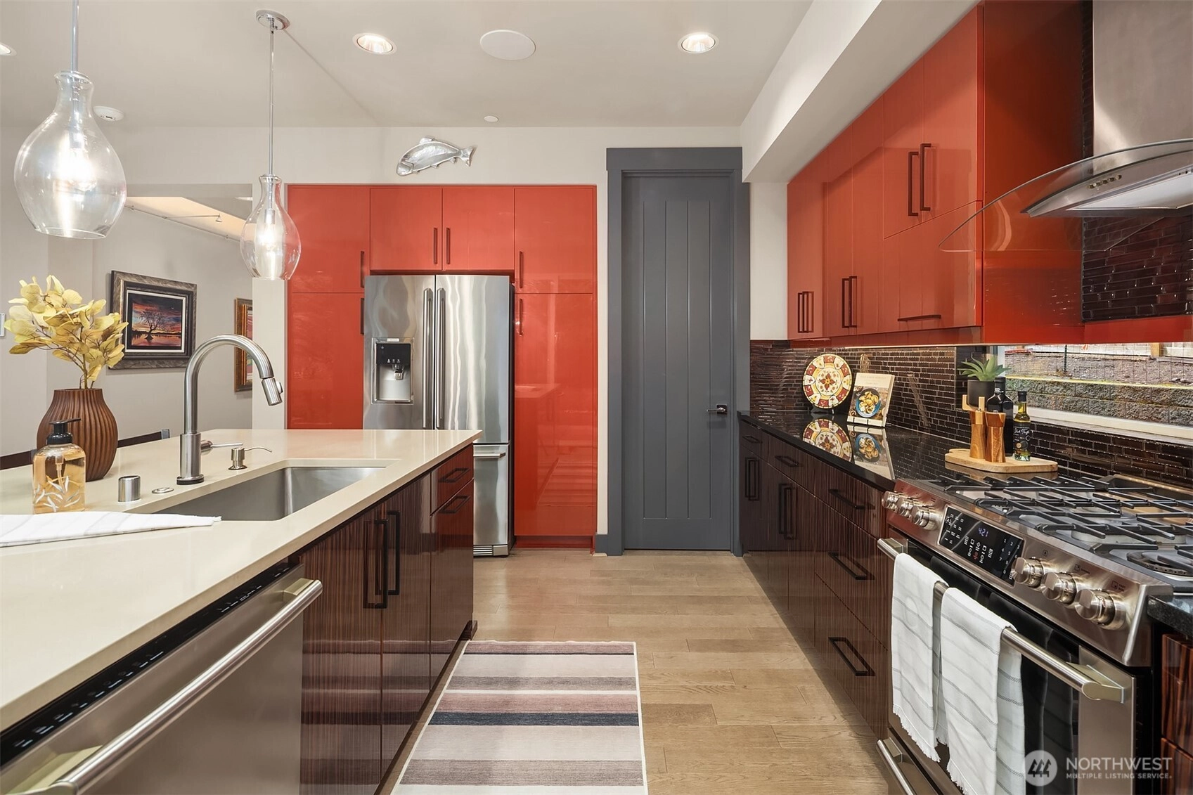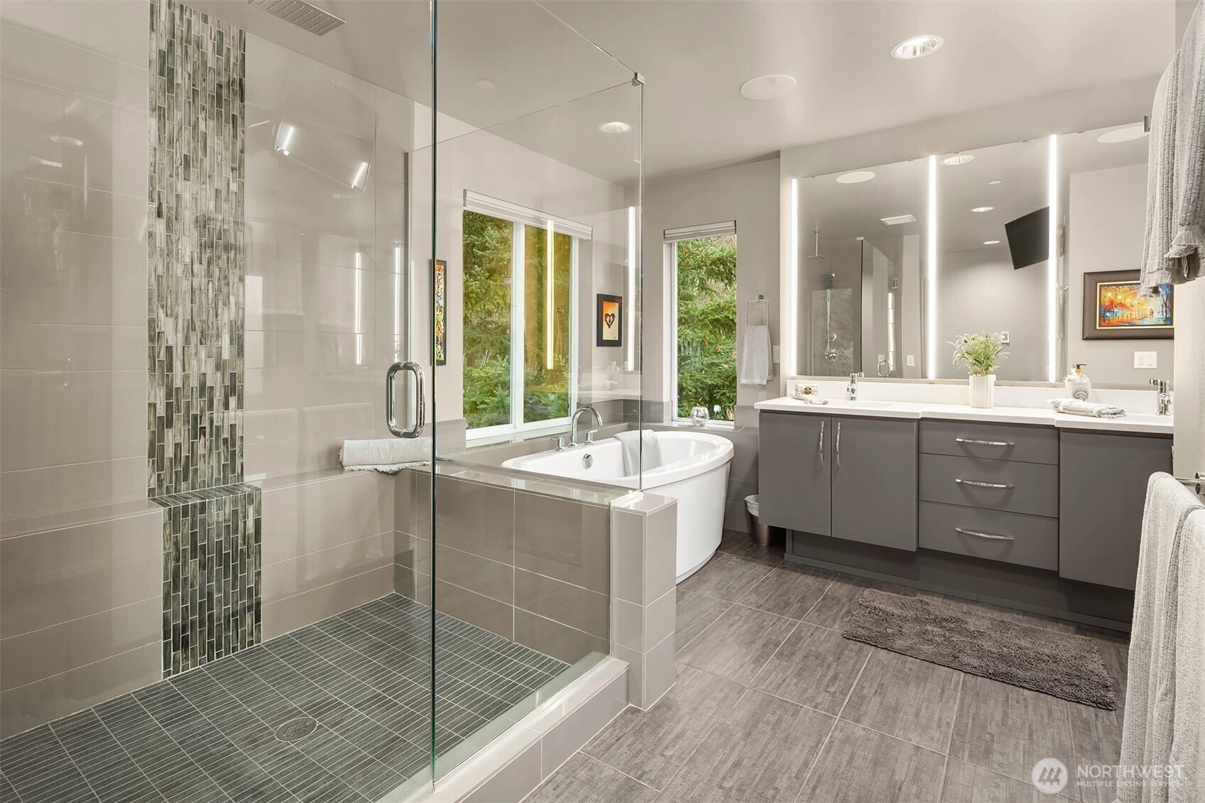 Elevated living in this Edmonds Burnstead 4-bed home w/ smart features throughout. Dramatic 2-story entry w/ custom ironwork staircase sets the tone. Great room showcases a gas fireplace framed by built-ins. Chef’s kitchen features sleek dual-toned flat-panel cabinetry, 6-burner gas range, SS appliances & custom pantry shelving. Slider opens to a private, fully-fenced backyard designed for entertaining w/ multiple gathering areas: covered patio w/ outdoor fireplace & TV plus relaxing hot tub. Quality millwork, accent lighting & built-in speakers throughout + 6-speaker surround system in bonus room for movie nights. Spacious Primary Suite features custom dual closets & dressing area w/ built-ins. 5-pc luxe bath w/ heated floors & soaking tub. Wine cellar. A/C for year-round comfort. 50+ ft veggie garden w/ irrigation. Corner lot adjacent to greenbelt. 3-car tandem garage and generator. Next to Hickman Park in the coveted Woodvale community.