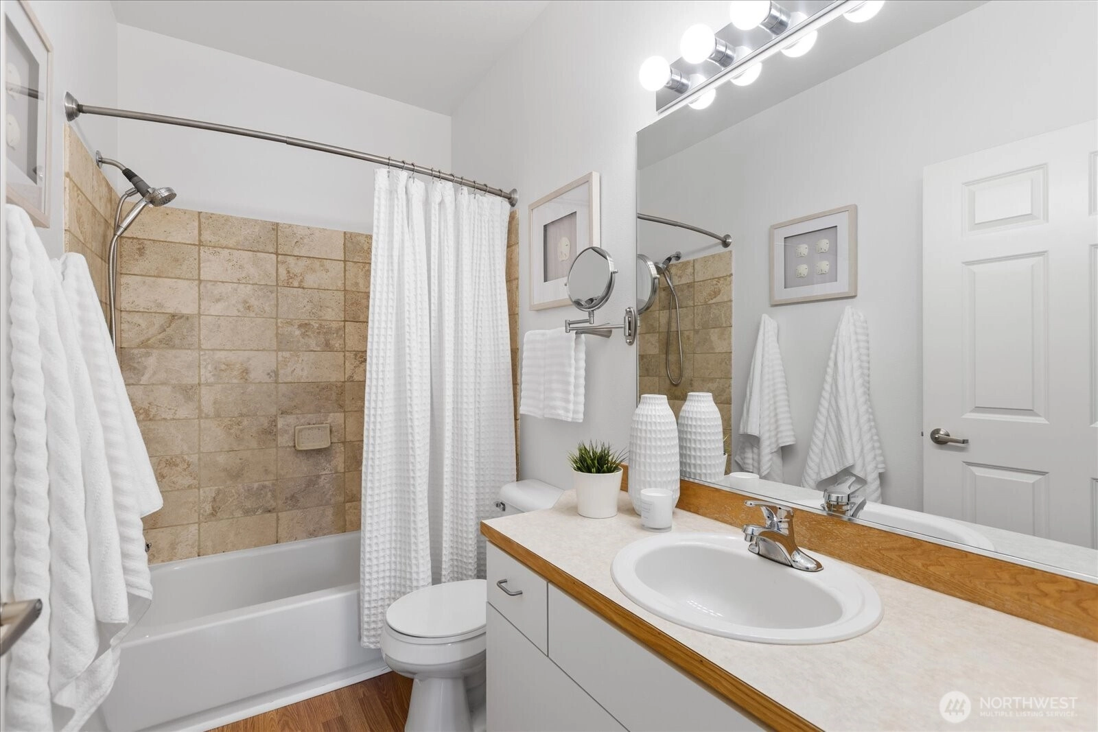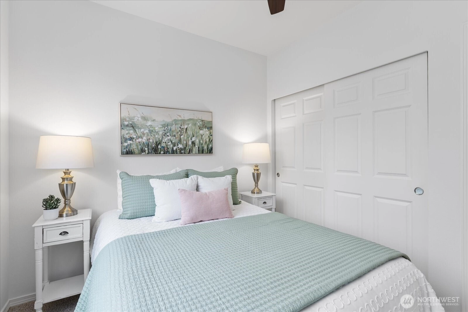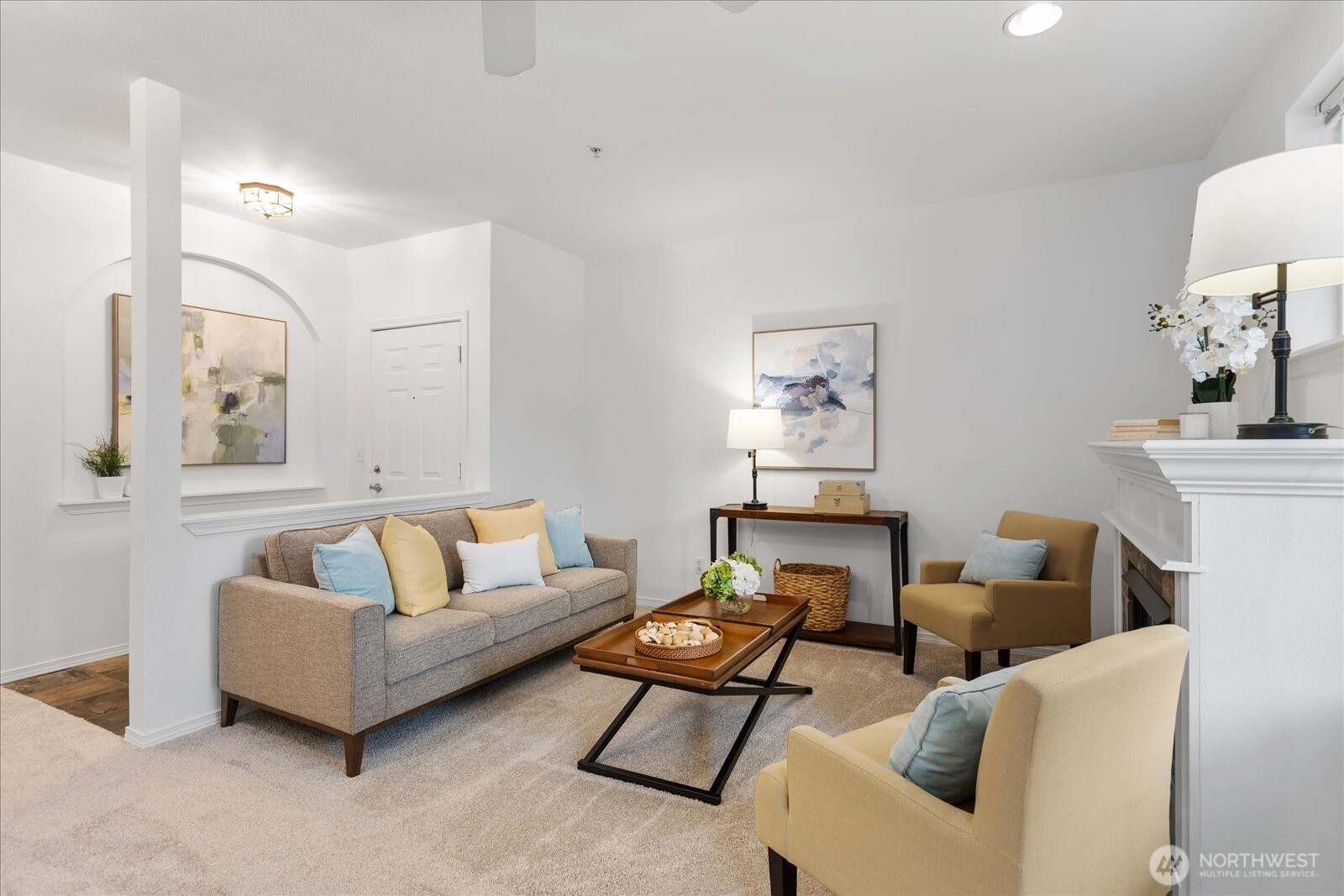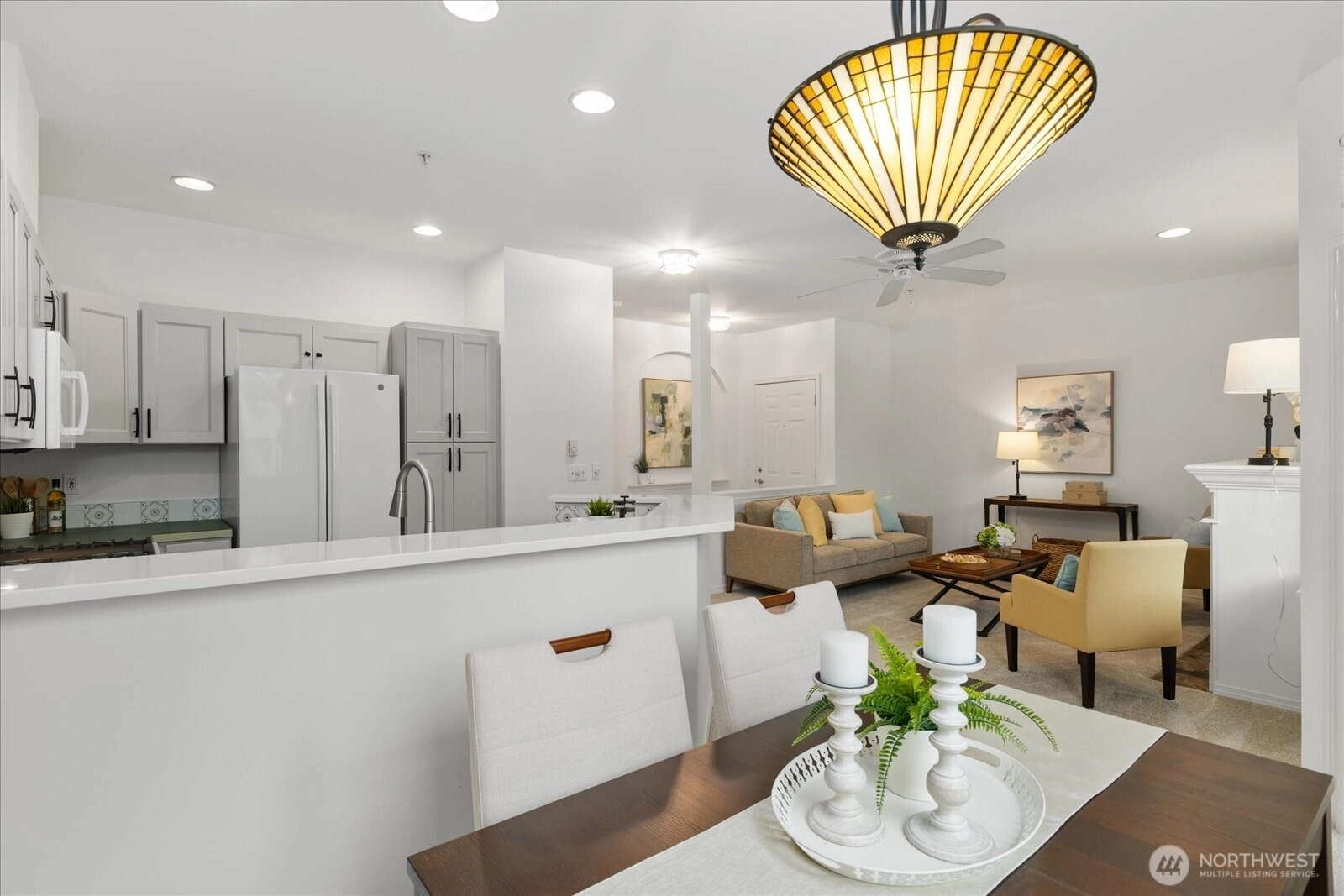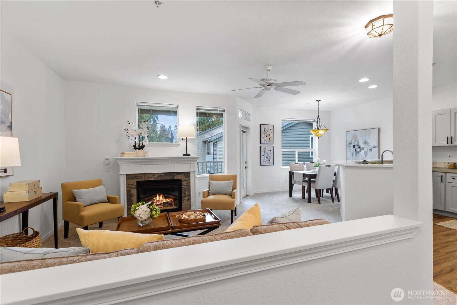 Pristine 2 bedroom, 2 bath condo home in the quiet gated community of Heritage at Deer Creek. The top floor vantage with outlook to wetland reserve enjoys a level of privacy & tranquility rarely found in condo living, while 9 ft. ceilings and oversized windows fill the home with natural light. Inviting, open layout offers the space and versatility to host game nights or dinner parties, and also feels just right for quiet, cozy nights by the fire. Whether you prefer microwave dinners or home baking, the kitchen with generous prep space and pullout storage will meet your needs. The covered deck, a lovely spot to enjoy the afternoon sun while birdwatching, extends your living space in rain or shine. Primary suite with full bathroom and walk-in-closet is a welcome retreat, and 2nd bedroom adjacent to bathroom with step in shower compliments the floorplan. New carpet & paint throughout provides a fresh, turnkey start. Dedicated, covered carport is conveniently located near the stairwell. Abundant visitor parking adds to the ease of entertaining, whether hosting at home or spreading out in the HOA cabana with large outdoor patio. Ideal location for commute with proximity to Hwy 99, I5, Boeing, Park & Ride, and upside potential with future light rail stations anticipated nearby. Pet friendly complex. Mukilteo schools!