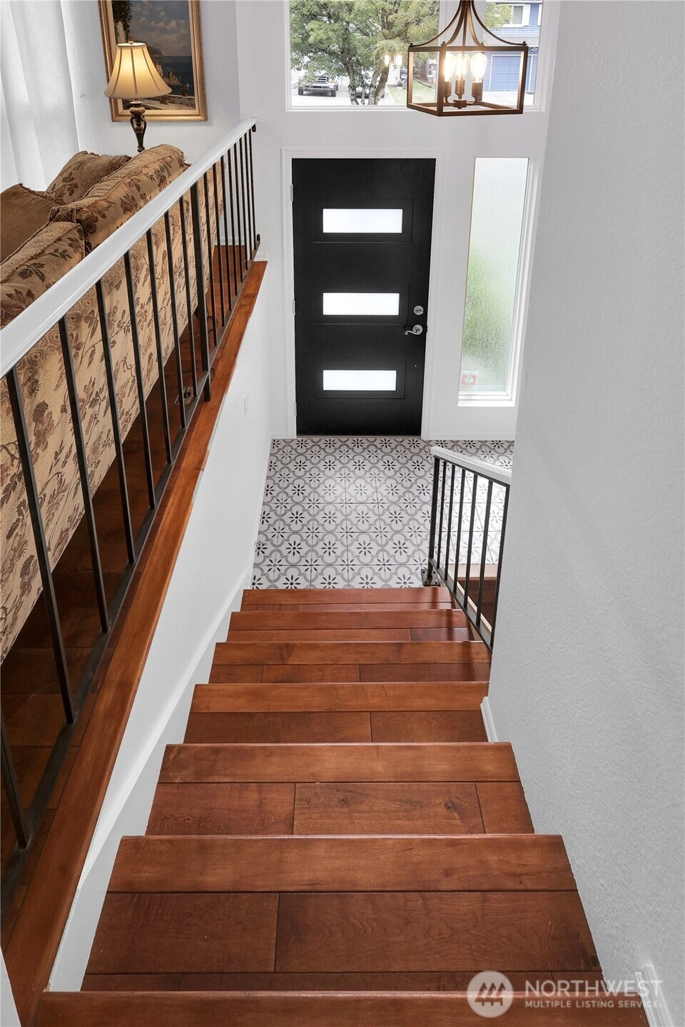Move right in to this stylish NW Contemporary split w/Dutch gable roof, near shopping & restaurants! 2 suites, one on each floor! Sophisticated upgrades, new oversized Trex entertainment deck. Tile entry, cathedral ceiling in open living room, skylights, & formal dining room, heat pump-A/C. Lodge like engineered hardwood floors. Interior painted 2025, newer front door, upgraded lighting, closet organizers. Beautiful eat-in kitchen has all the bells and whistles, dark cherry tone soft close cabinets, slab granite counters, glass tile splash, gas range, stainless appliances. Dining room & deck overlook park-like fenced yard! Primary suite w/dual closets. A masonry fireplace on each floor. 3 showers! Big garage for workshop. Newer furnace & water heater. Large, corner lot.