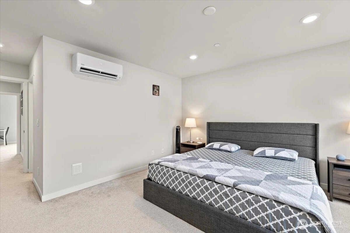 $15,000 buyer incentives towards closing costs, MOTIVATED SELLER, Move-in ready, this beautifully maintained 2024-built 3 bed / 3 bath, 1,696 sq ft townhome in Preston North Townhomes offers modern comfort and style in a charming community with a park and ample guest parking. This light-filled home offers excellent privacy and is thoughtfully designed for both everyday living and effortless entertaining. Expansive windows and a covered deck invite abundant natural light, perfectly complementing the warm wood flooring and creating an inviting space ideal for relaxing or hosting guests. The sleek kitchen features quartz countertops, a stylish backsplash, and GE Cafe SS appliances perfect for cooking and gathering. Upstairs, the spacious owner’s suite includes a walk-in closet and spa-inspired bath with dual vanities, while a generously sized secondary bedroom features its own ensuite bath. A conveniently located laundry area completes the upper level. The lower level offers a versatile third bedroom providing flexible living space, ideal for a guest suite, media room, home gym, or work-from-home-ready office. Additional highlights include high-efficiency mini-split A/C, custom closets, an electric vehicle charger, designer window treatments, and a spacious side-by-side two-car garage. Located in the highly acclaimed Northshore School District and a prime North Creek location near dining, parks, YMCA, and easy access to I-405. Better than new, light-filled, and move-in ready,