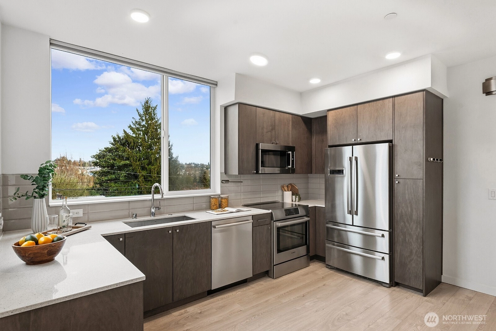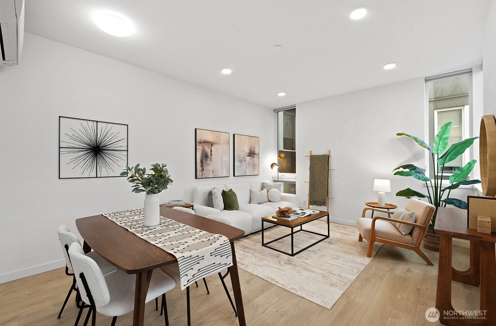 Live luxuriously in this modern, like-new urban retreat designed to maximize light, views, and functional living. Enjoy seamless entertaining in the open-concept kitchen/living/dining room boasting sleek lines, high-end finishes and Bosch stainless appliances (including an induction stovetop!). Sleep well in your king-sized primary suite with walk-in closet, dual sink en-suite, mini-split heat/ac, and a washer/dryer outside your door. The second spacious bedroom has a large closet, room for a desk, and full bathroom right outside. Relax in the top-level bonus room with vaulted ceilings, walls of windows, and a large deck for taking in city and mountain views. Use it as an office, a lounge area or third bedroom! Convenient minibar and beverage fridge! One designated EV ready parking space! Easy commute downtown with the C-line, water taxi shuttle and quick highway access nearby. Ideally located in the heart of West Seattle just steps away from local restaurants, boutiques, and cafes and minutes from Alki Beach, Lincoln Park, and more!