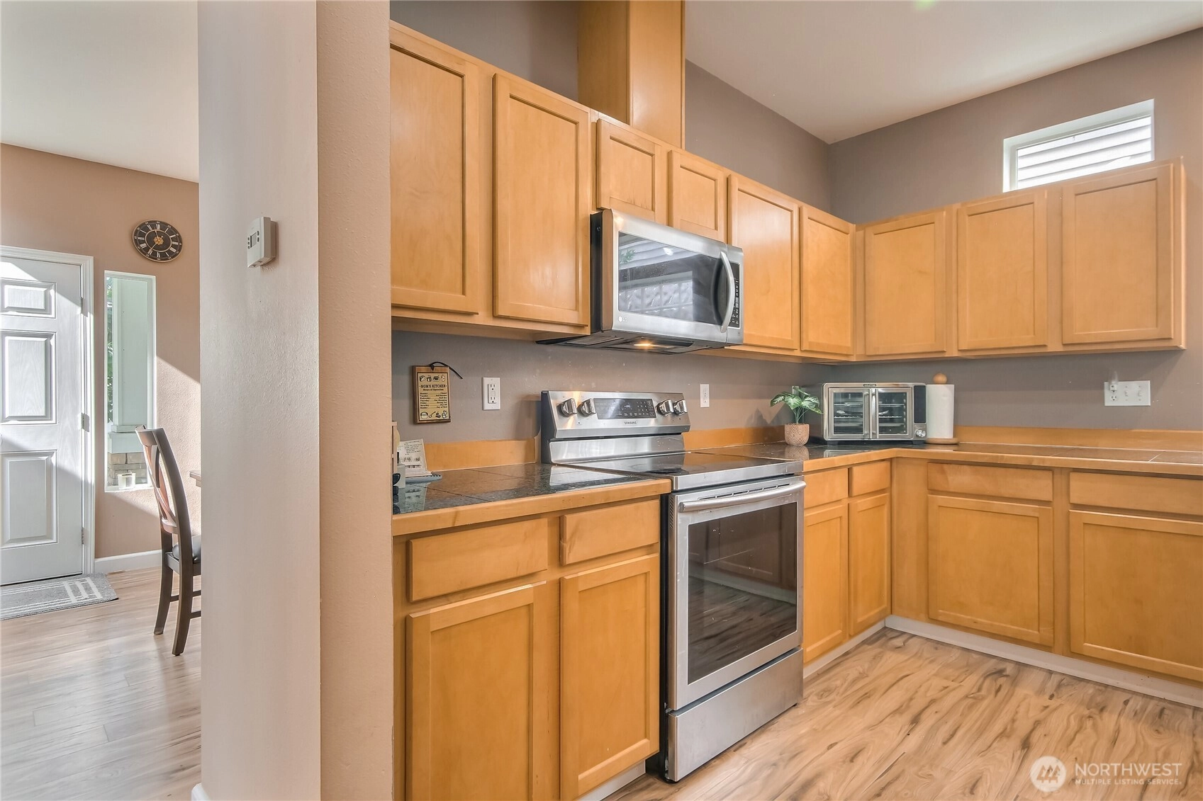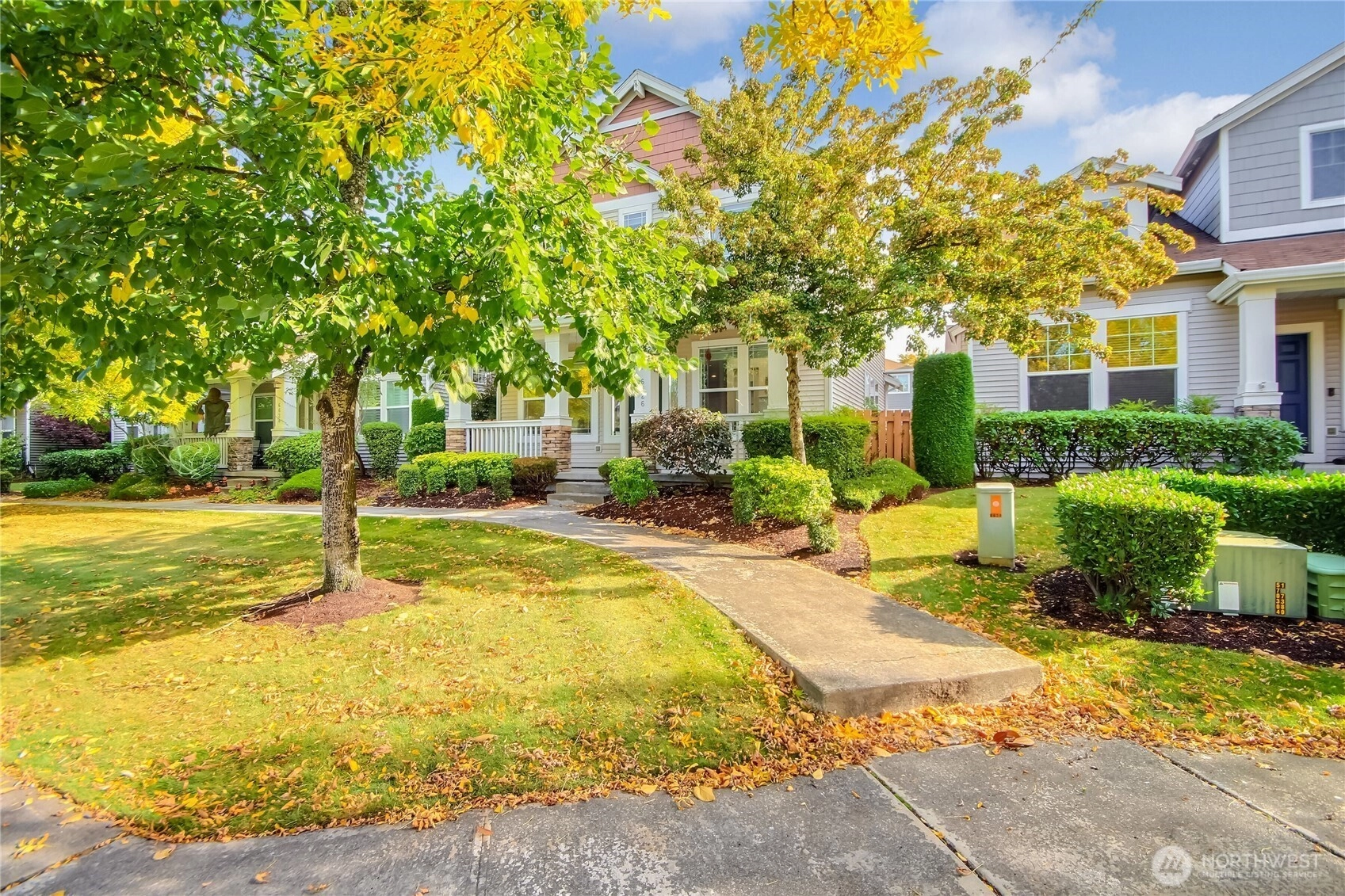 Located in the gated community of Verona at Lakeland. A bright & natural light filled cozy home has 4 beds & 2.5 baths that give you the space you've dreamed of. This beautiful home greets you w/ a covered front porch, hdwd entry, formal living, dining room & voluminous ceilings.The kitchen adjoins the family rm & has a wall of beautiful maple cabinetry & pantry. Relax in the cozy family rm, Formal living rm which features a two-sided gas fireplace. Formal dining rm. The huge primary suite w/a 5 pc bath. 3 more bedrms on the upper level. Alley to 2 car garage, Cute backyard w/ garden space. Walkable distance to shopping, Lakeland Hills Elementary & community parks. Close to SR-167 & SR-18 to I-5. Must see!