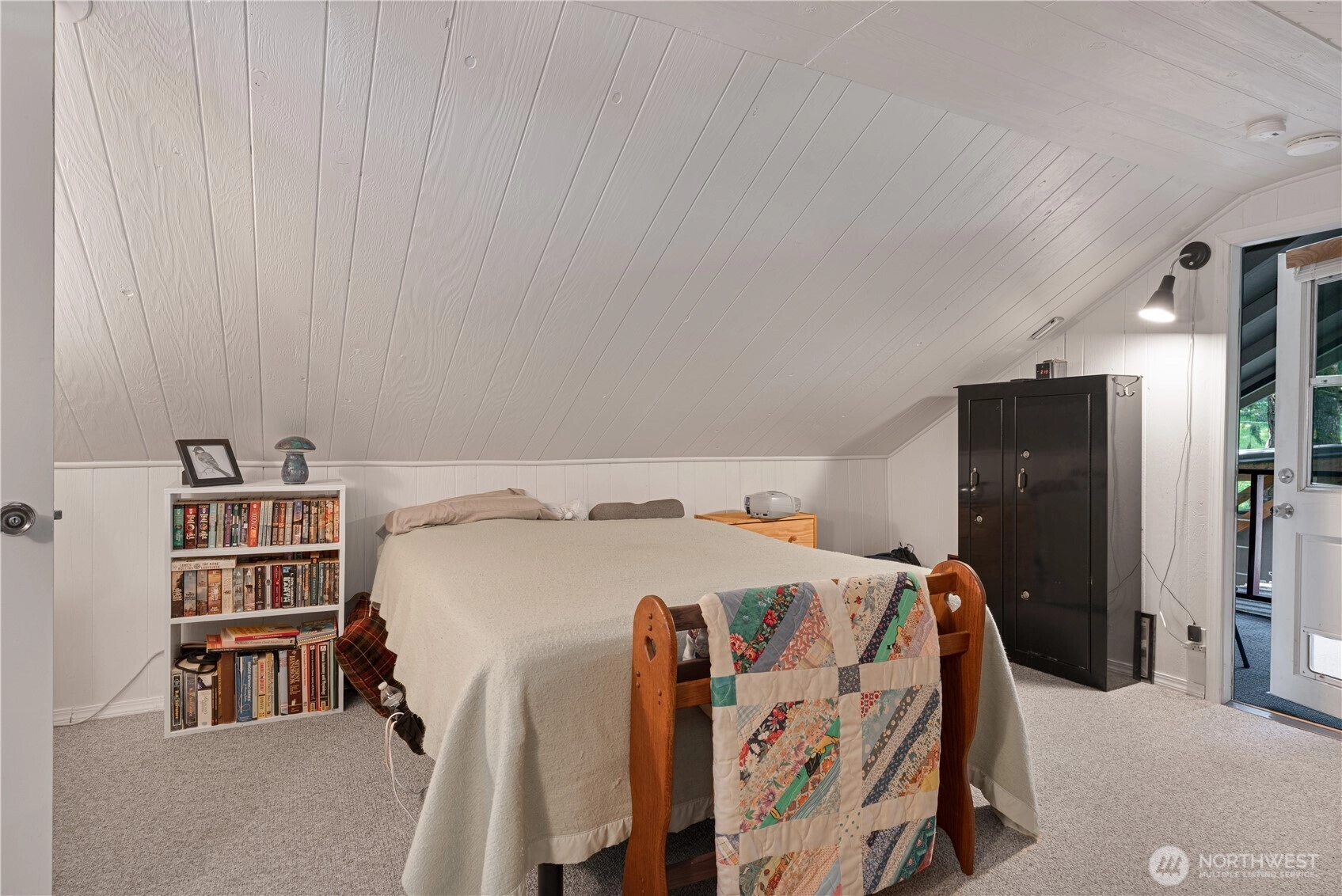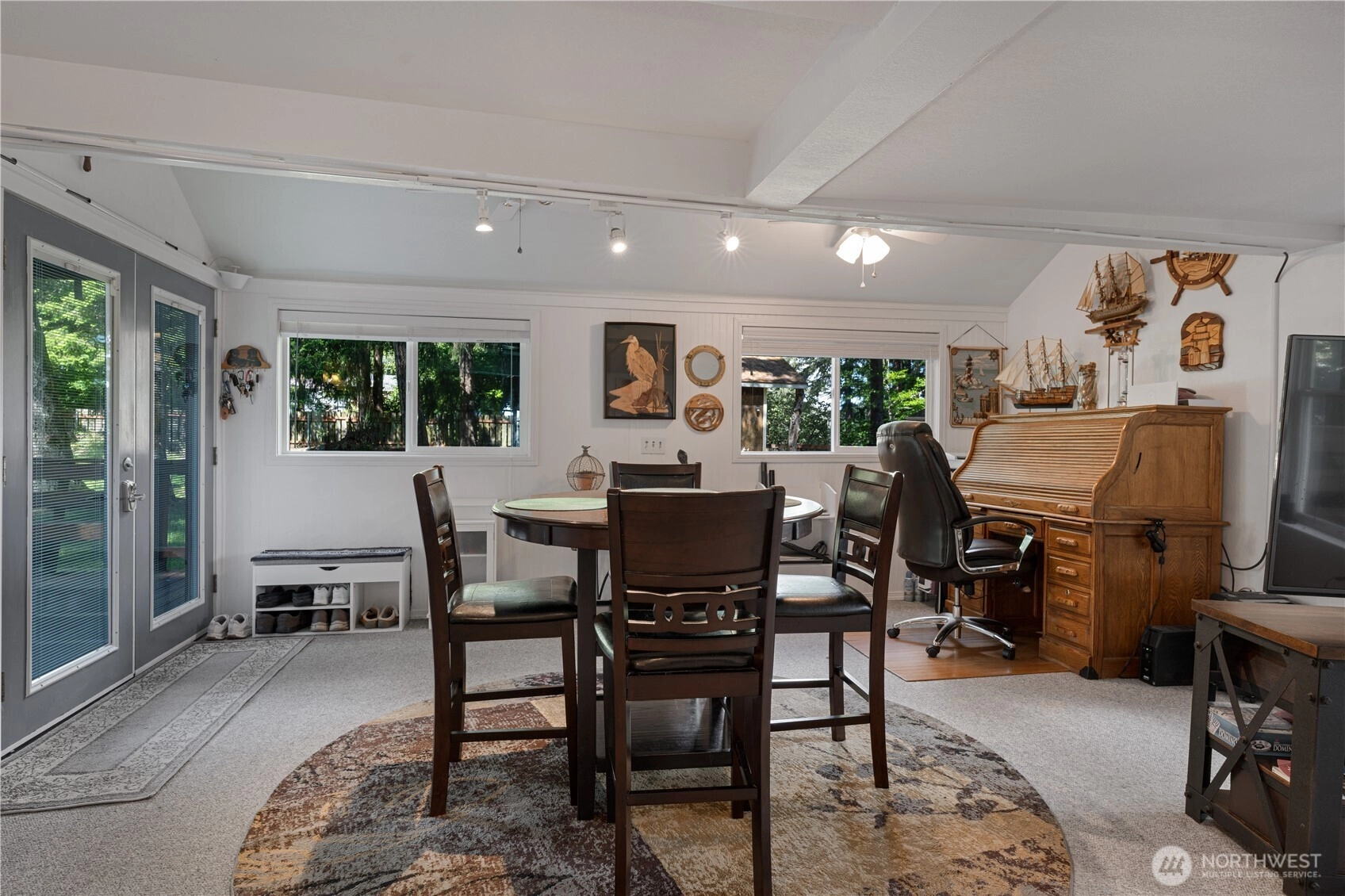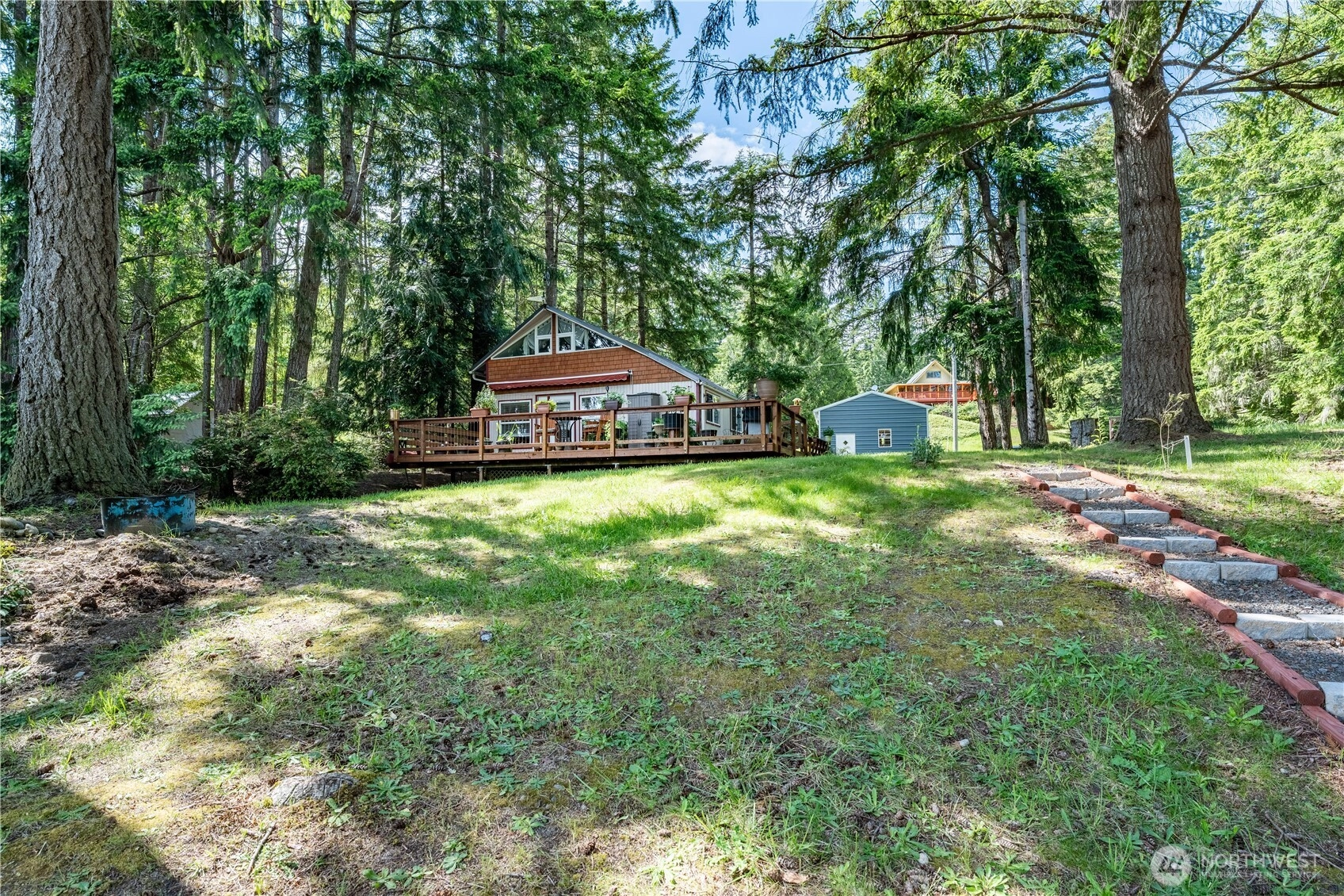 Perched above 60 feet of east-facing waterfront, including tidelands, this inviting island cabin offers the kind of peaceful escape that feels worlds away from the city — yet close enough for an easy weekend retreat. From its medium-bank setting, enjoy sweeping water views and breathtaking sunrises that greet you each morning in soft coastal light. Inside, the open living, dining, and kitchen area creates a relaxed gathering space — ideal for slow mornings, shared meals, and reconnecting without distractions. A ¾ bath and laundry are conveniently located on the main floor. Upstairs, two cozy bedrooms provide restful retreats, with the larger bedroom opening onto a covered deck — a quiet perch for morning coffee and the gentle rhythm of island life. The expansive wooden deck invites long, unhurried afternoons and easy evenings outdoors. The level 0.41-acre lot offers space to garden, play, or simply breathe a little deeper and enjoy the privacy. Whether you're looking for a weekend getaway from the city or a simpler full-time lifestyle, this cabin delivers water views, coastal charm, and that unmistakable sense of calm that only island living provides. A covered trailer is included at no cost to the buyer for overflow guests (or can be removed if preferred) and the 20’ x 18’ powered metal shop adds flexibility for storage, hobbies, or all your island gear.Wake with the sun, slow your pace, stay awhile! Community features: boat ramp, seasonal boat docks plus so much more!