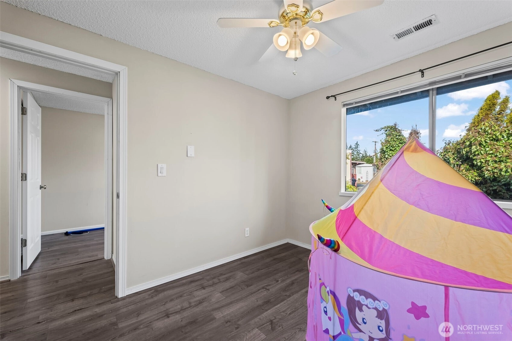 VA Assumable Gated lakefront Coffee Creek Townhouse Condos! This spacious 4-bedroom, 2.25-bath home offers 1,701 sq ft living space on a 5,000+ sq ft lot. The home includes a 1-car garage, covered carport. The street-level entry provides access to the front door, garage, carport, laundry area, and ample storage. Upstairs on the main level, you'll find a bright living and dining area, updated kitchen, two decks (front and back), and a half bath. The versatile backroom, equipped with A/C split, can serve as a bedroom, bonus room, or family room. The upper level features a spacious primary en-suite with a walk-in closet and private bathroom, two additional bedrooms, and a full bath. Bathrooms have been recently updated for a modern touch.